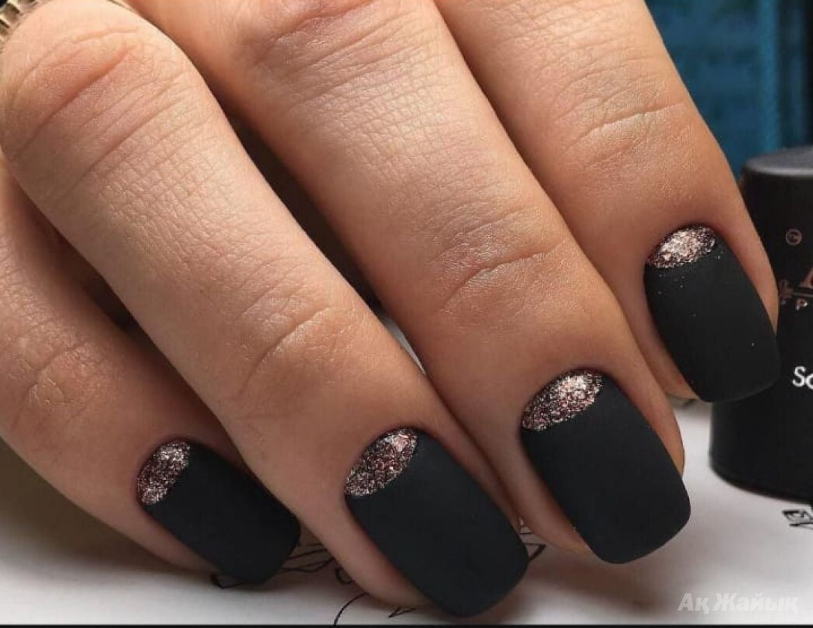 Маникюр черный с блестками