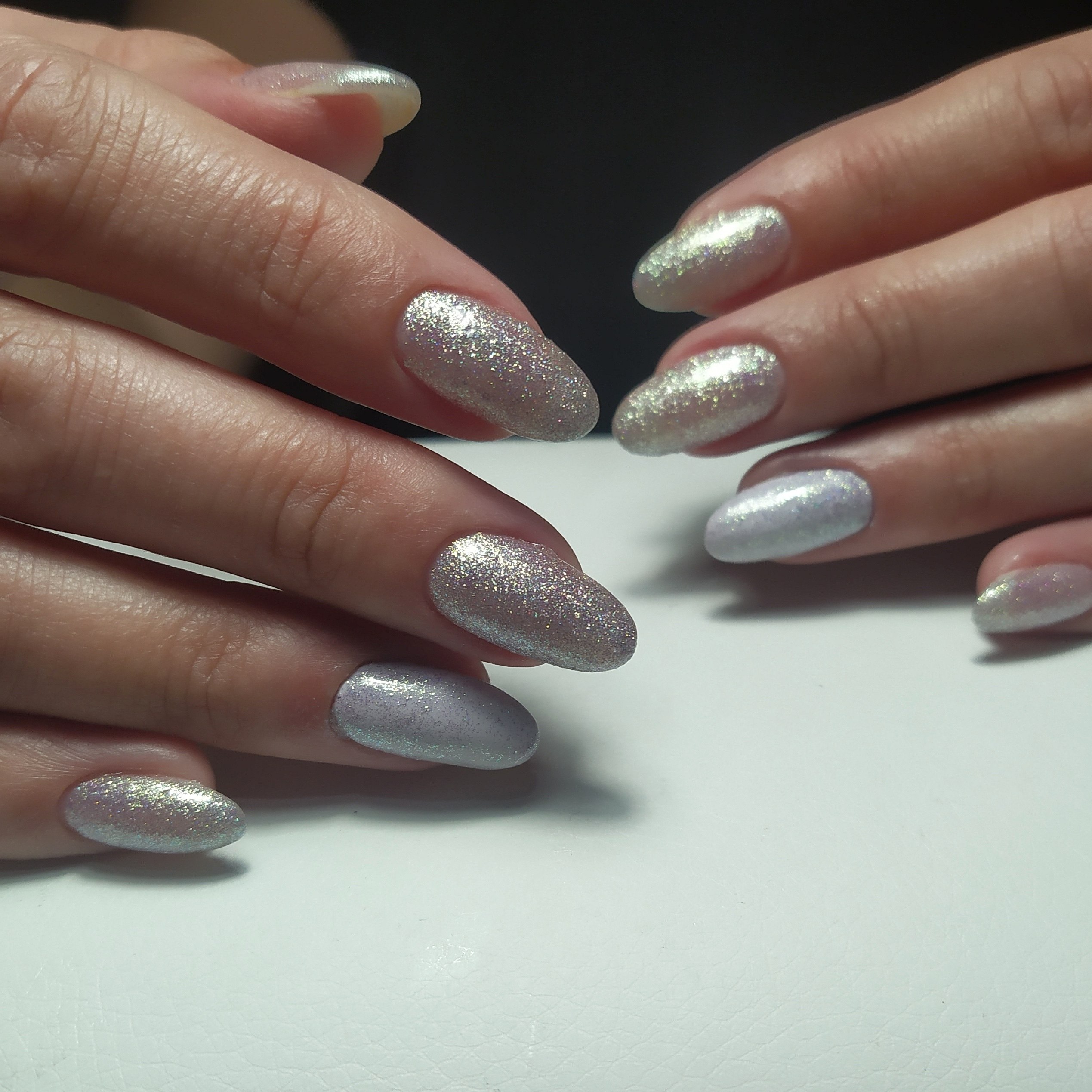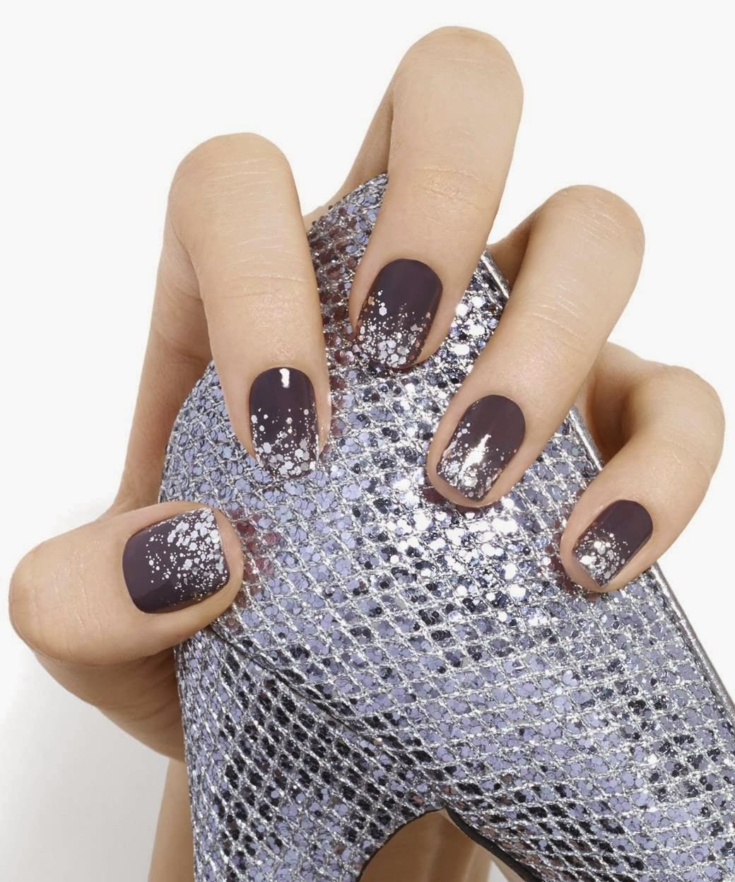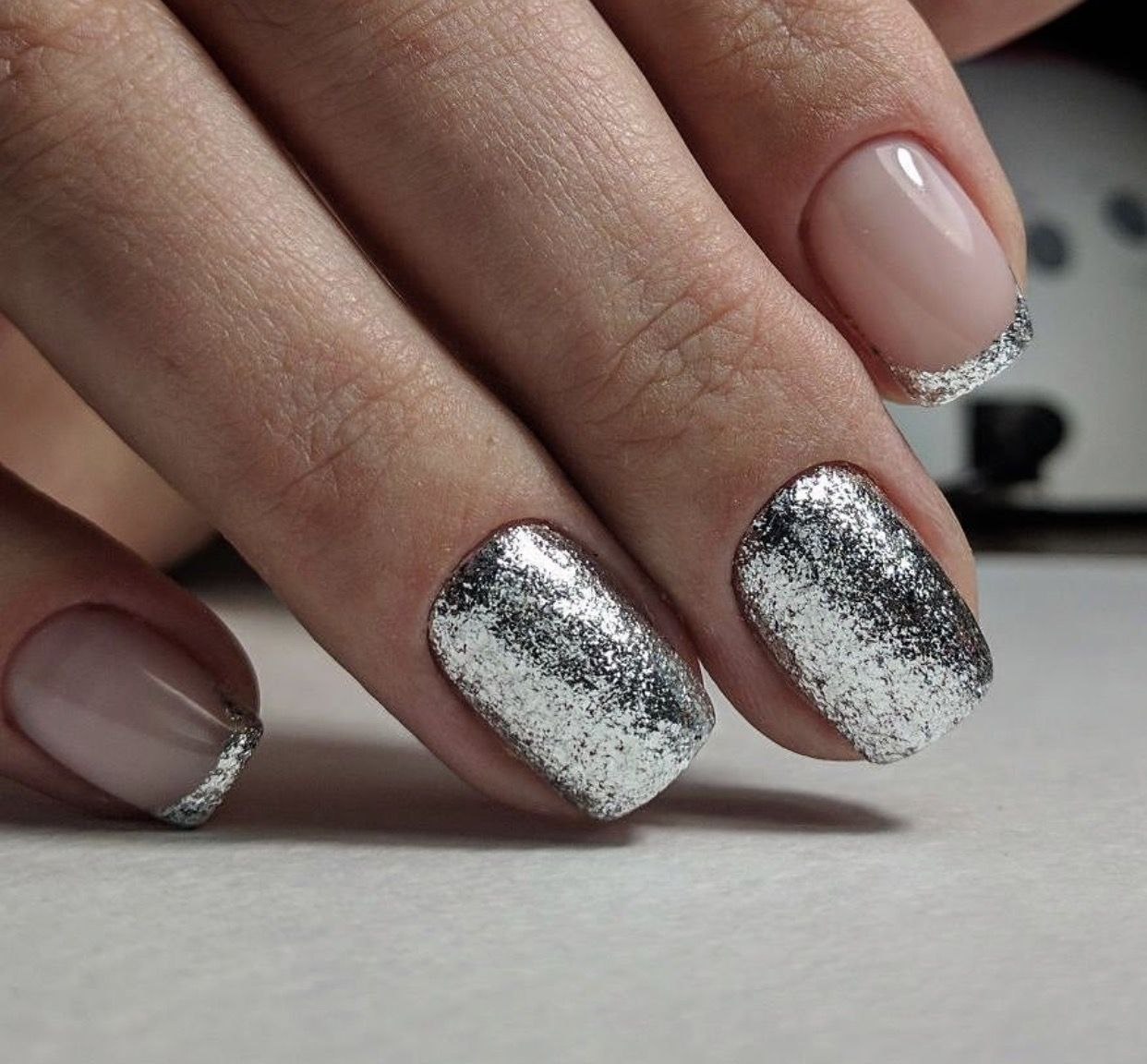 Ногти с серебристыми блестками