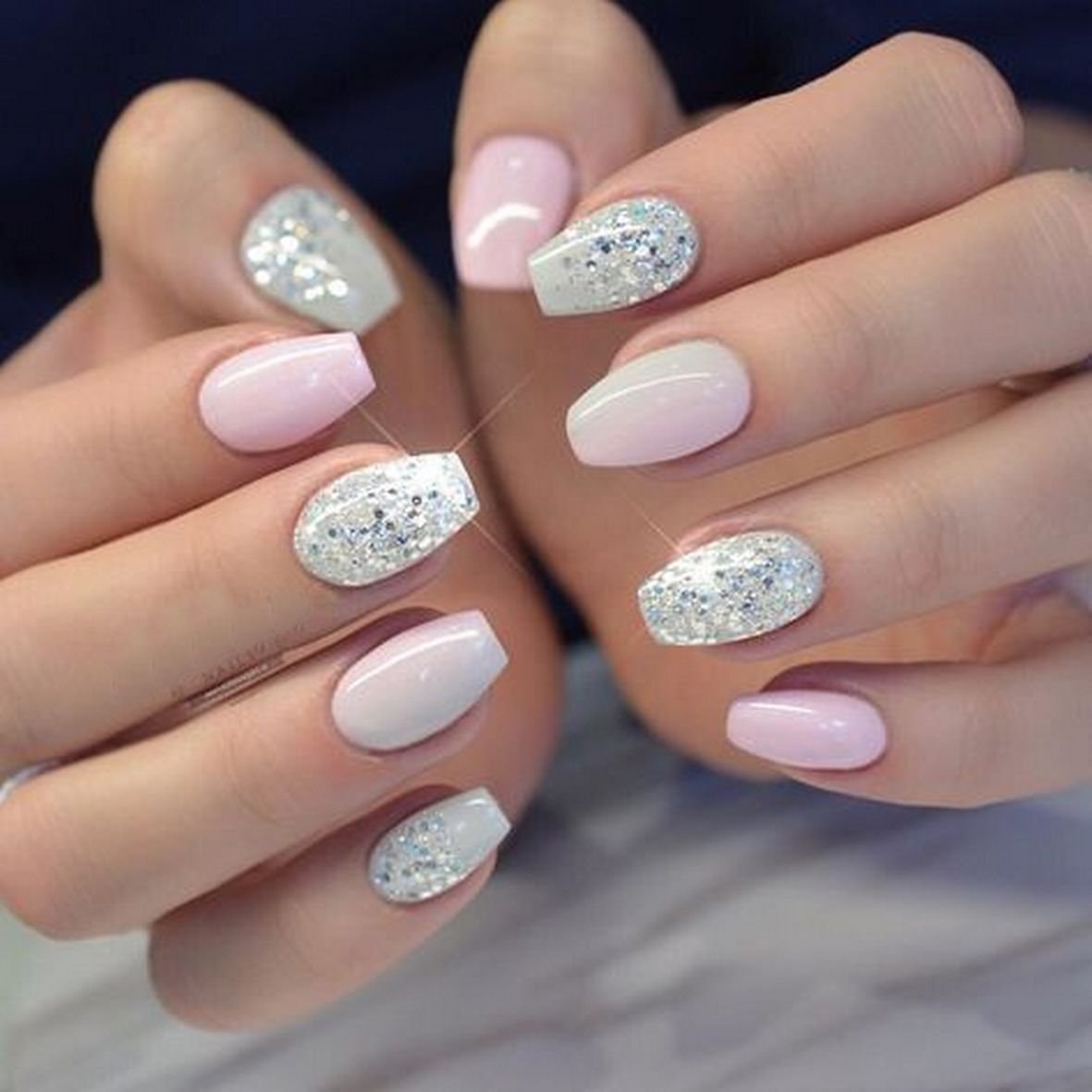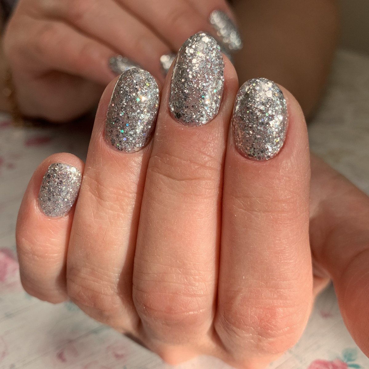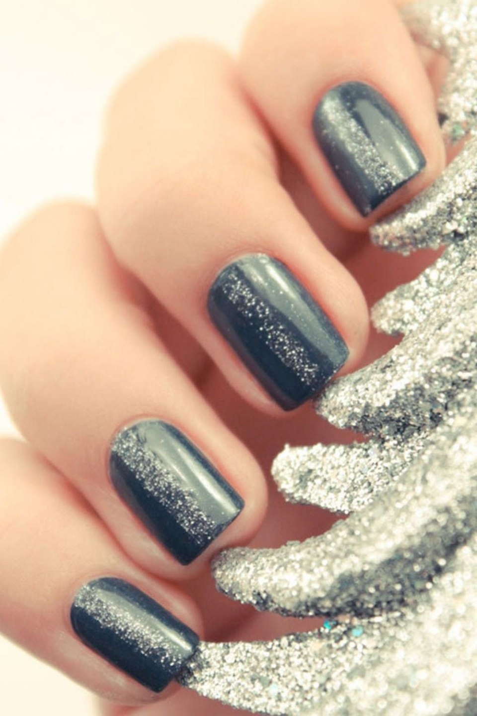 Ногти с серебристыми блестками
