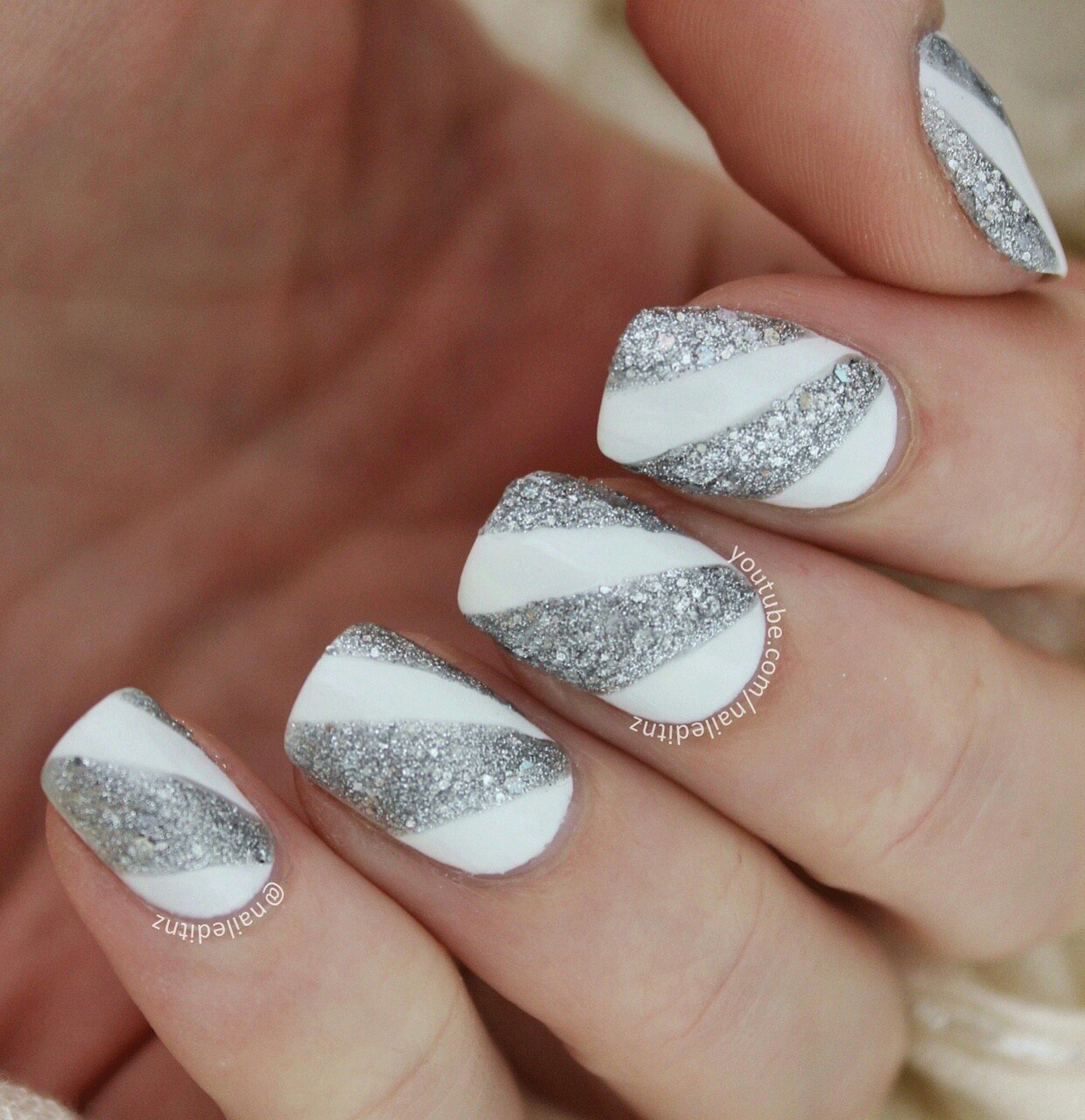 Бело серебряный маникюр