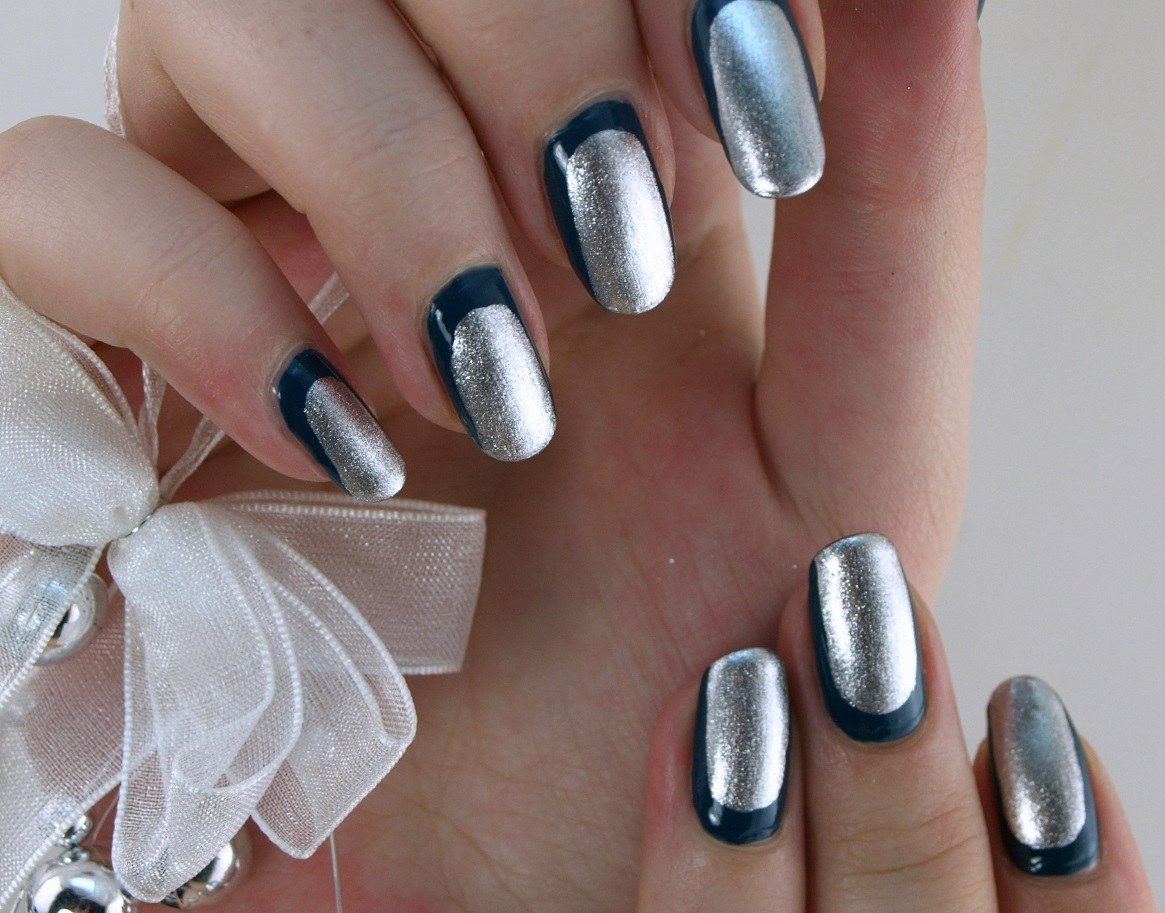 Серебристый маникюр на новый год