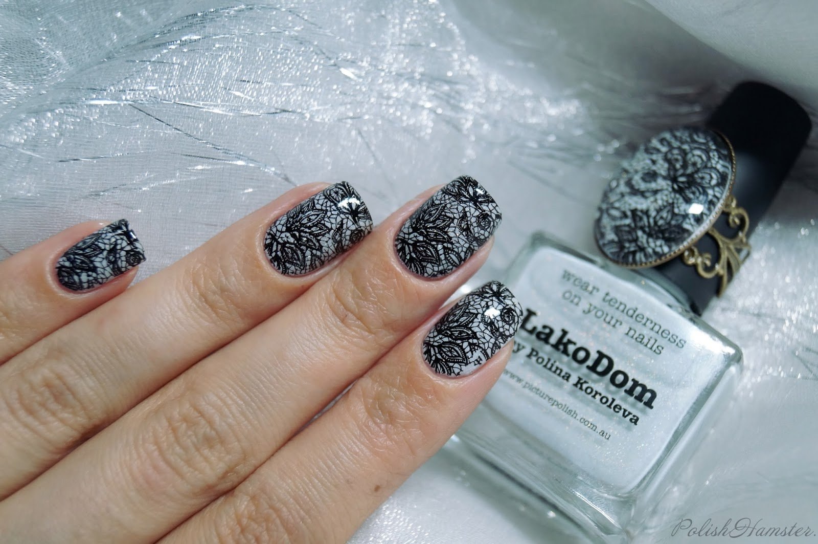Серый маникюр со стемпингом