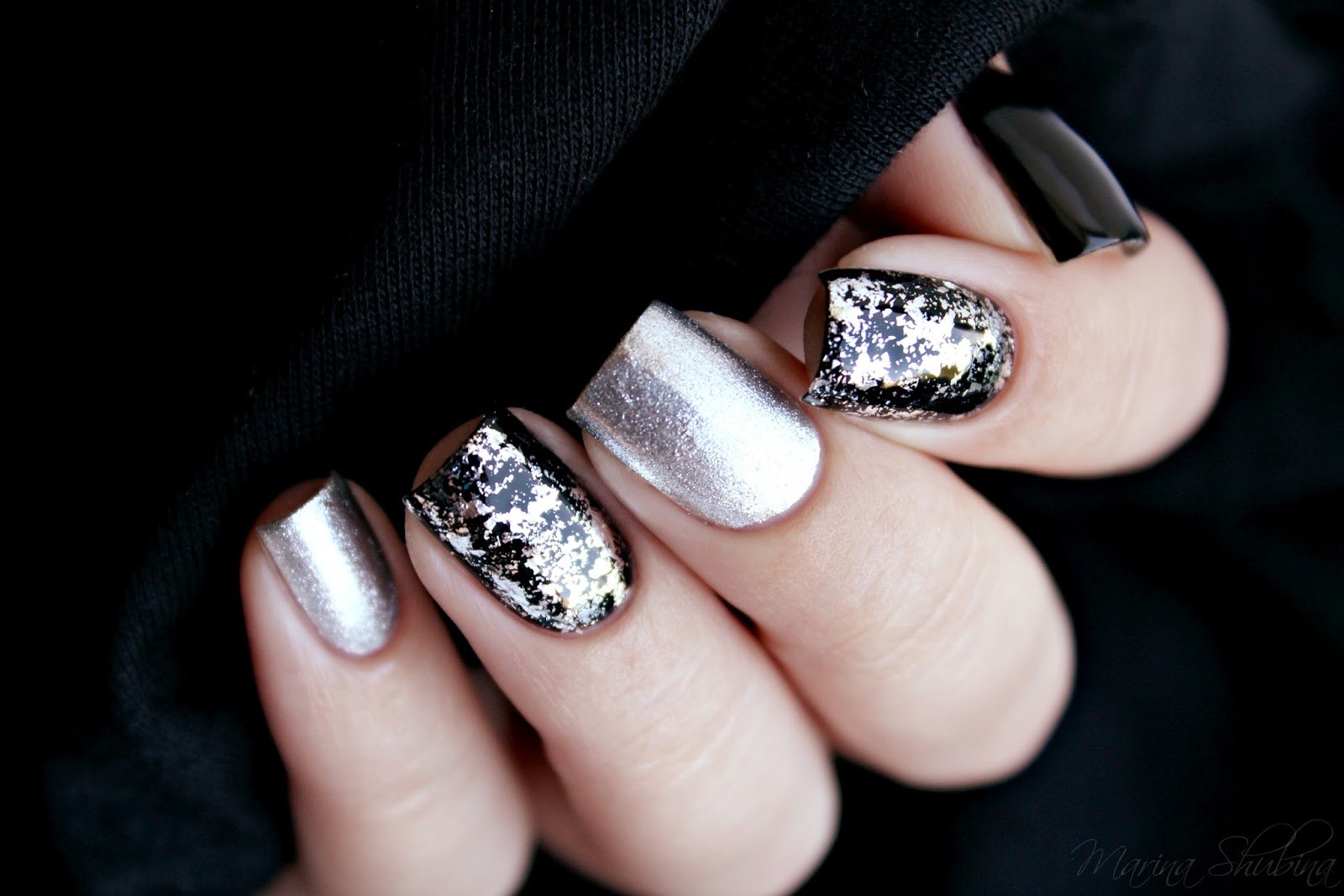 Маникюр серебристый с черным