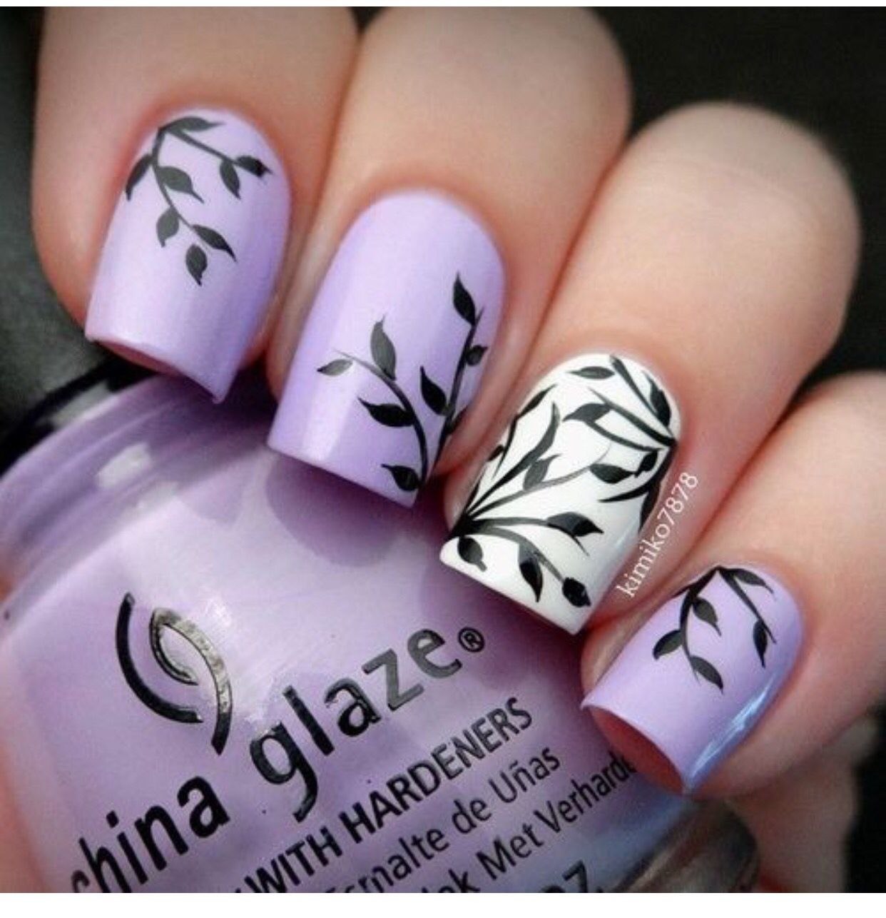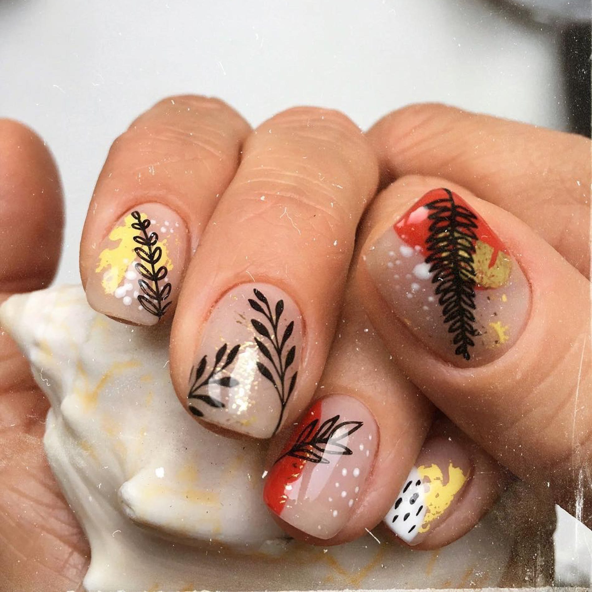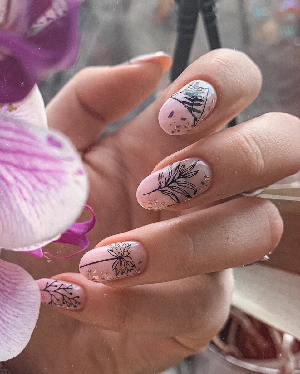 Маникюр с веточками и листочками (22 фото)