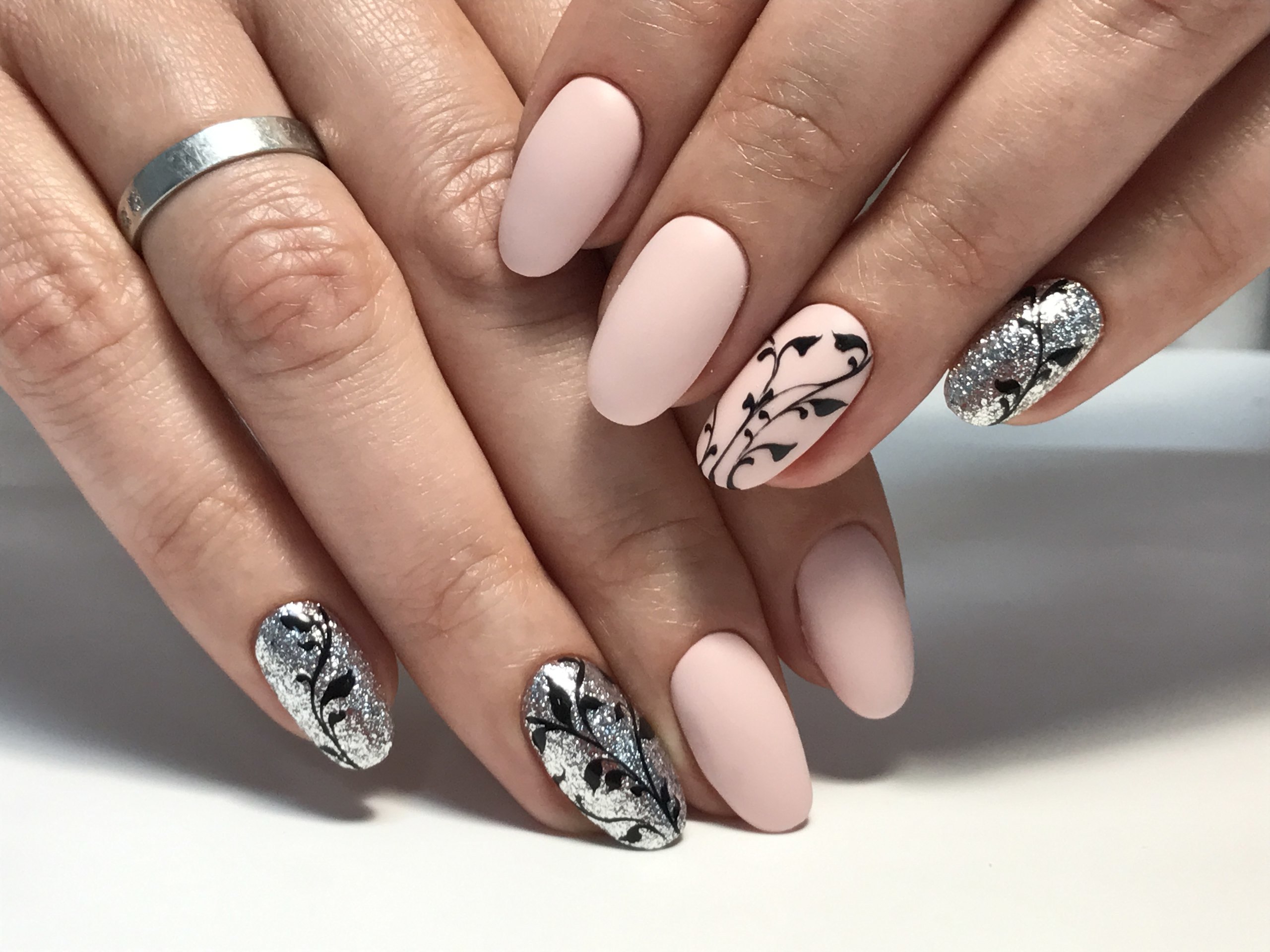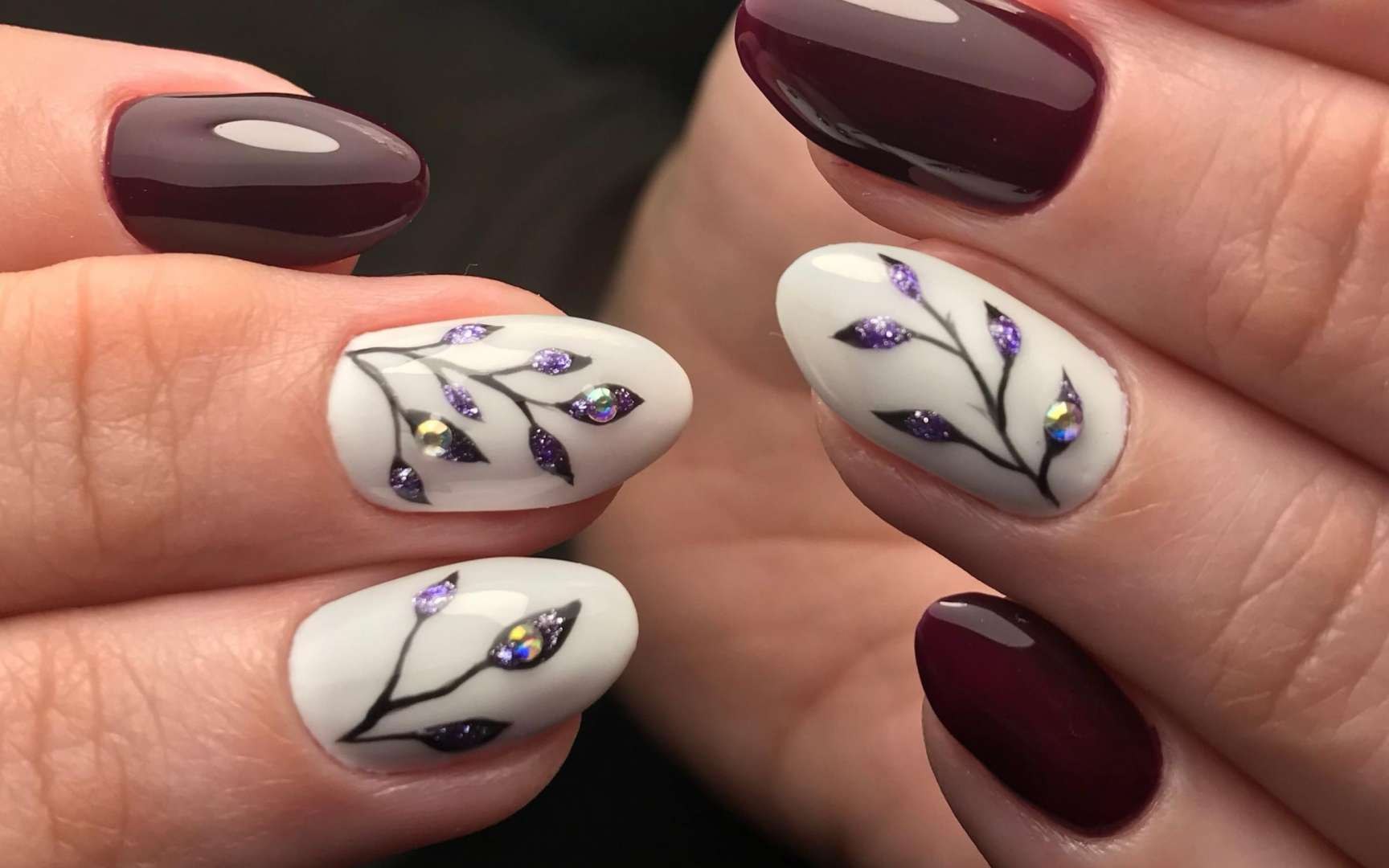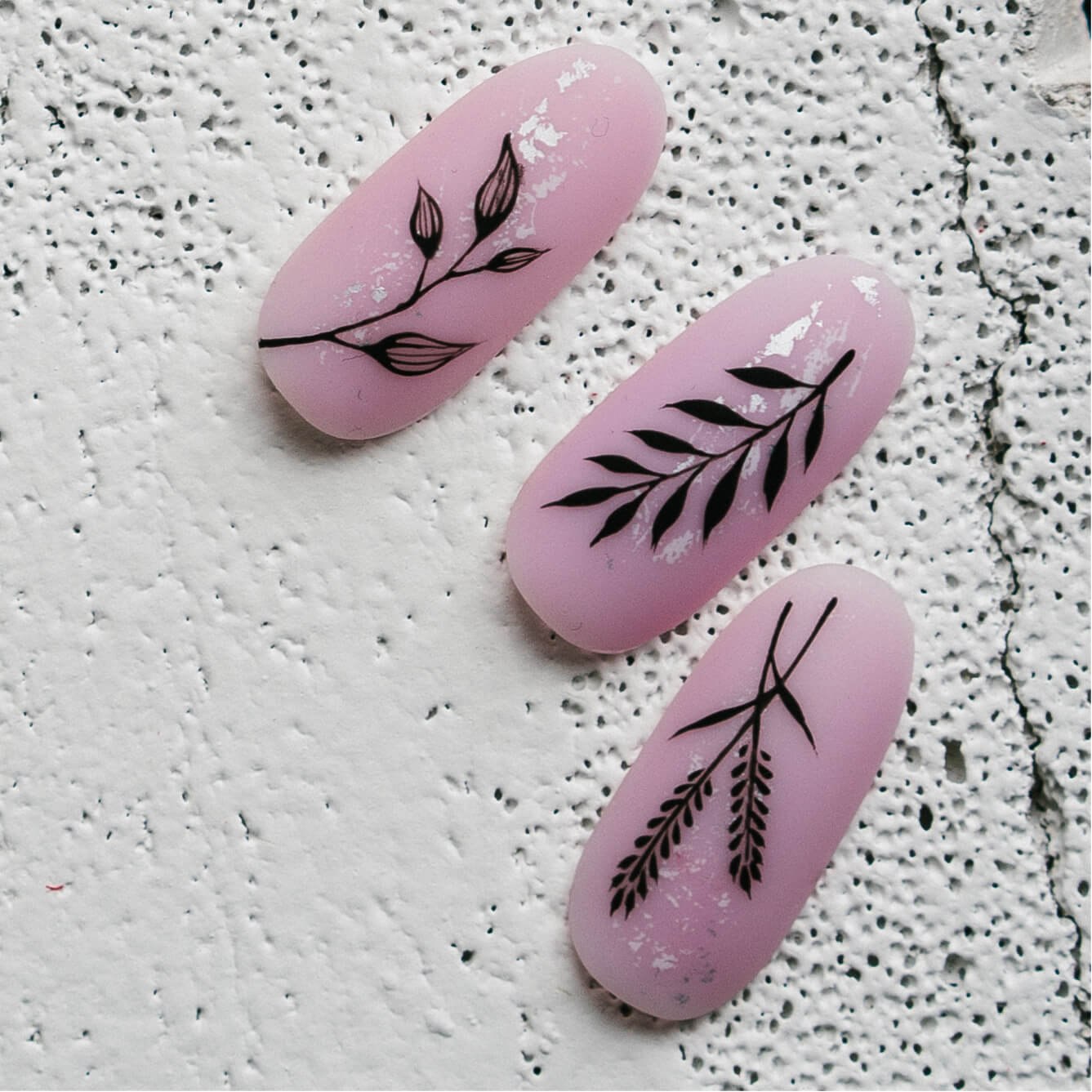 Маникюр с веточками и листиками