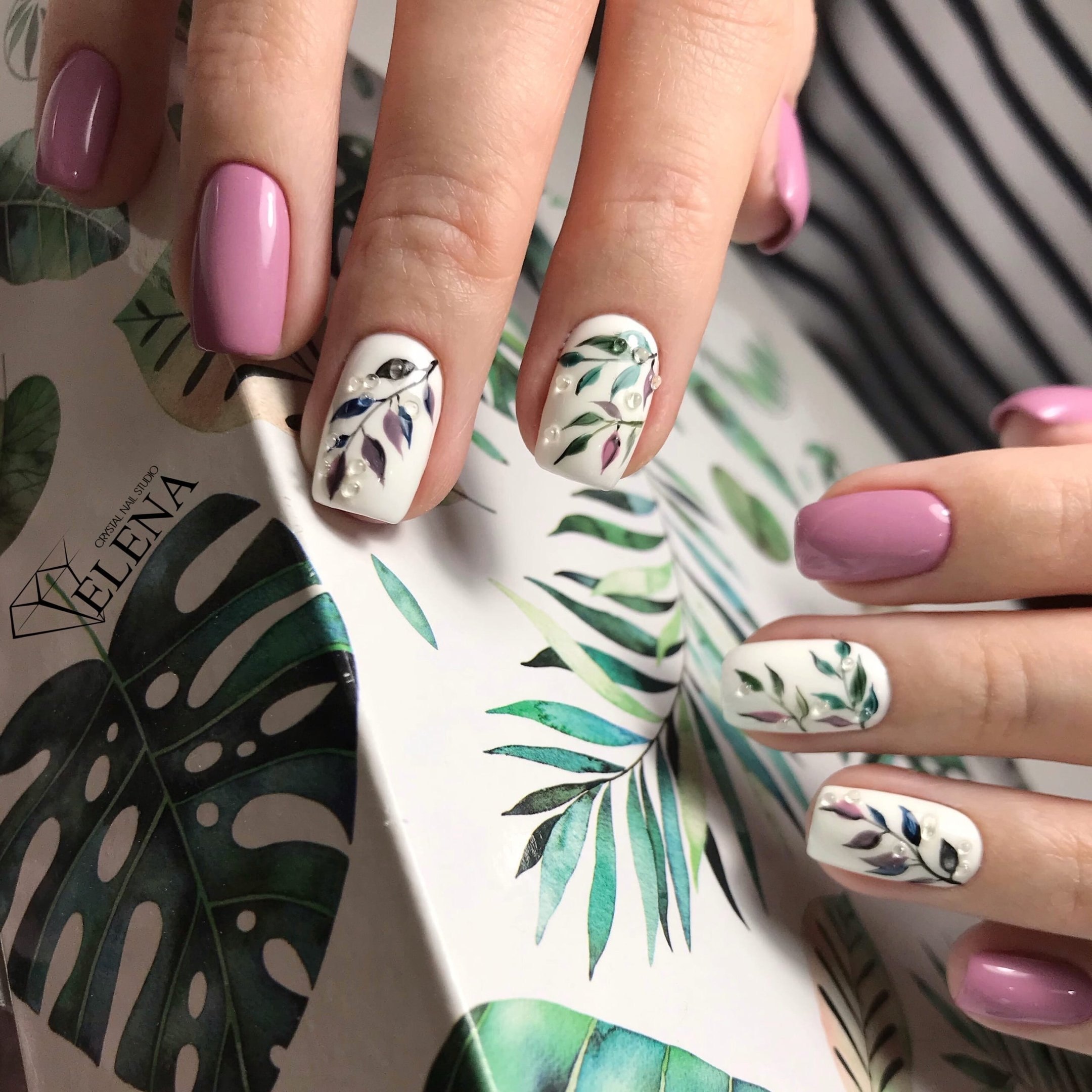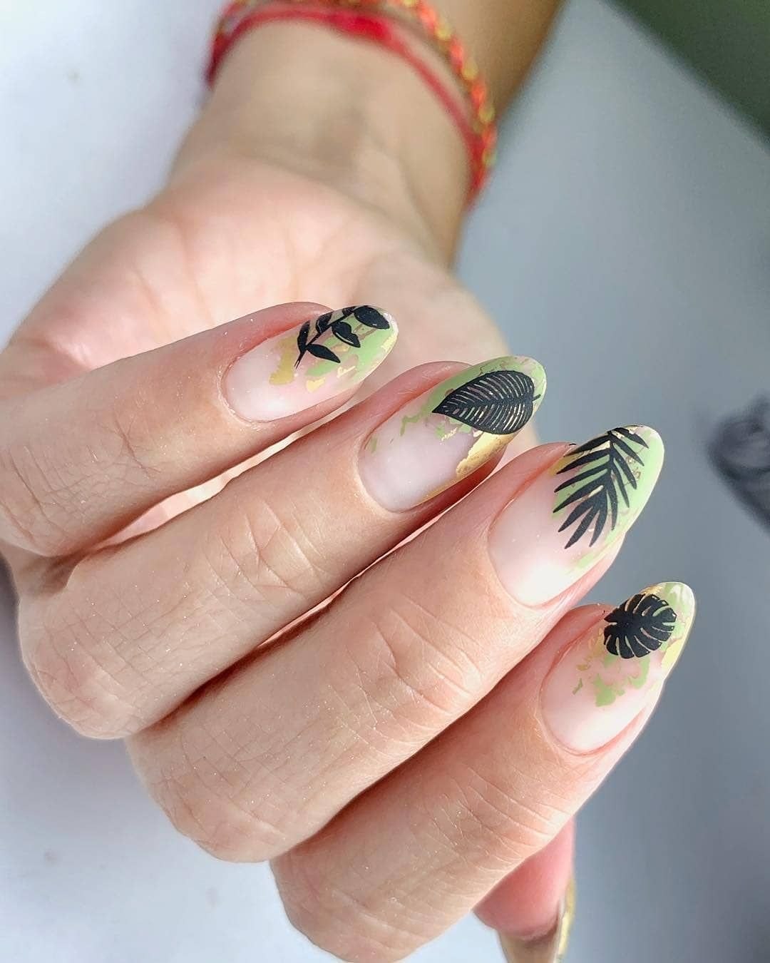 Маникюр с листиками
