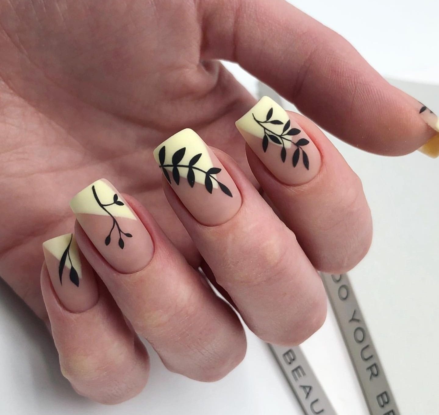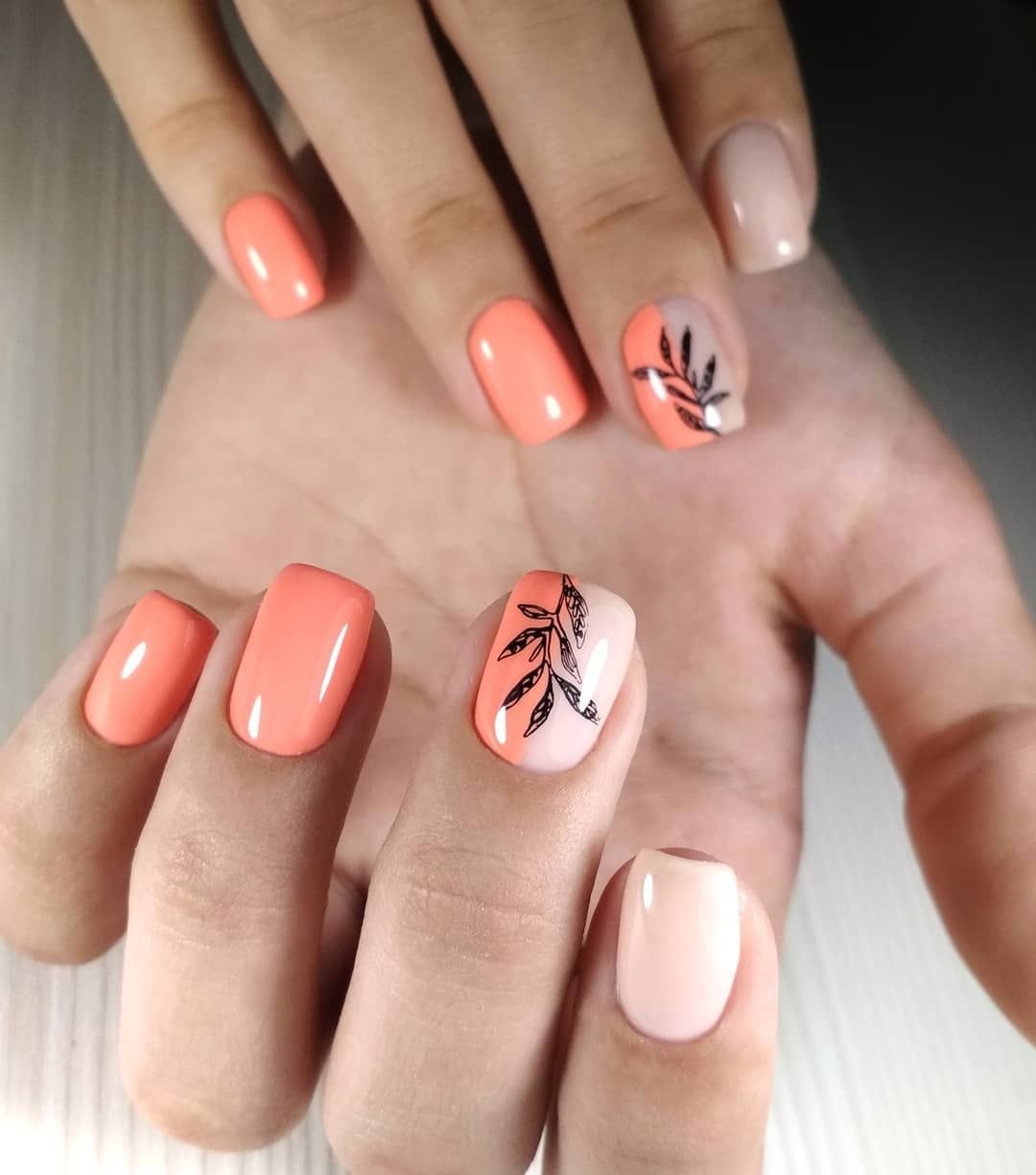 Маникюр с листочками черными