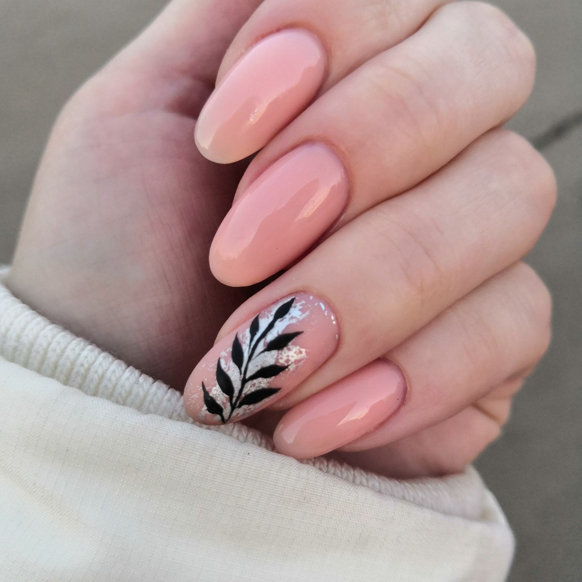 Нюдовые ногти с веточкой