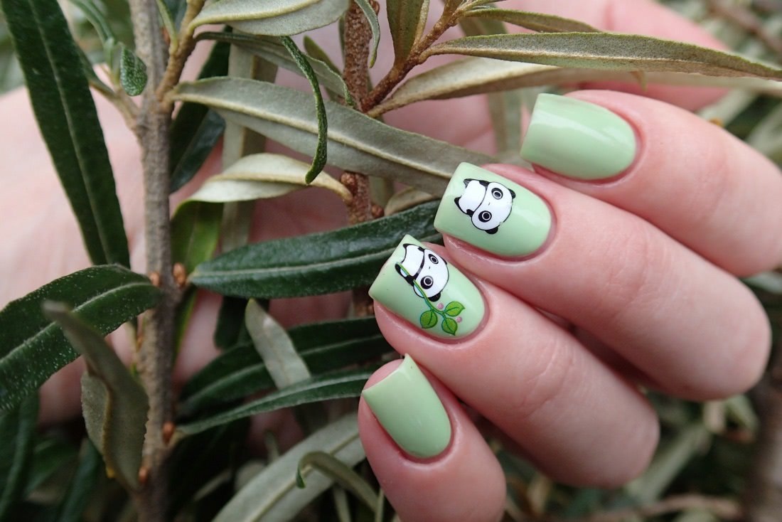 Маникюр с зеленой веточкой