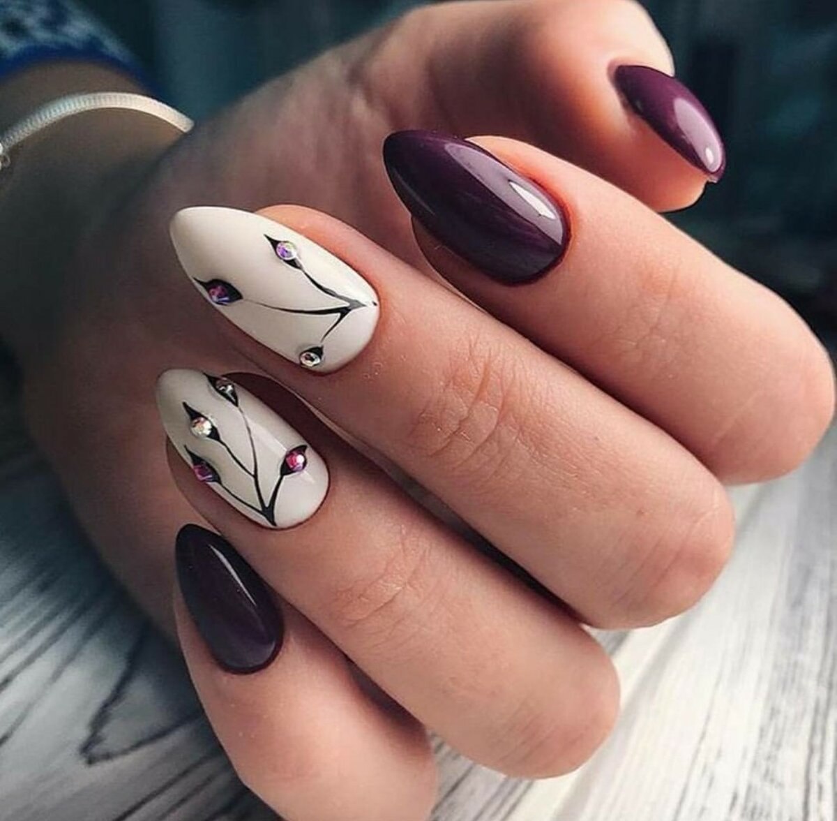 Маникюр с веточкой и стразами