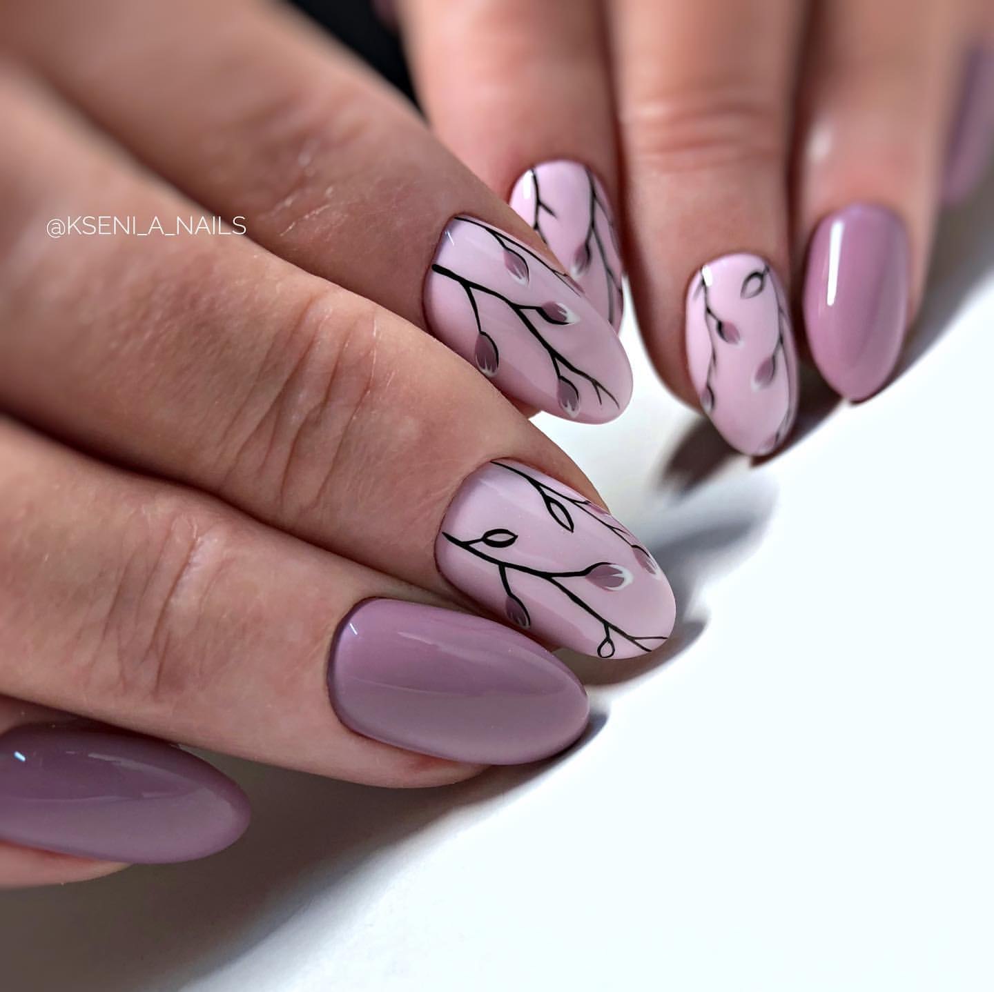 Сиреневые ногти с веточками