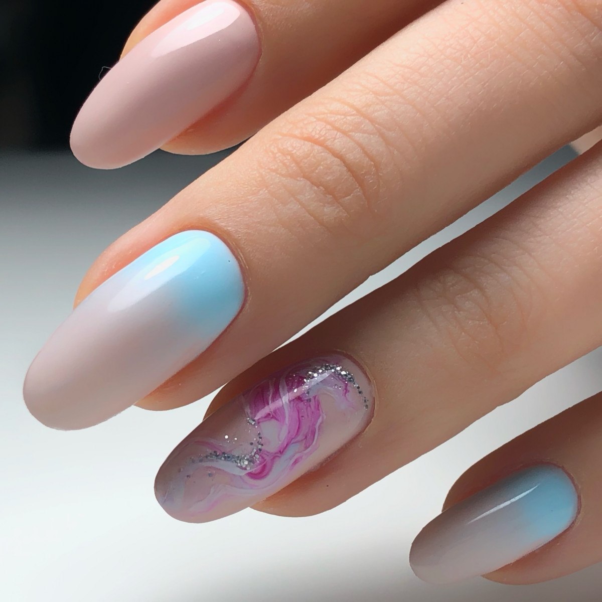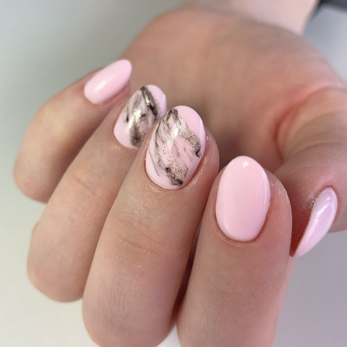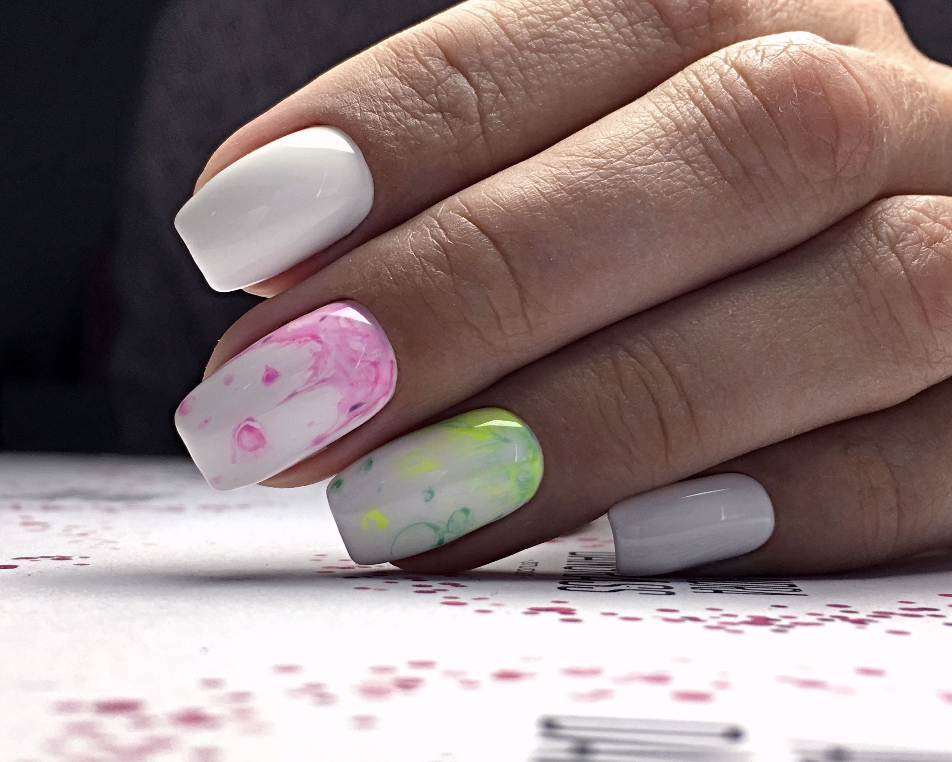 Нежный мраморный маникюр