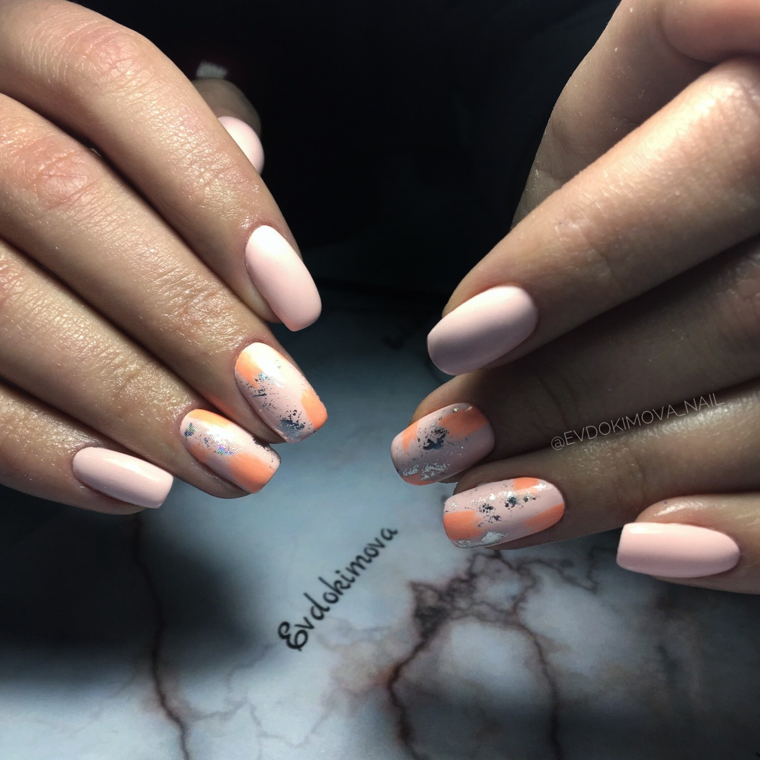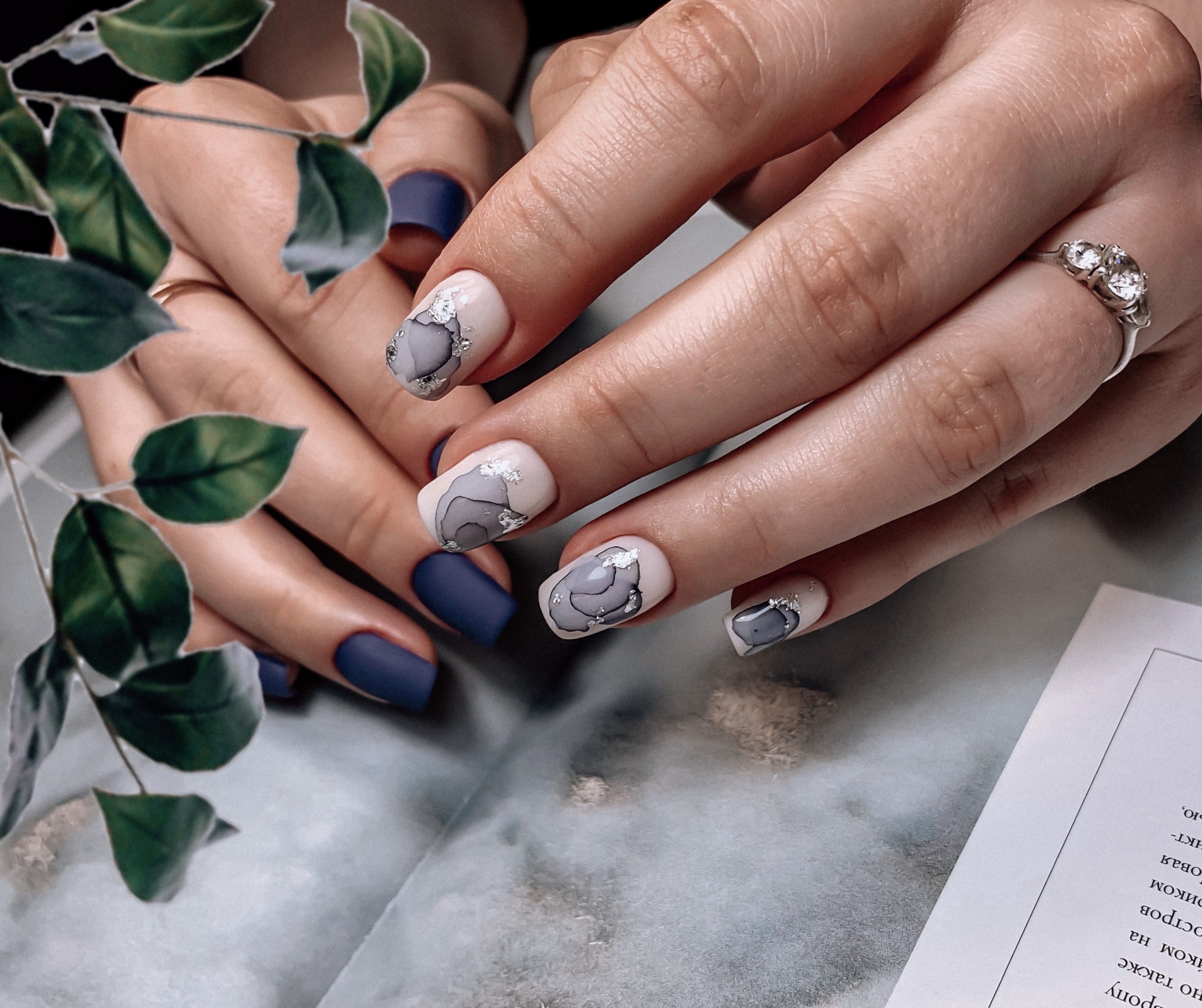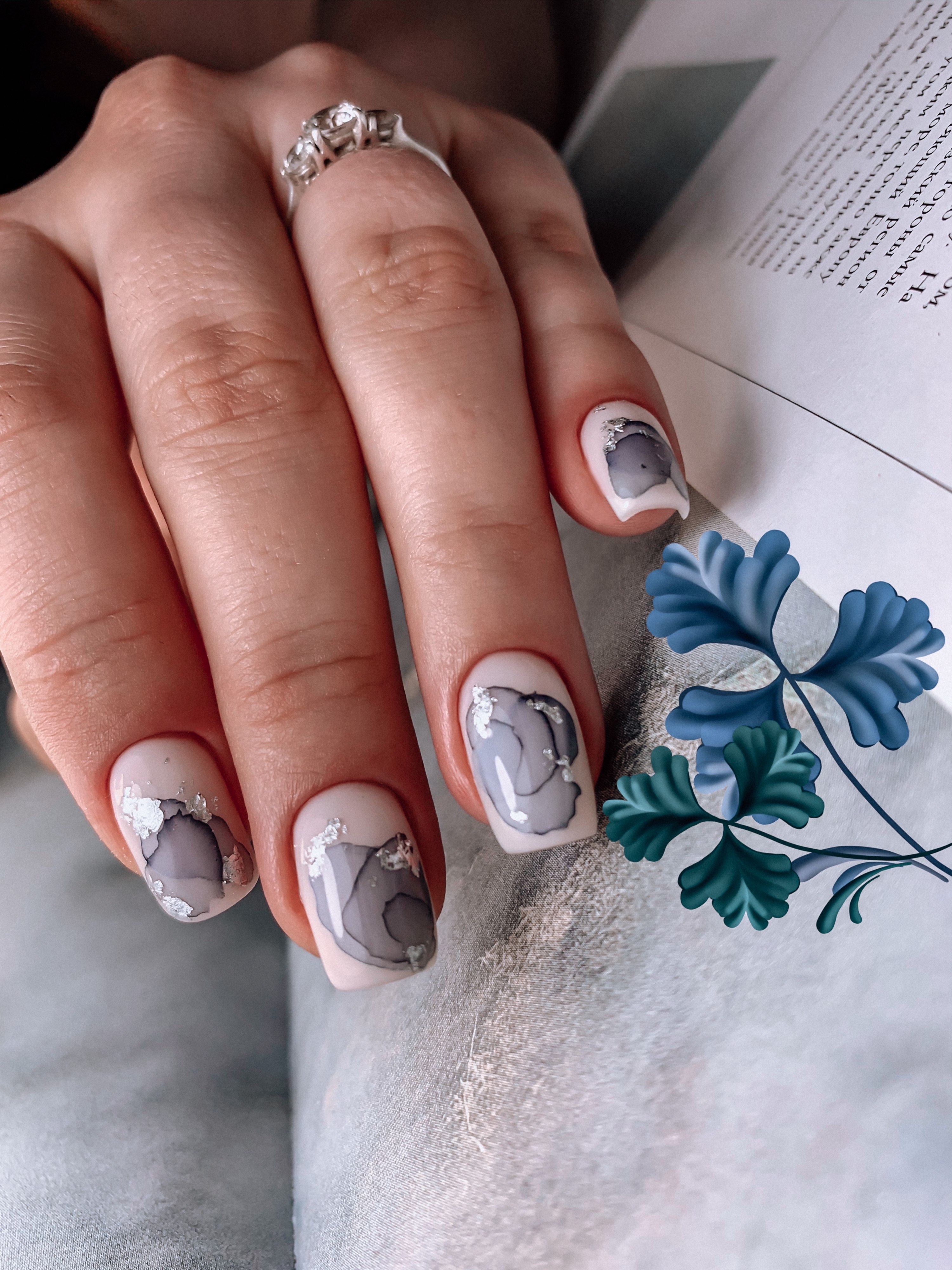 Нежный мраморный маникюр