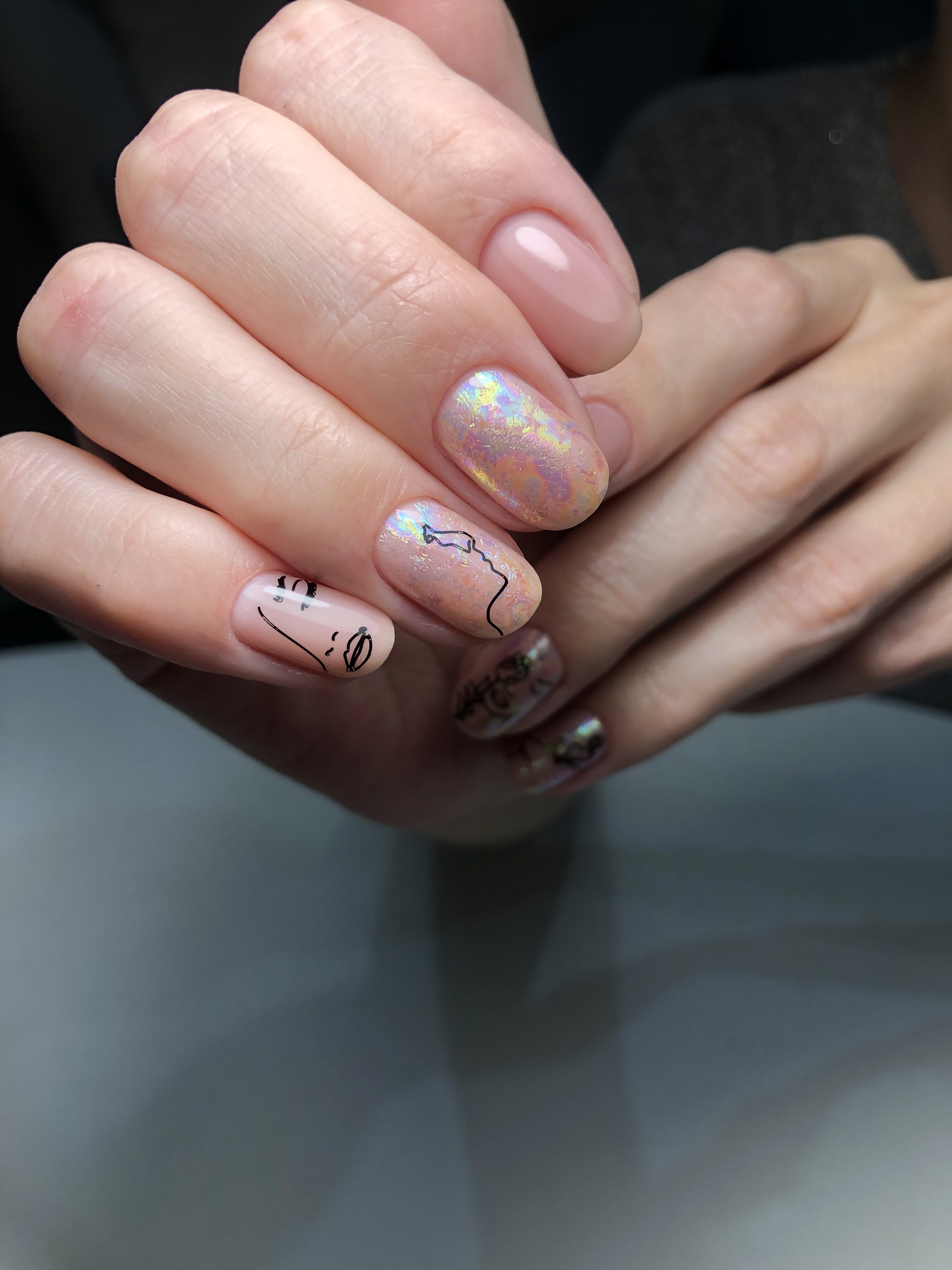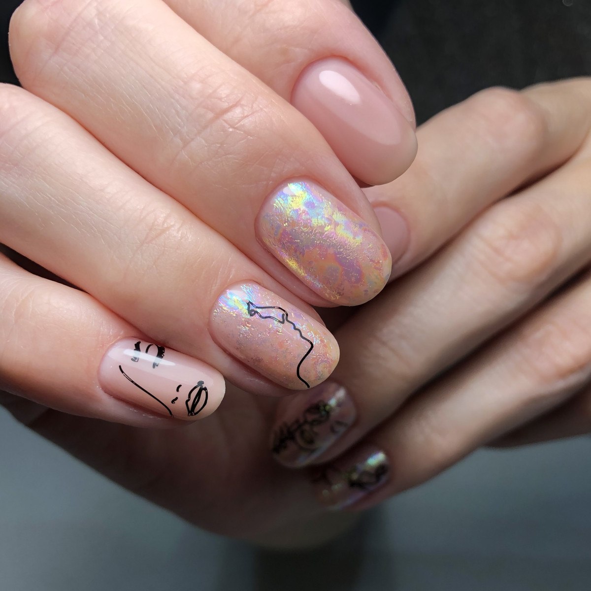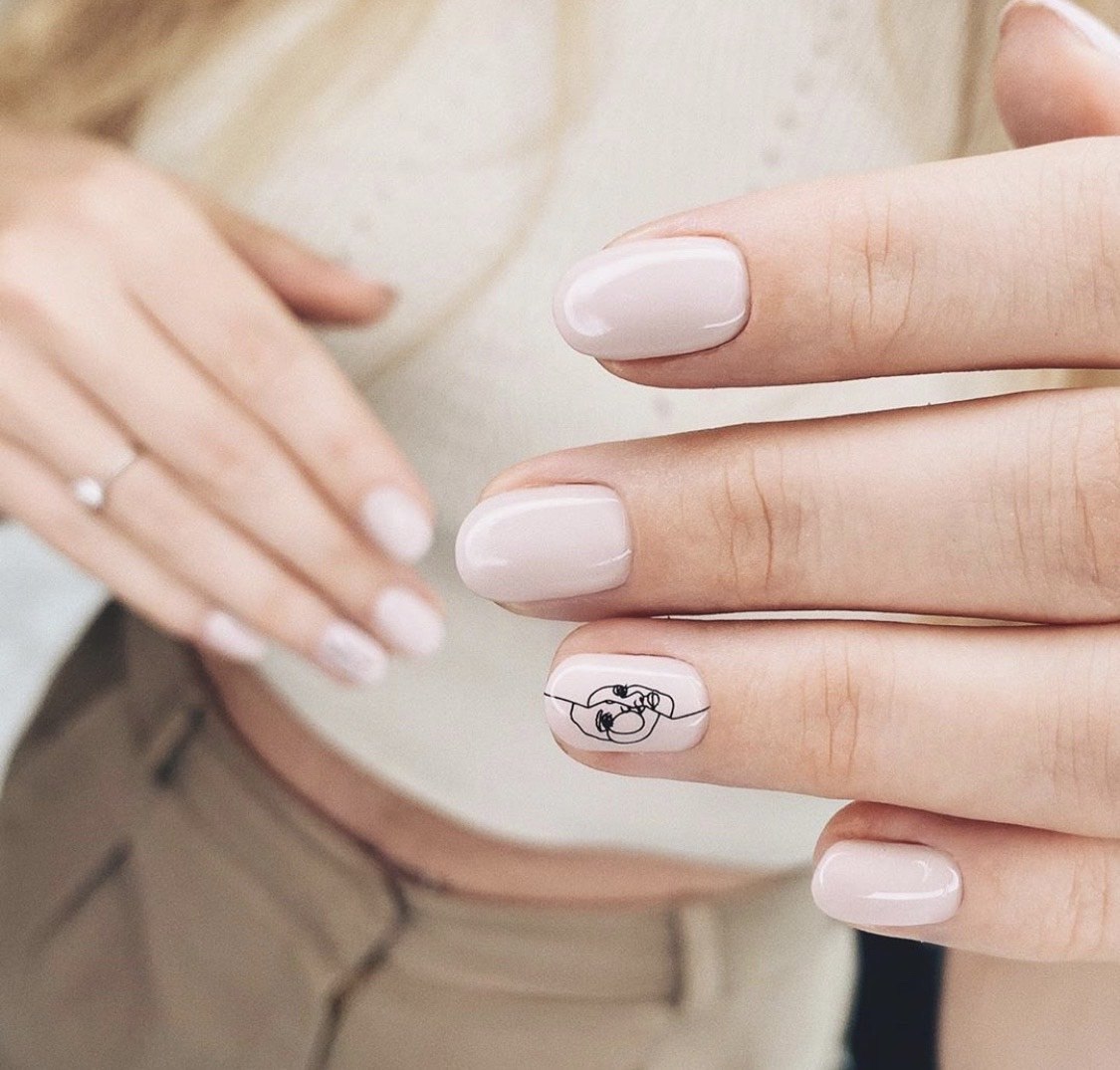 Нюдовый маникюр с абстракцией