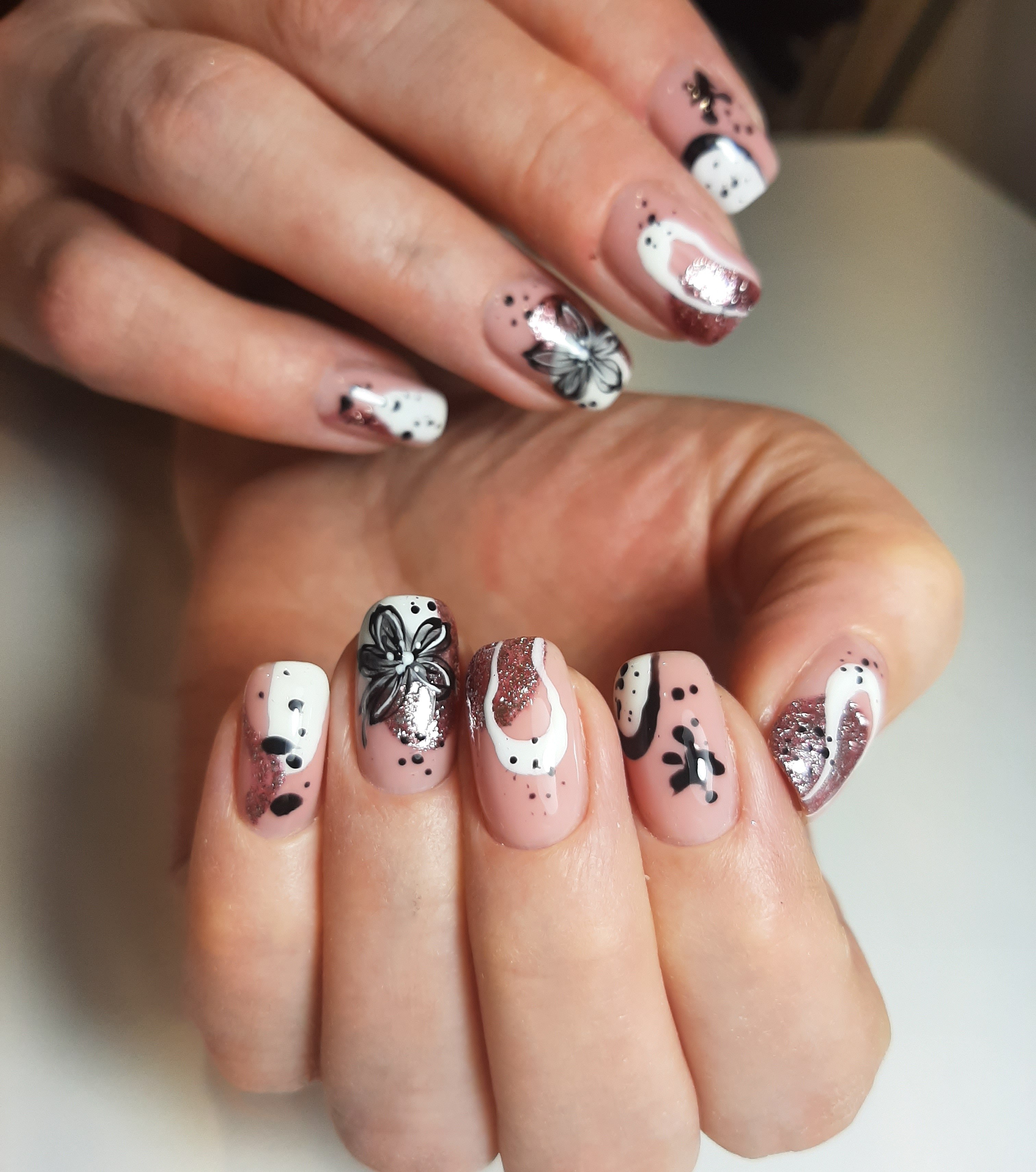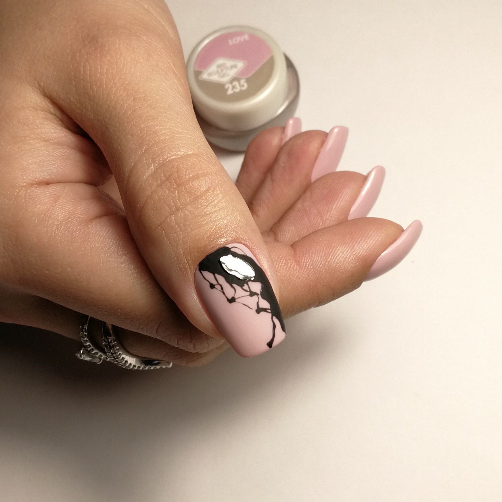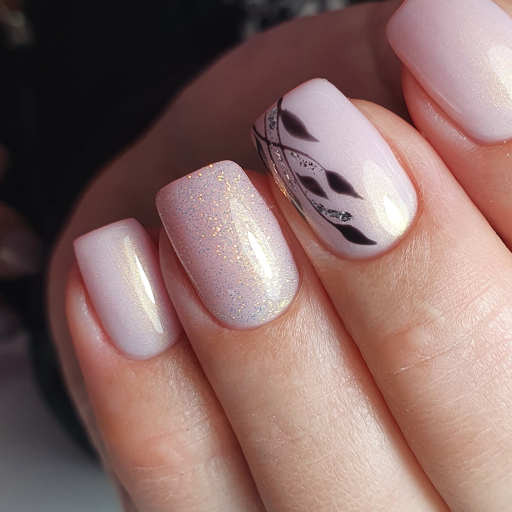 Нюдовый маникюр с абстракцией