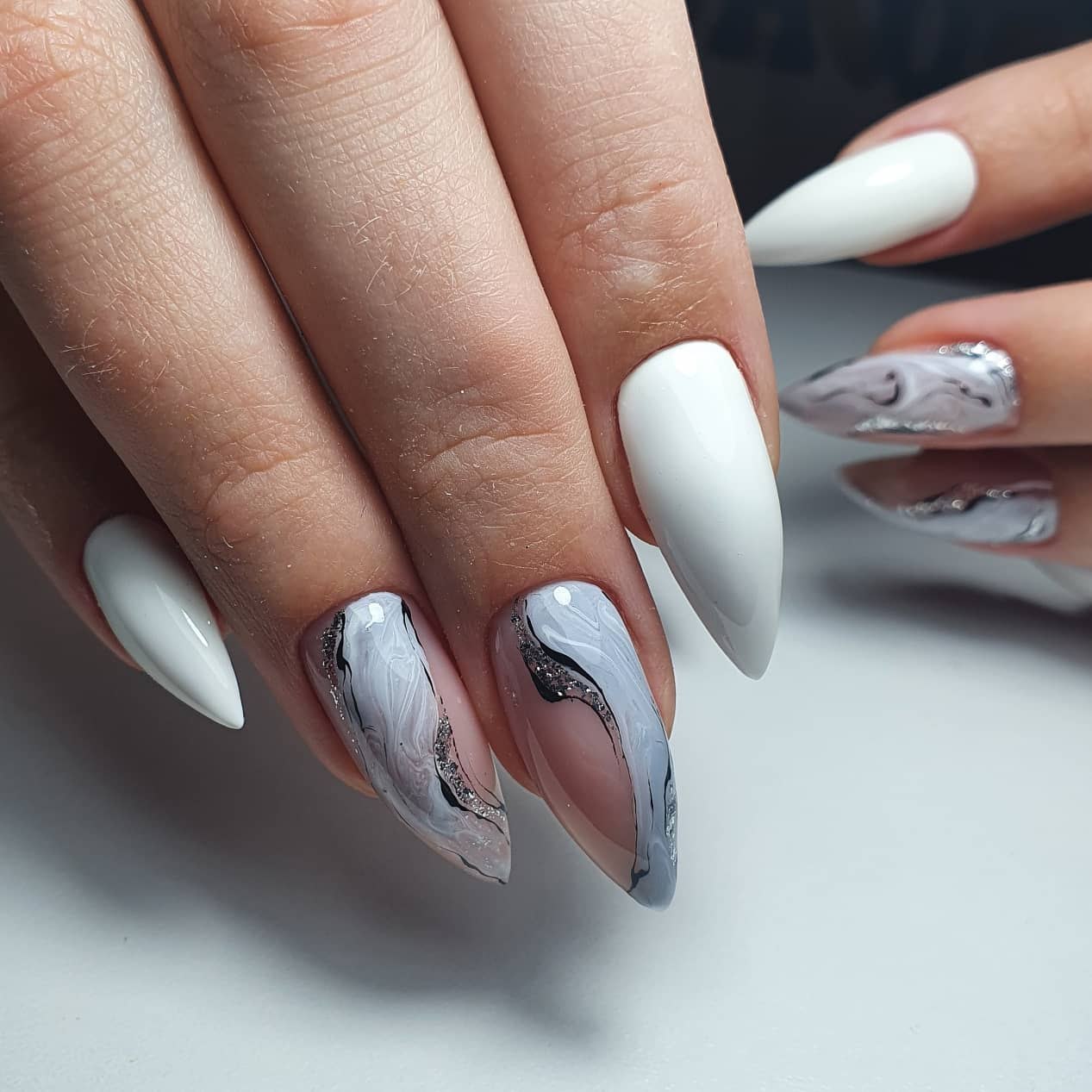 Абстракция на белых ногтях