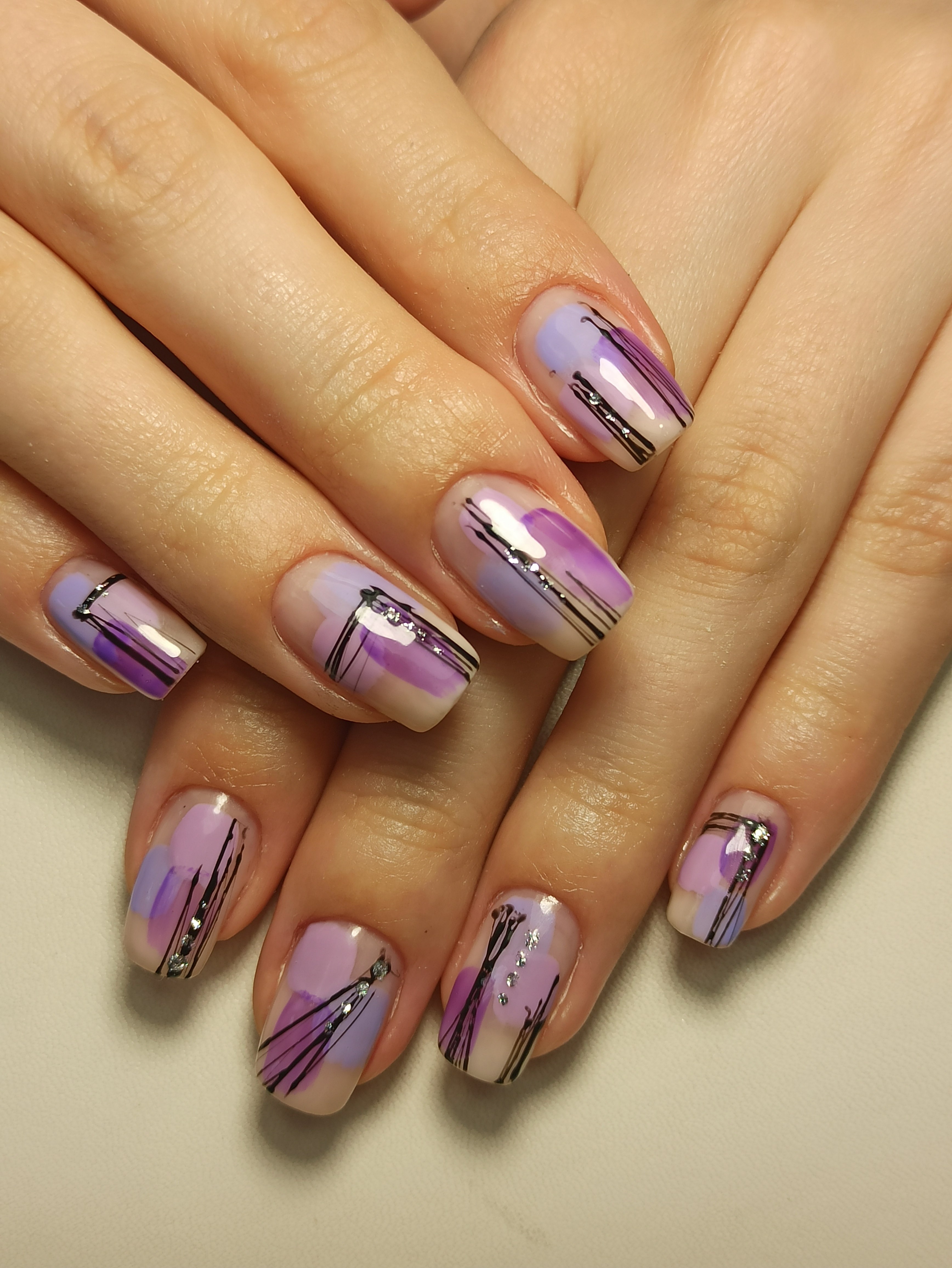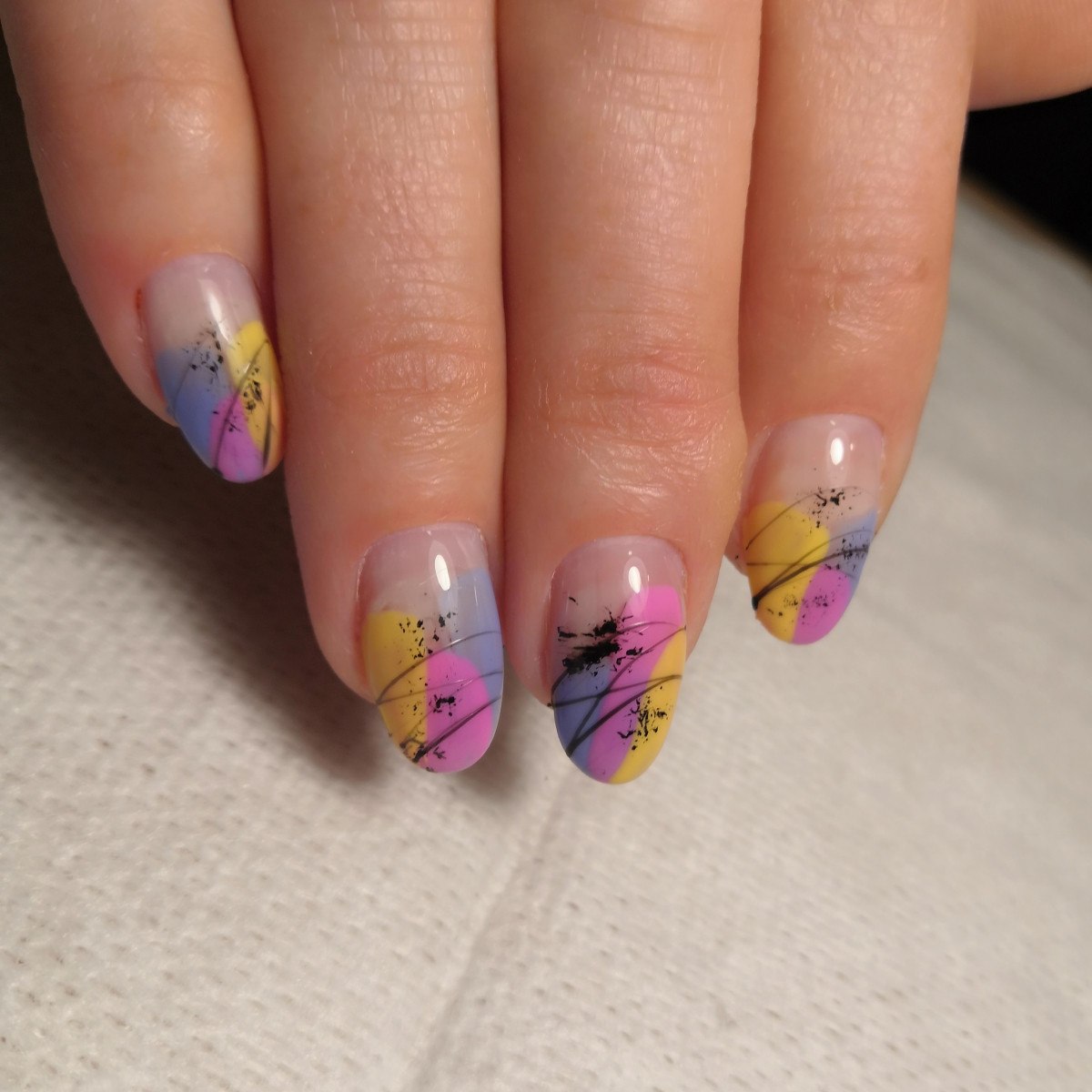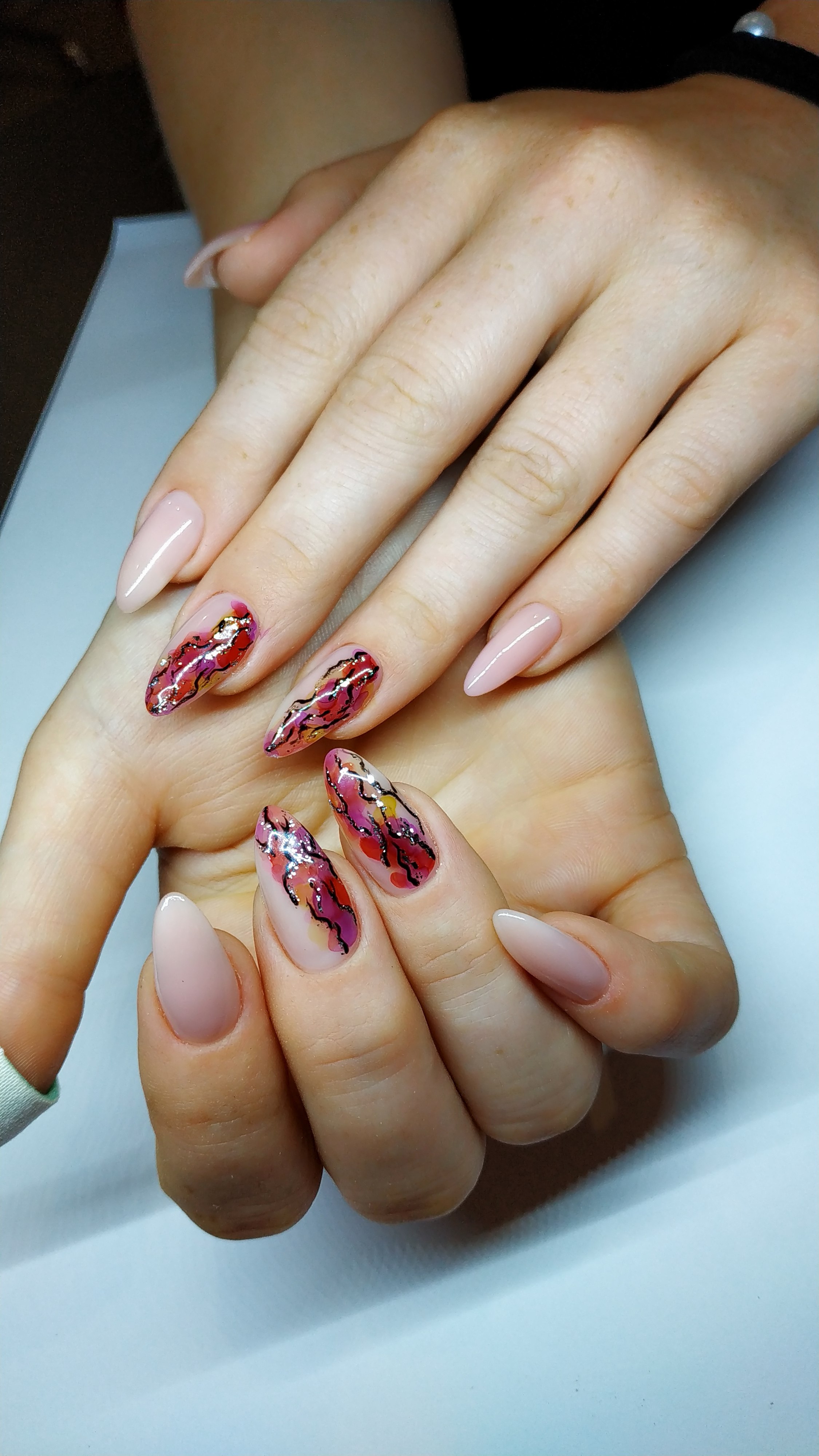 Абстракция на полупрозрачных ногтях
