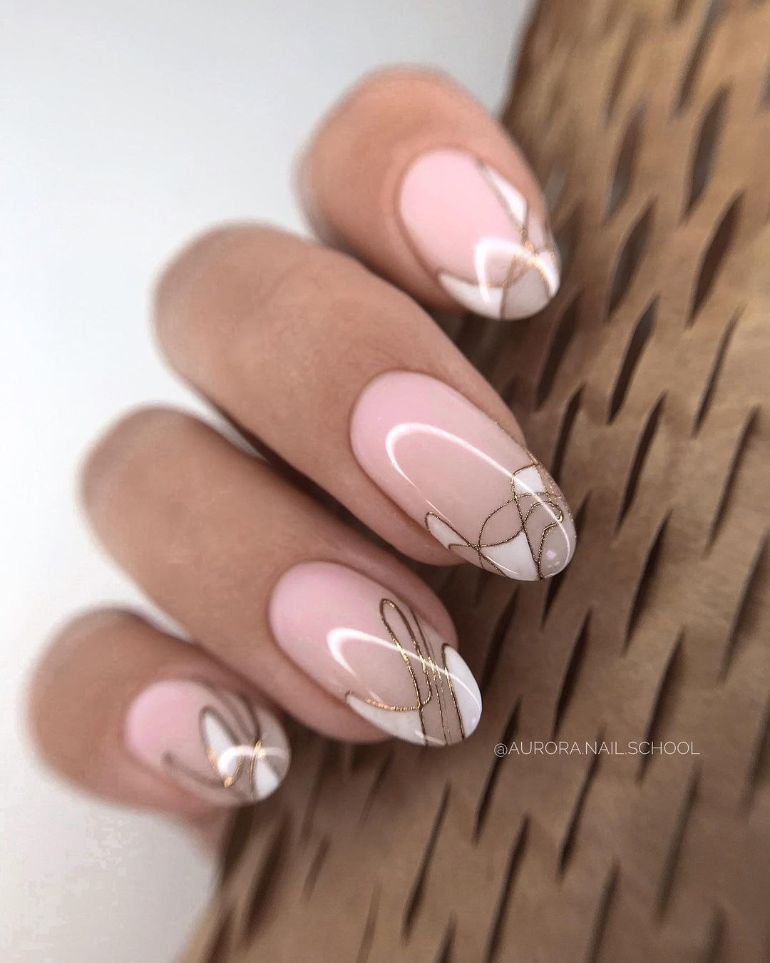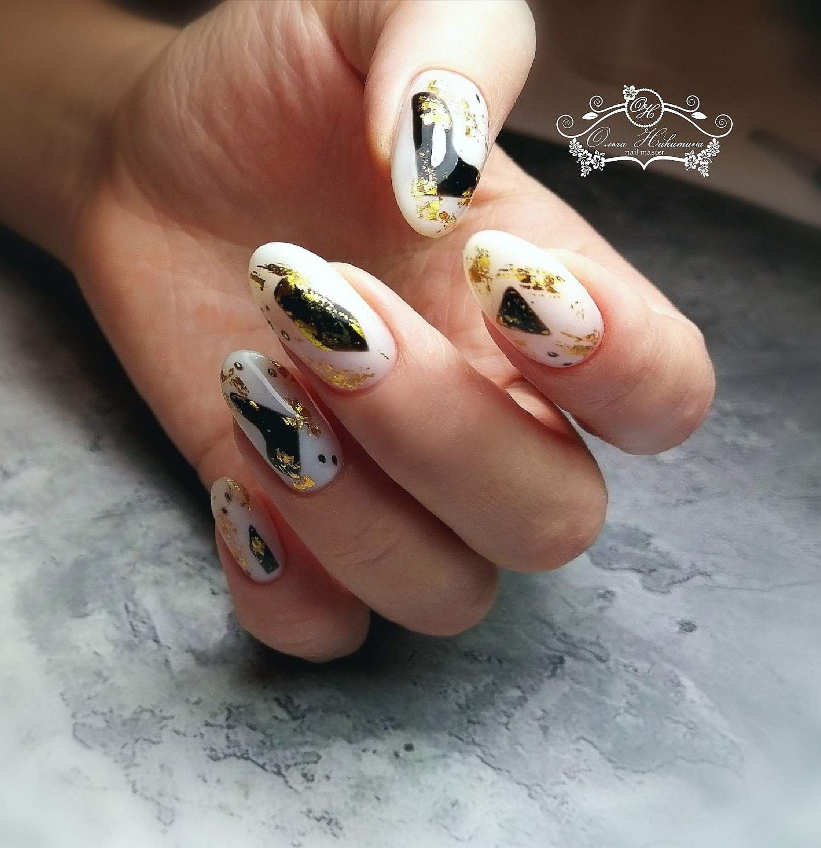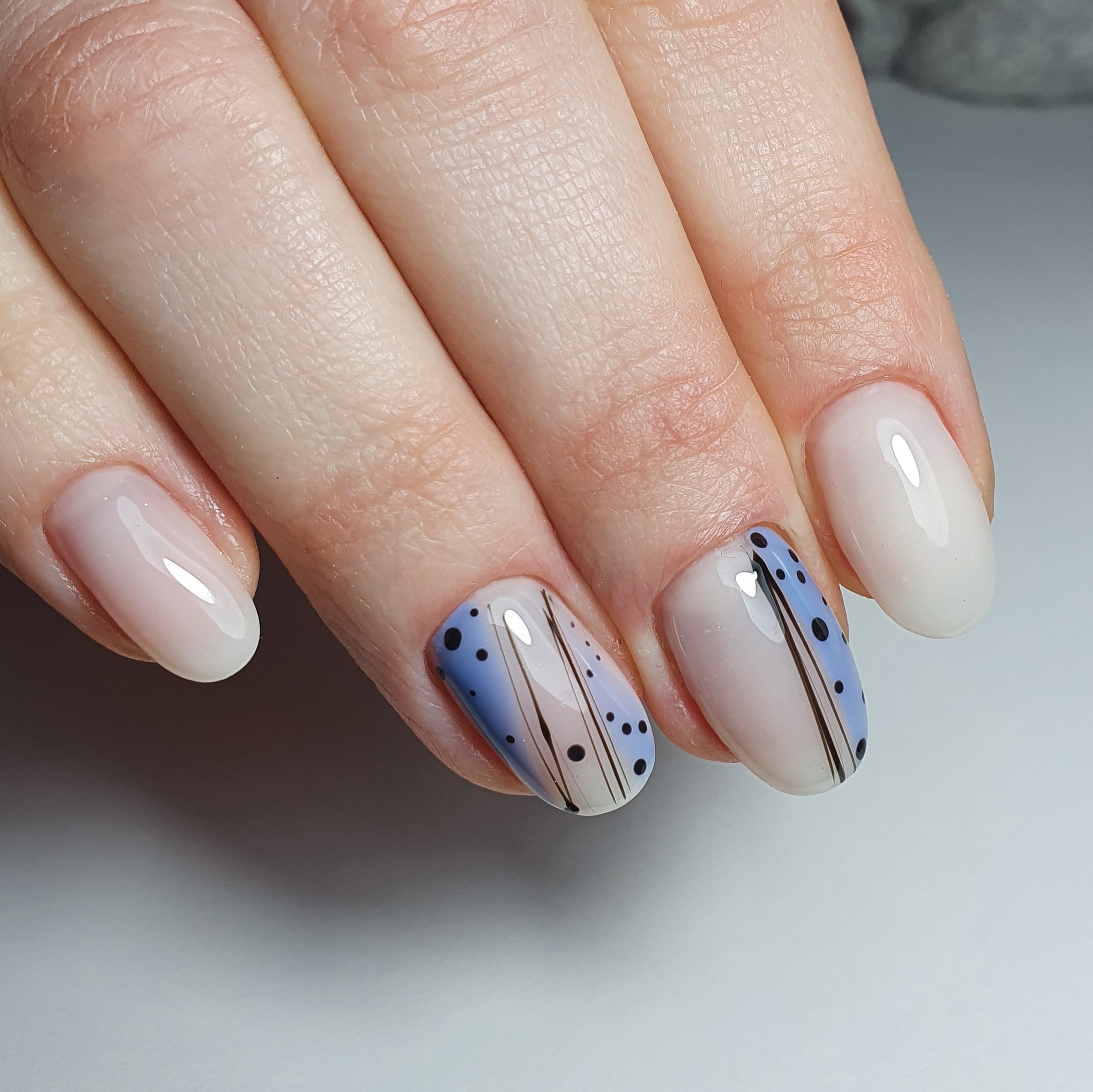 Молочный маникюр с абстракцией