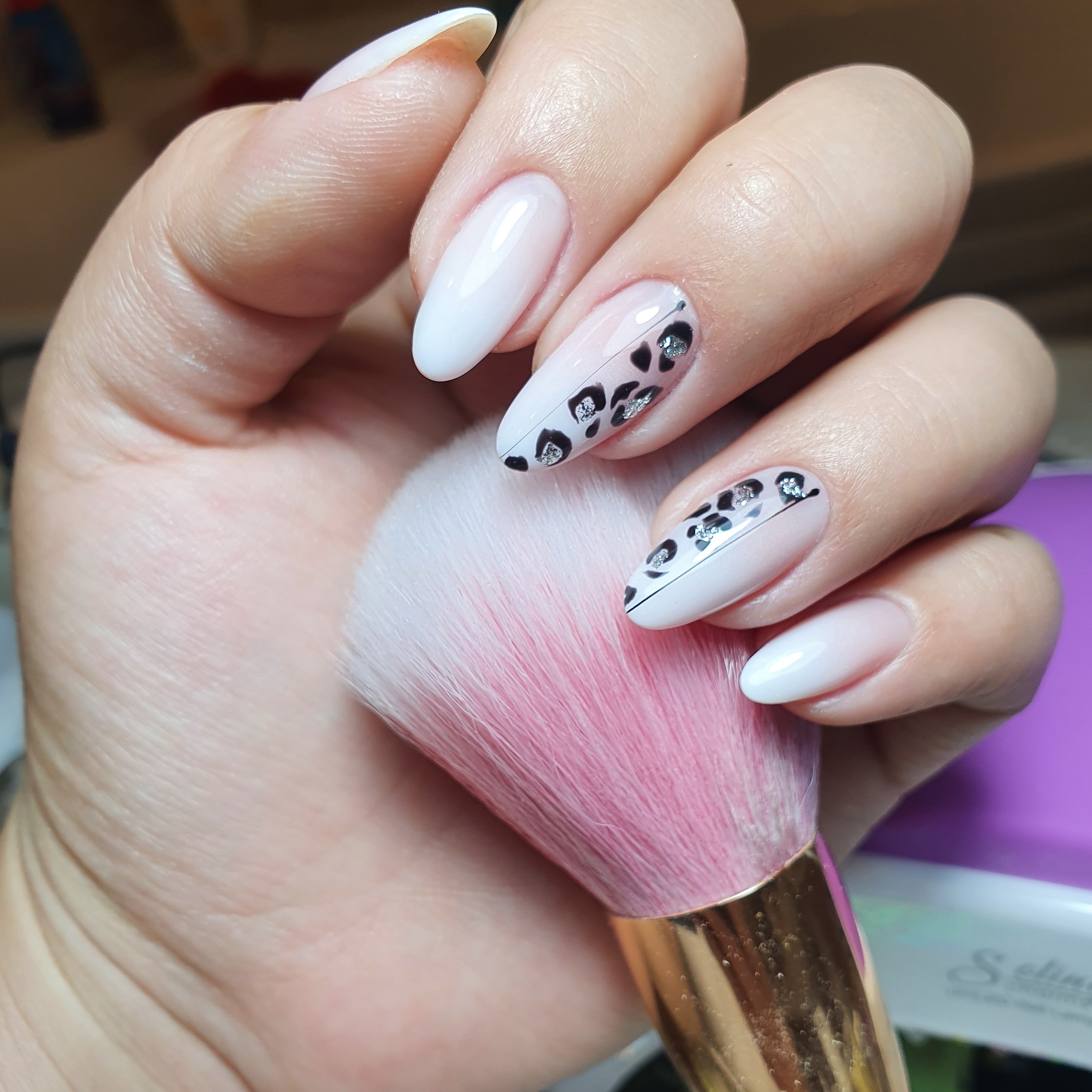 Молочный маникюр с принтом
