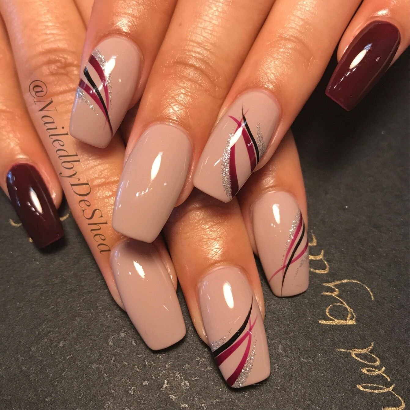Ногти бежевые с абстракцией