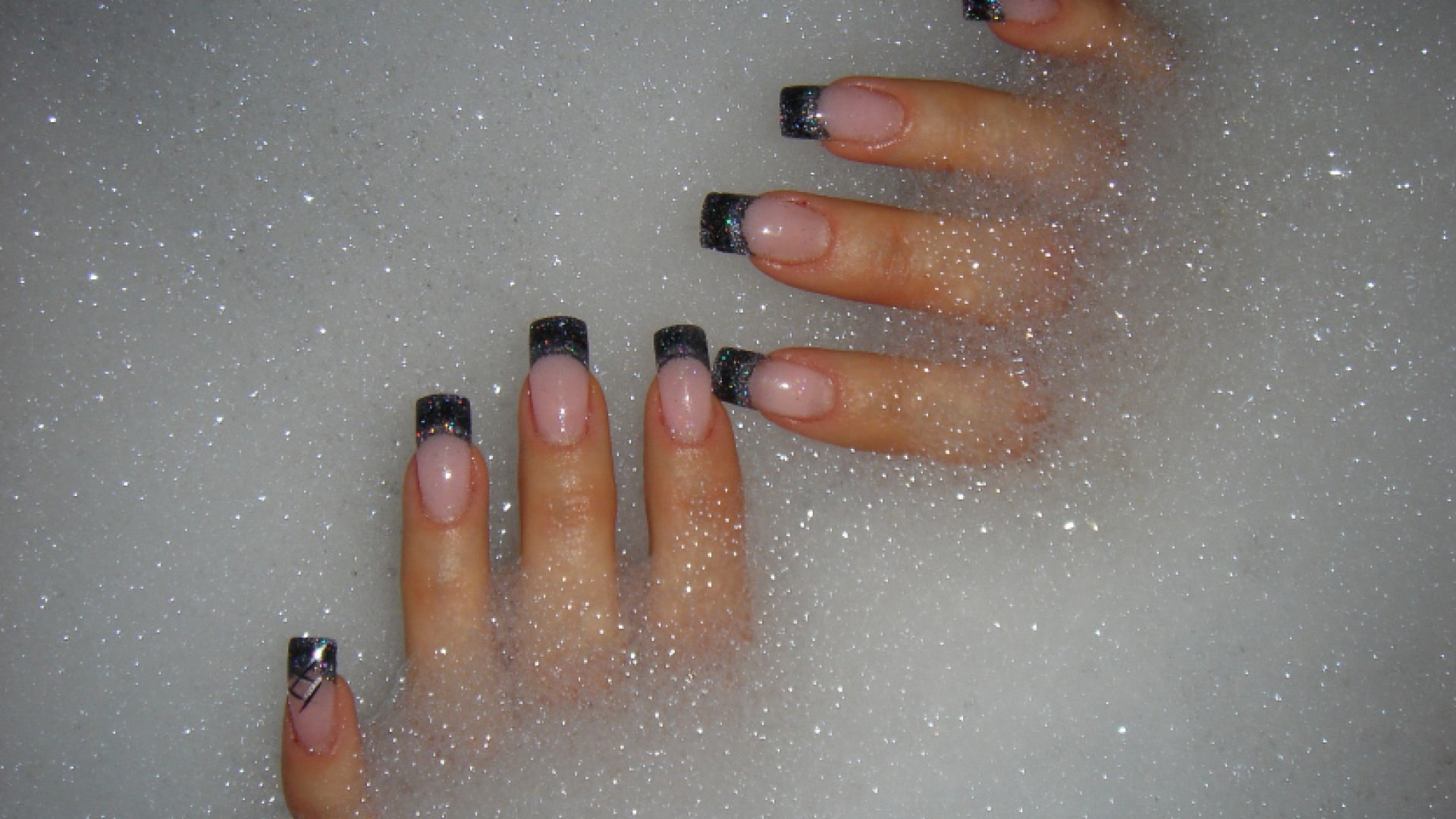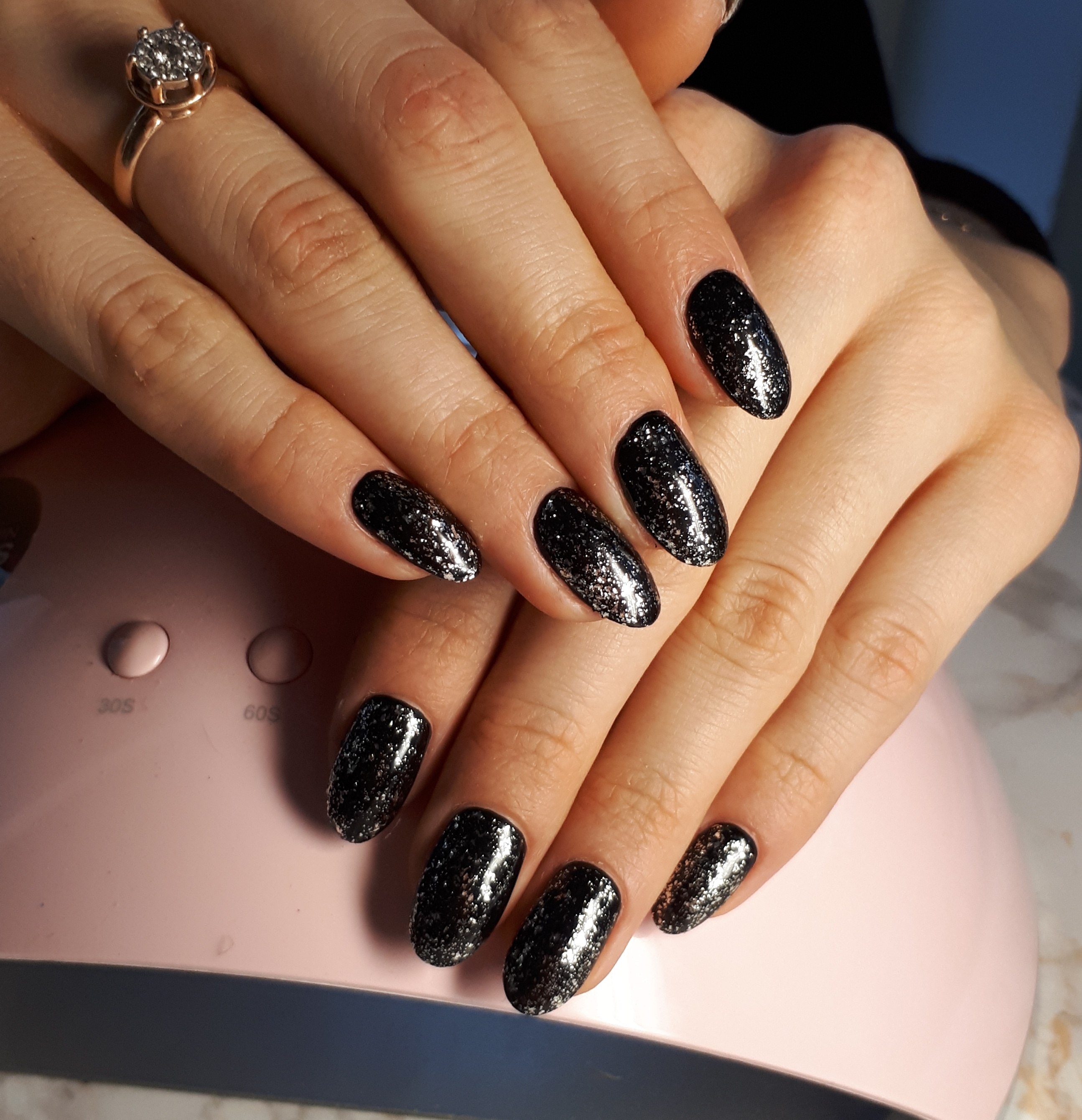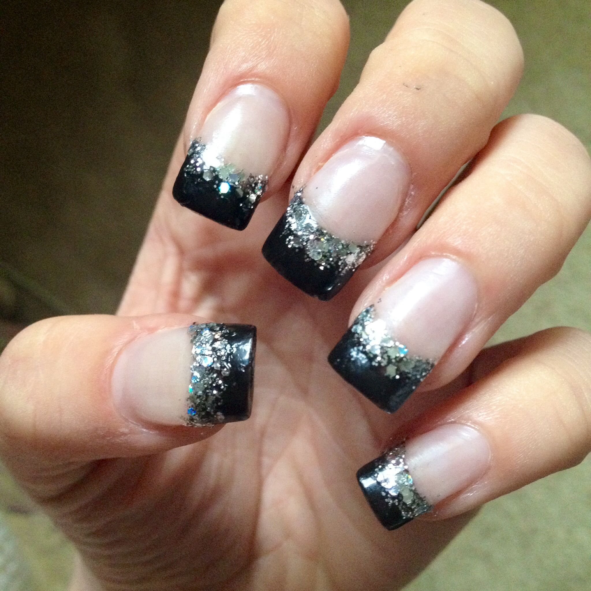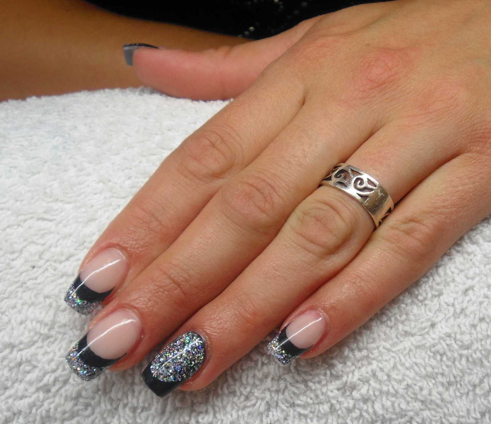 Чёрный френч с блестками на ногтях