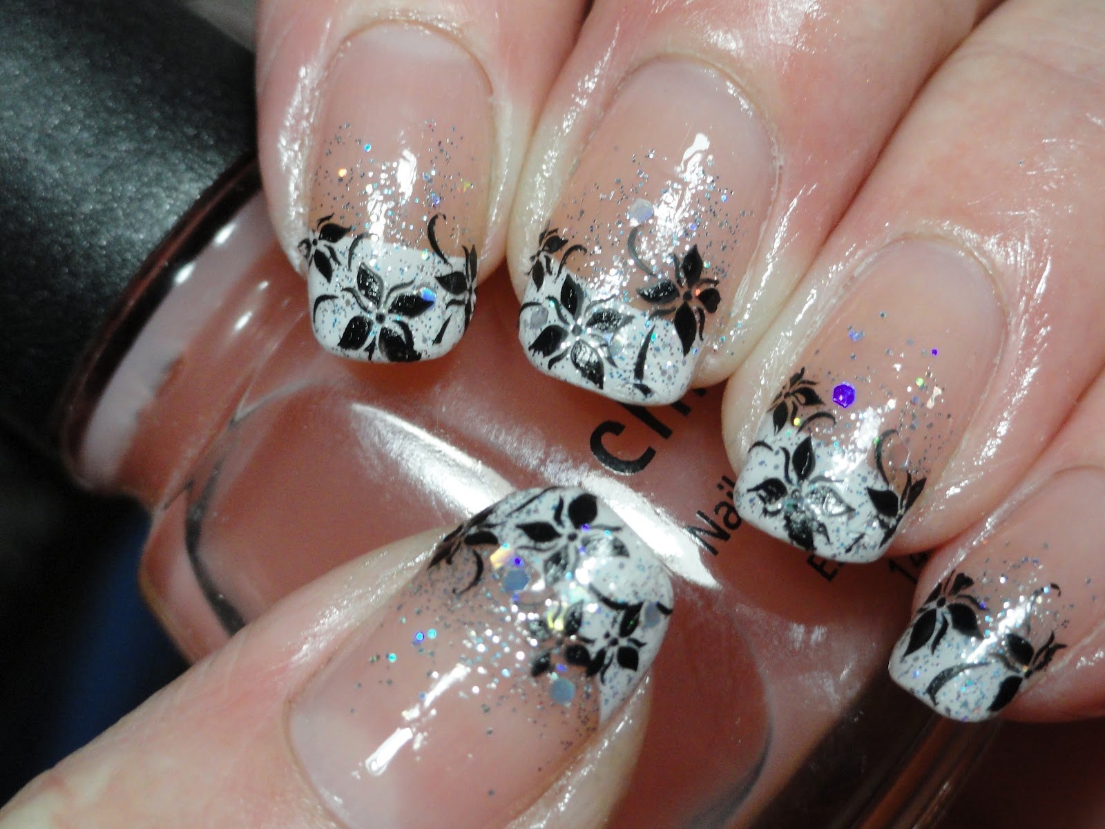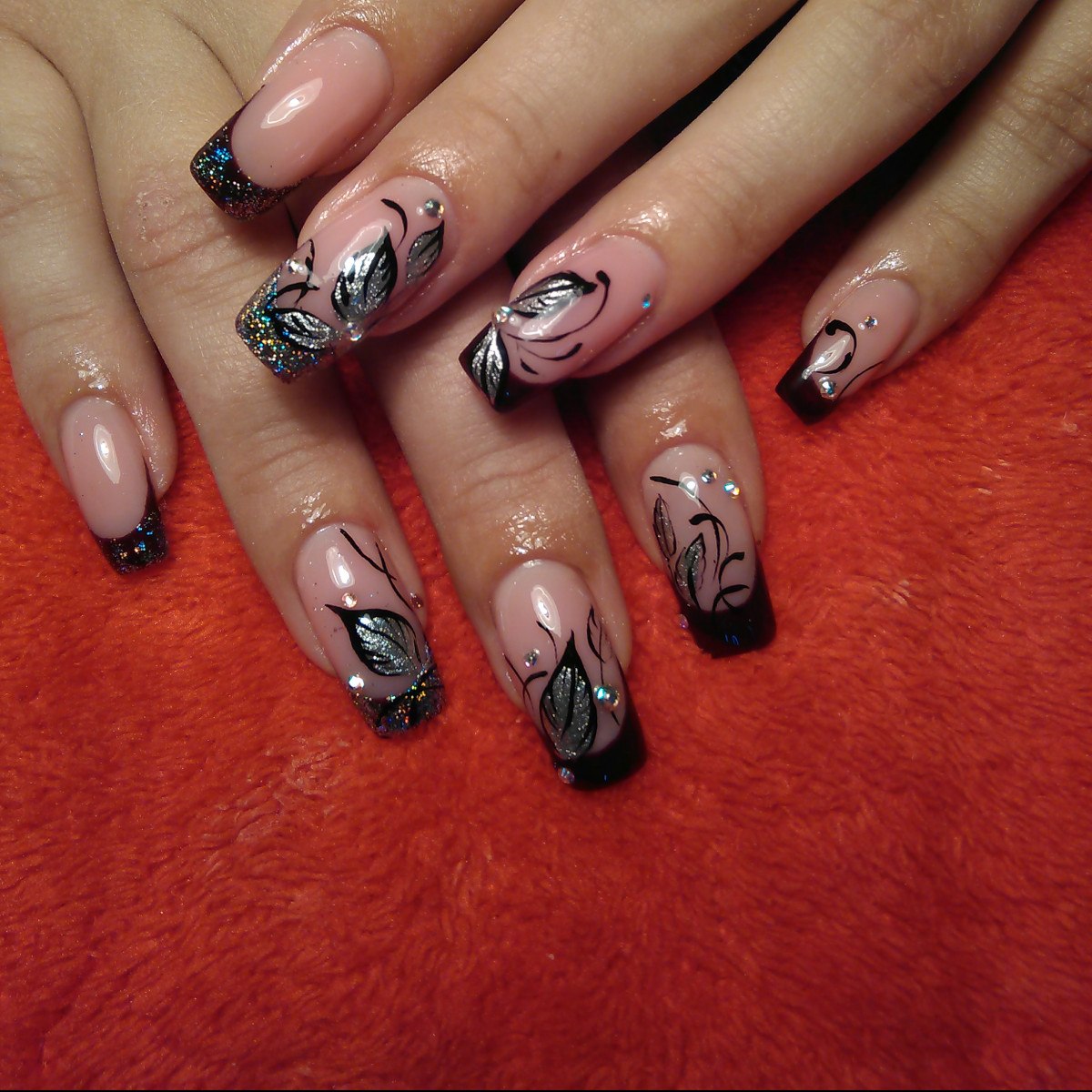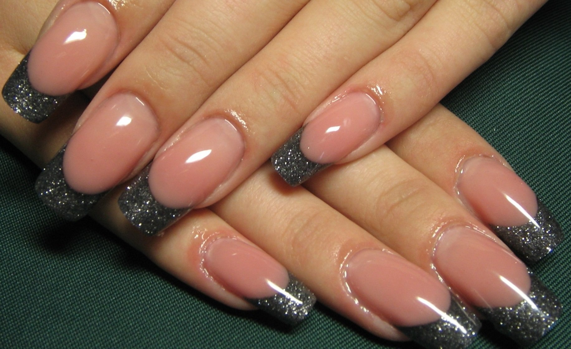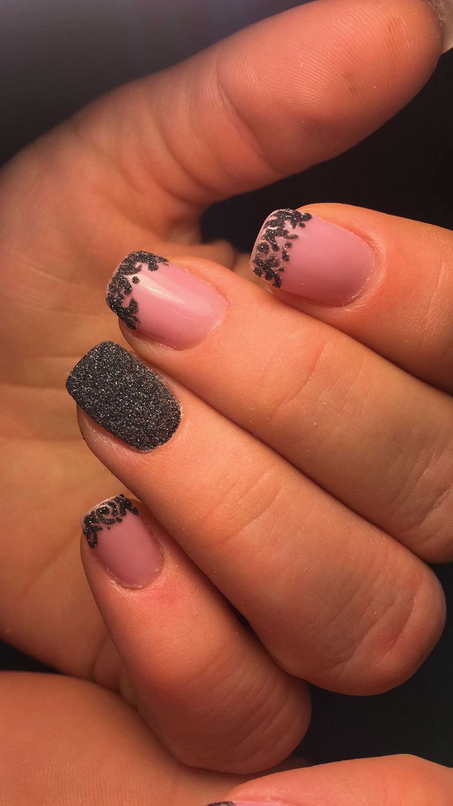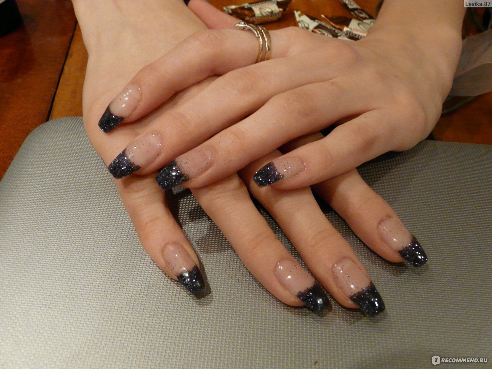 Чёрный френч с блестками на ногтях