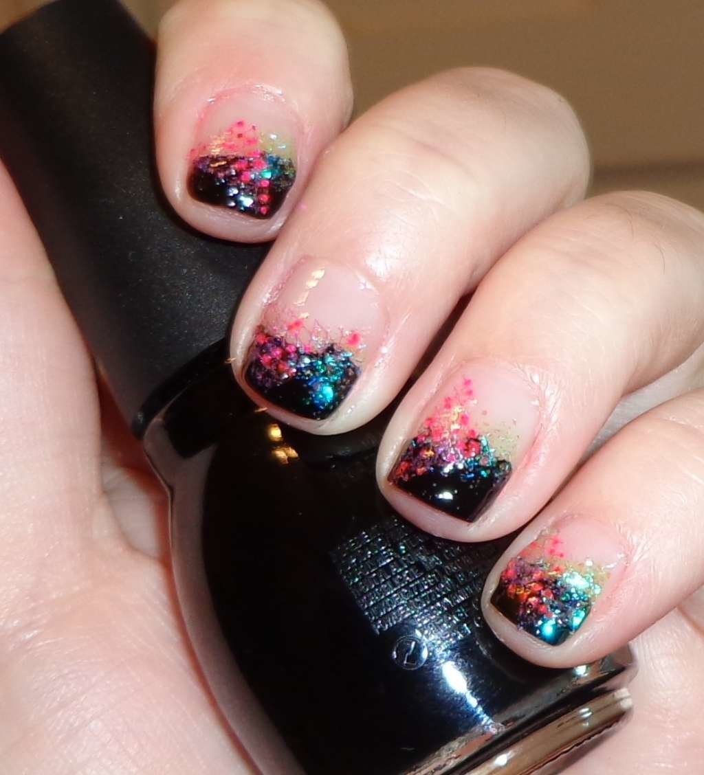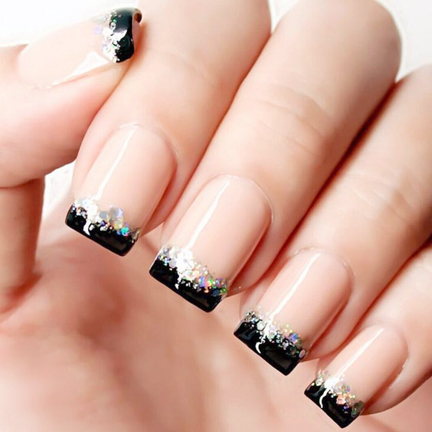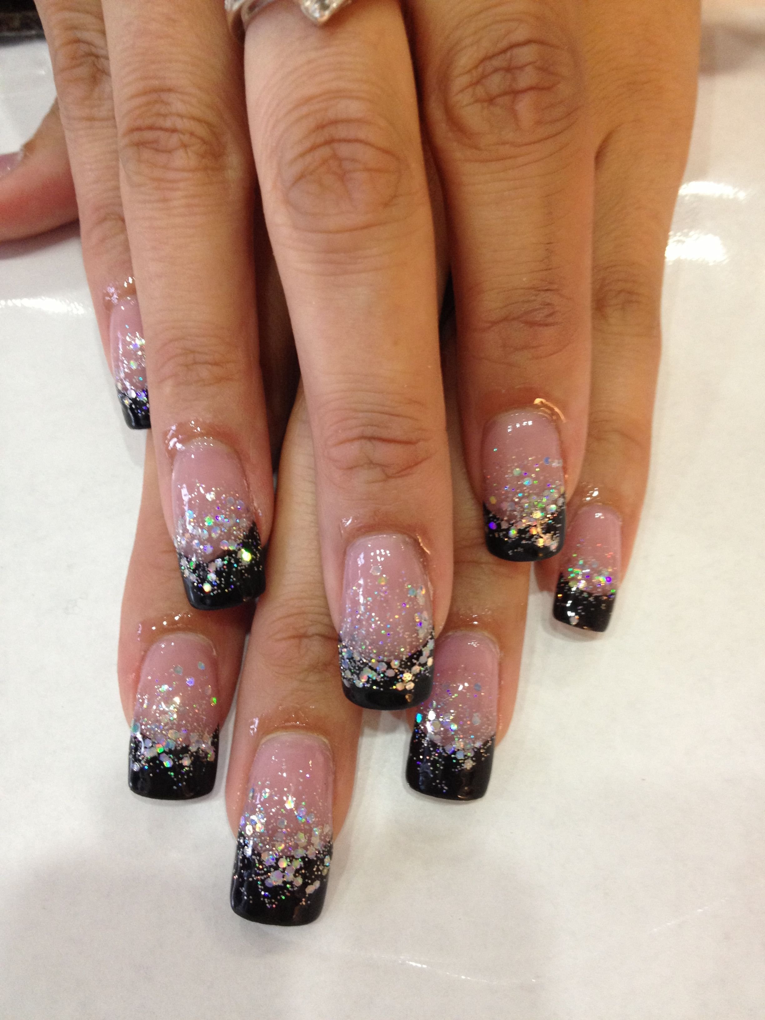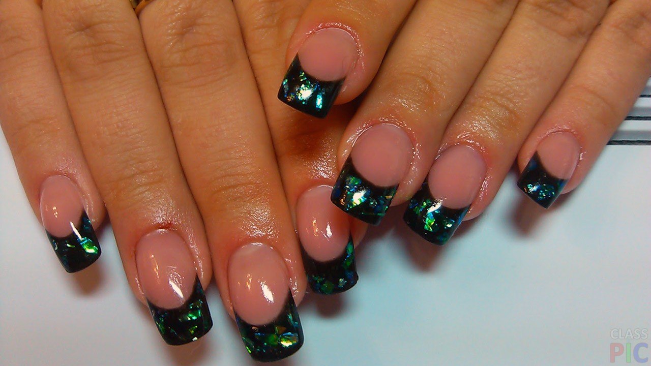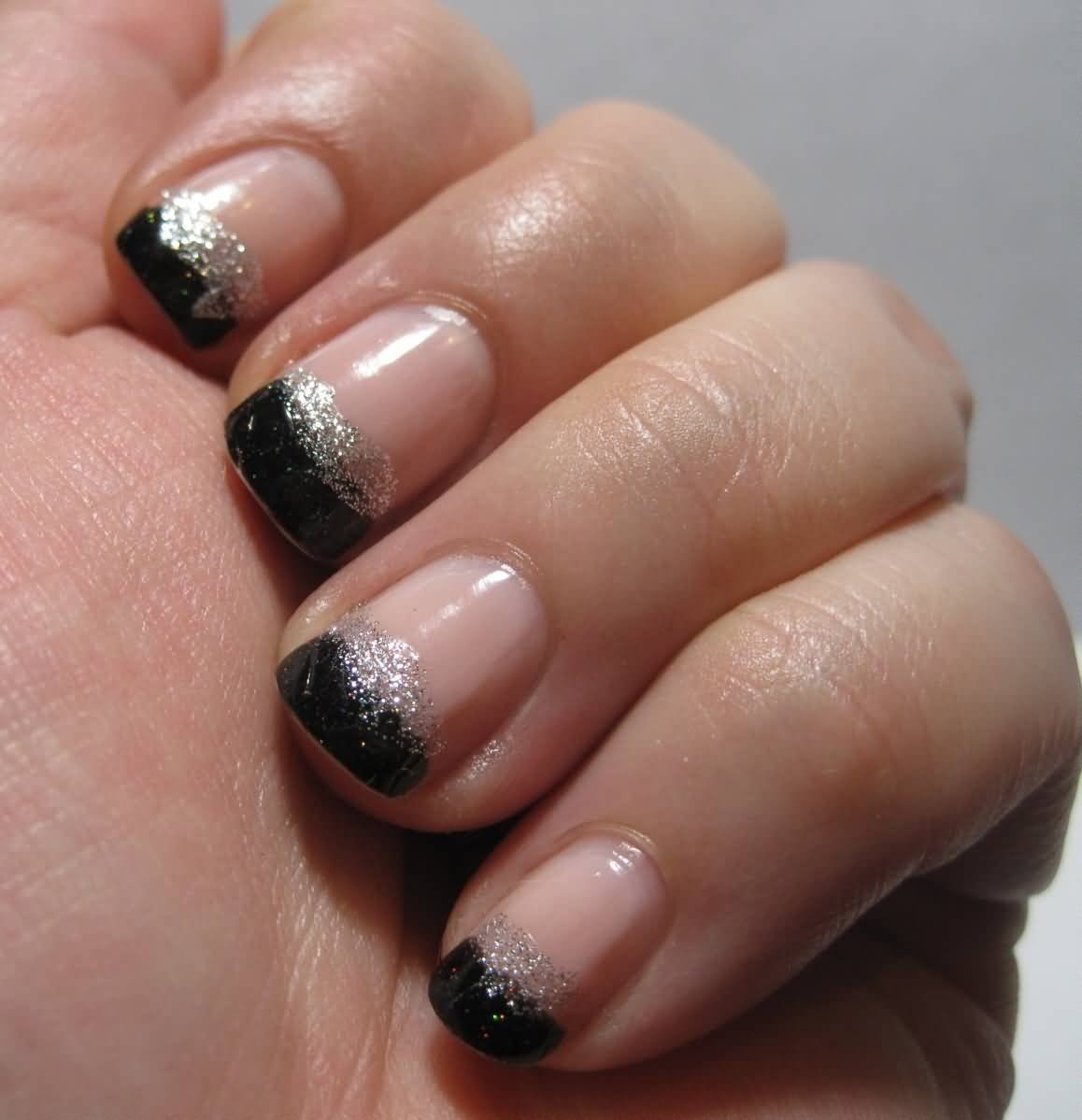 Черный френч с блестками на ногтях (60 фото)