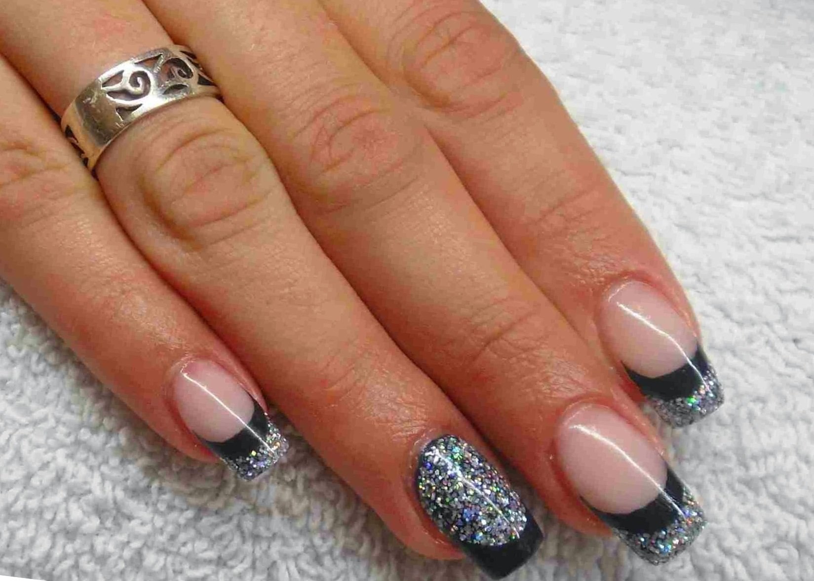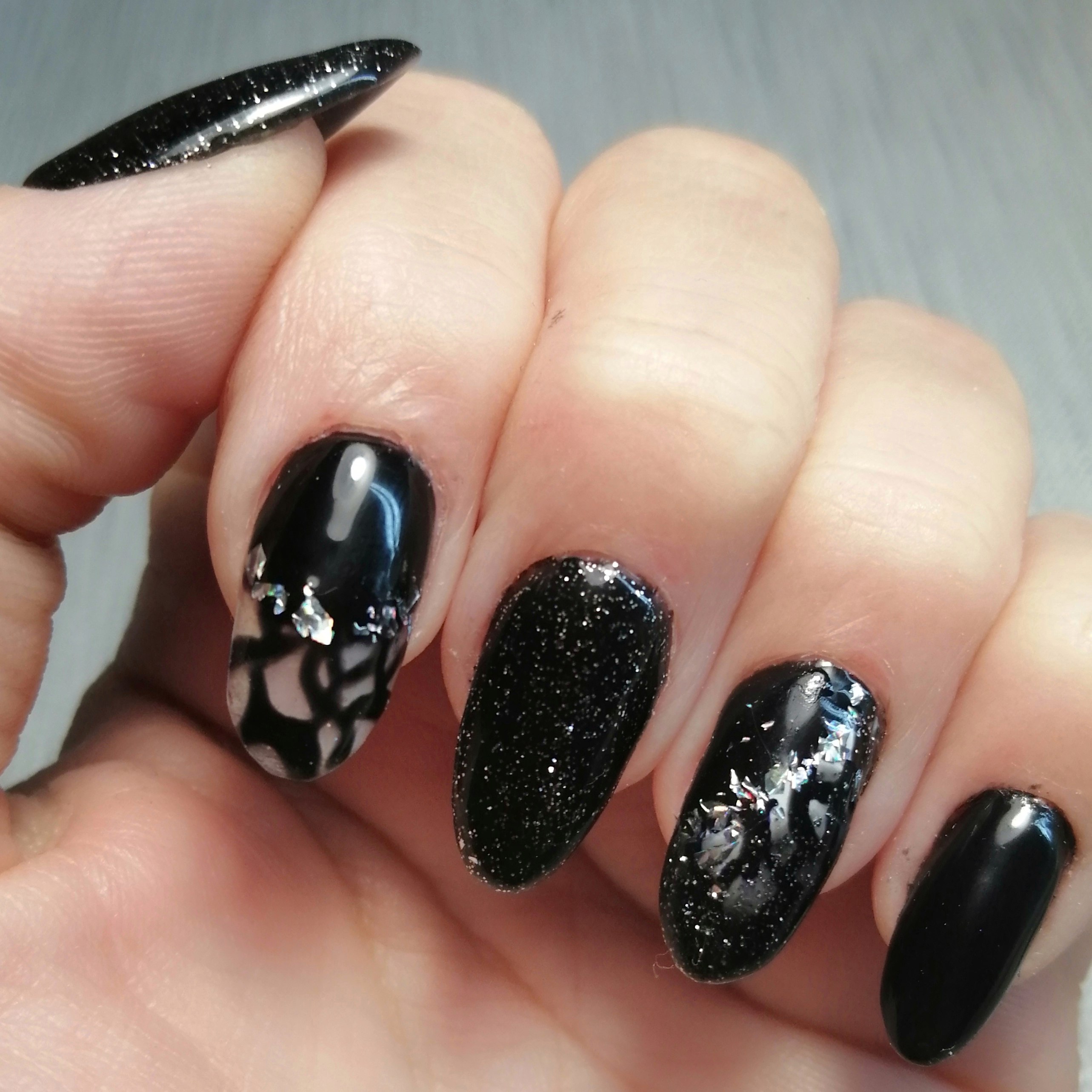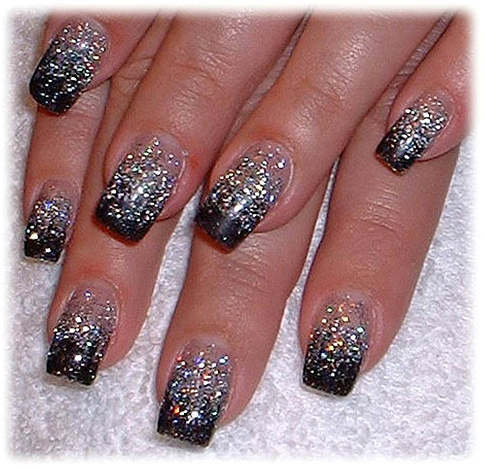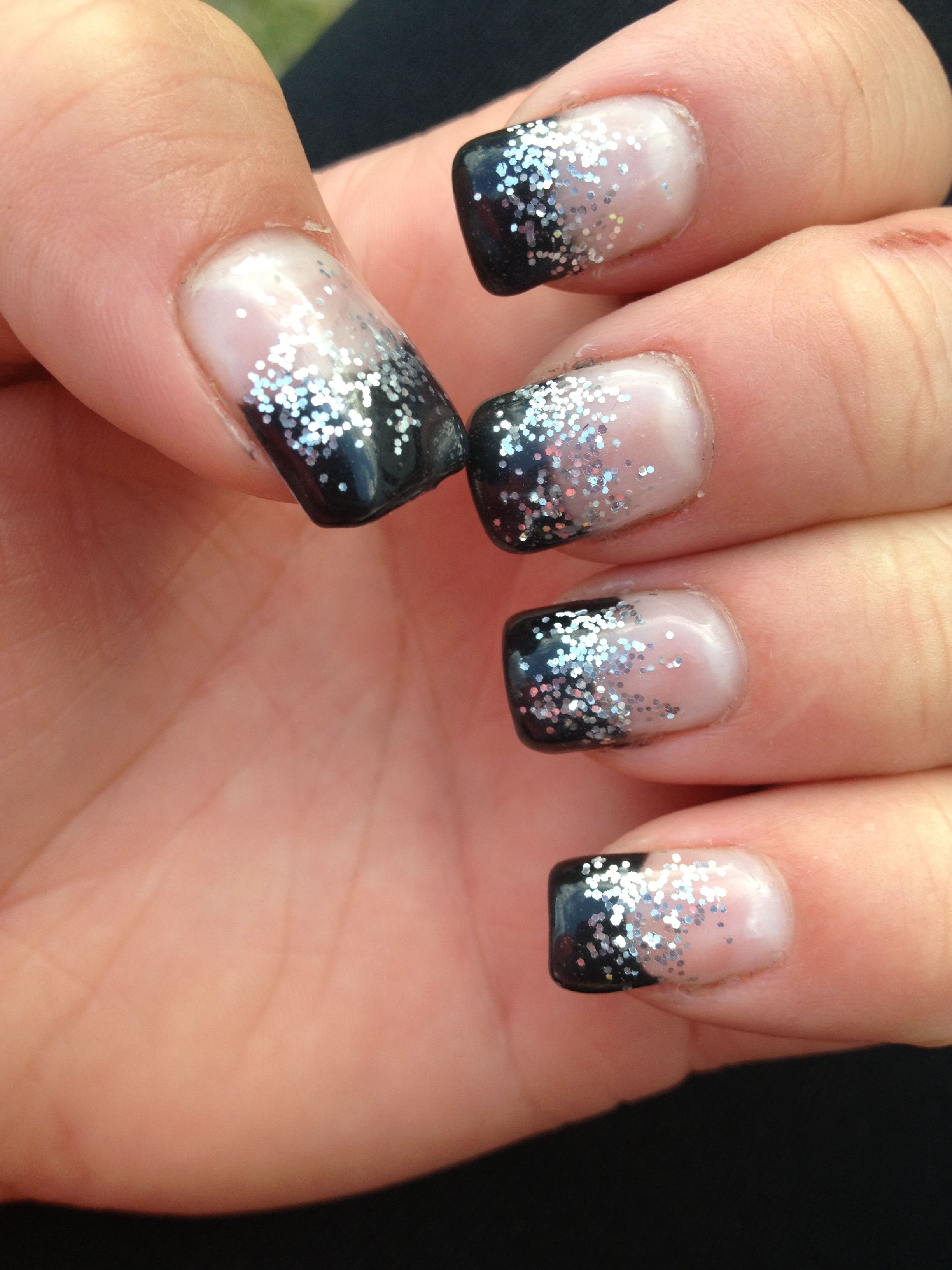 Черные ногти с серебряными блестками