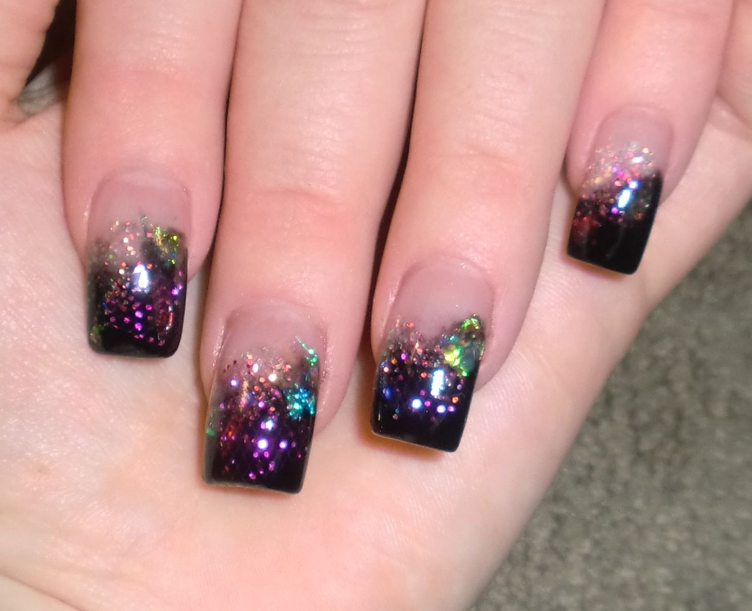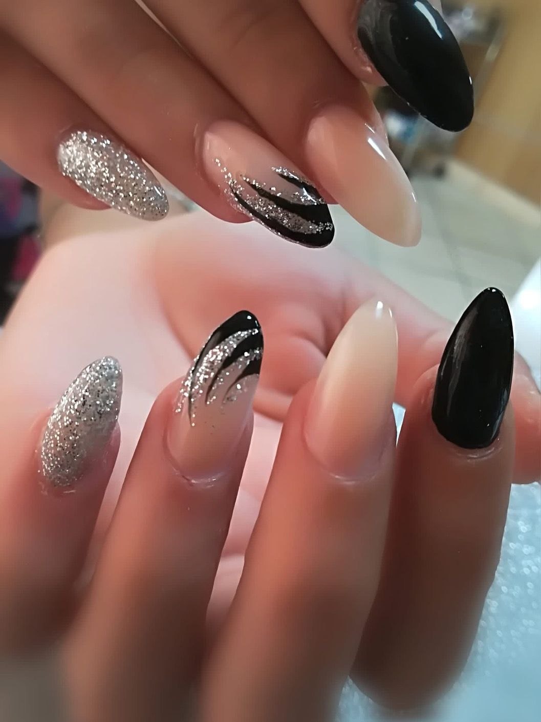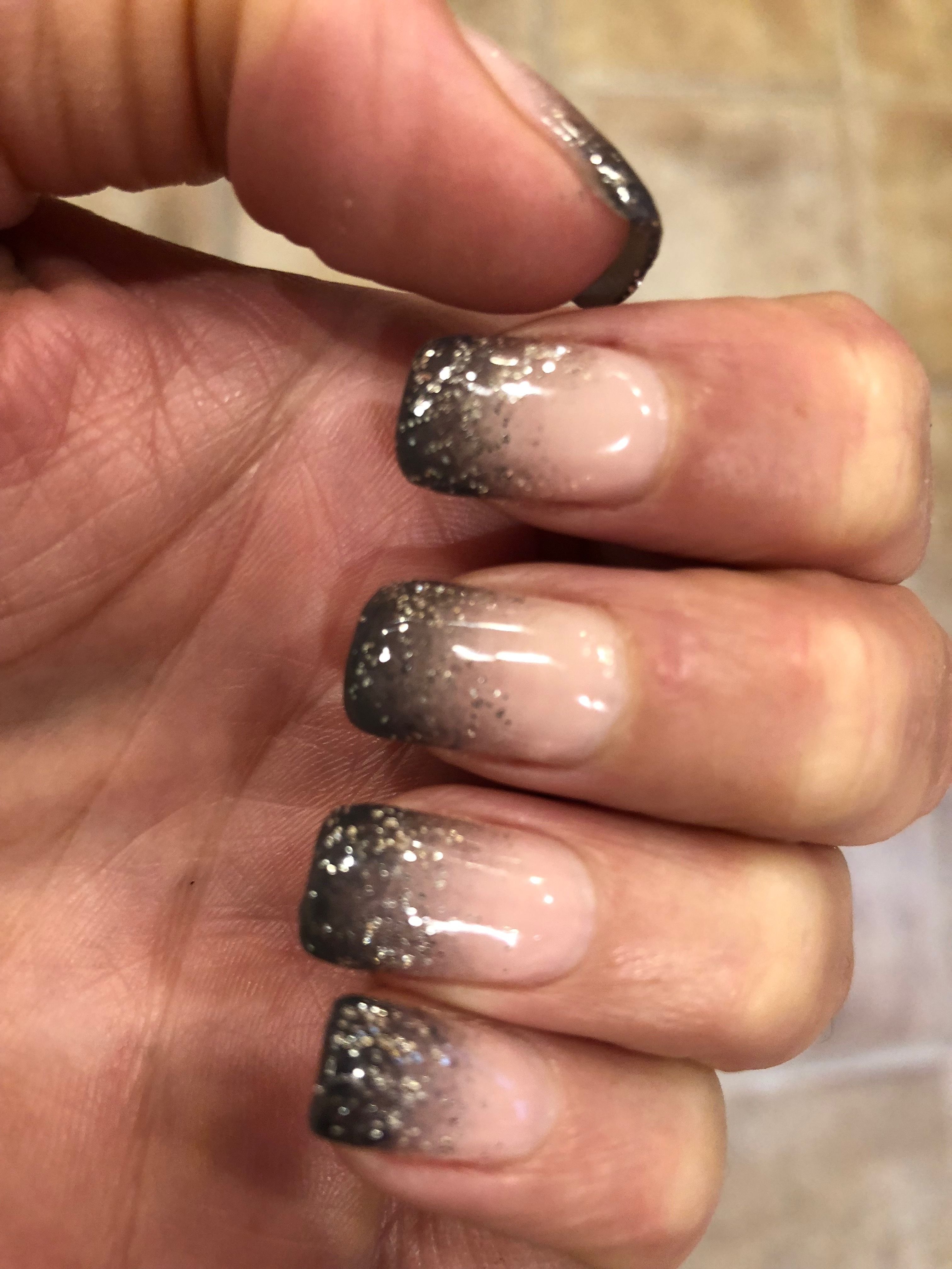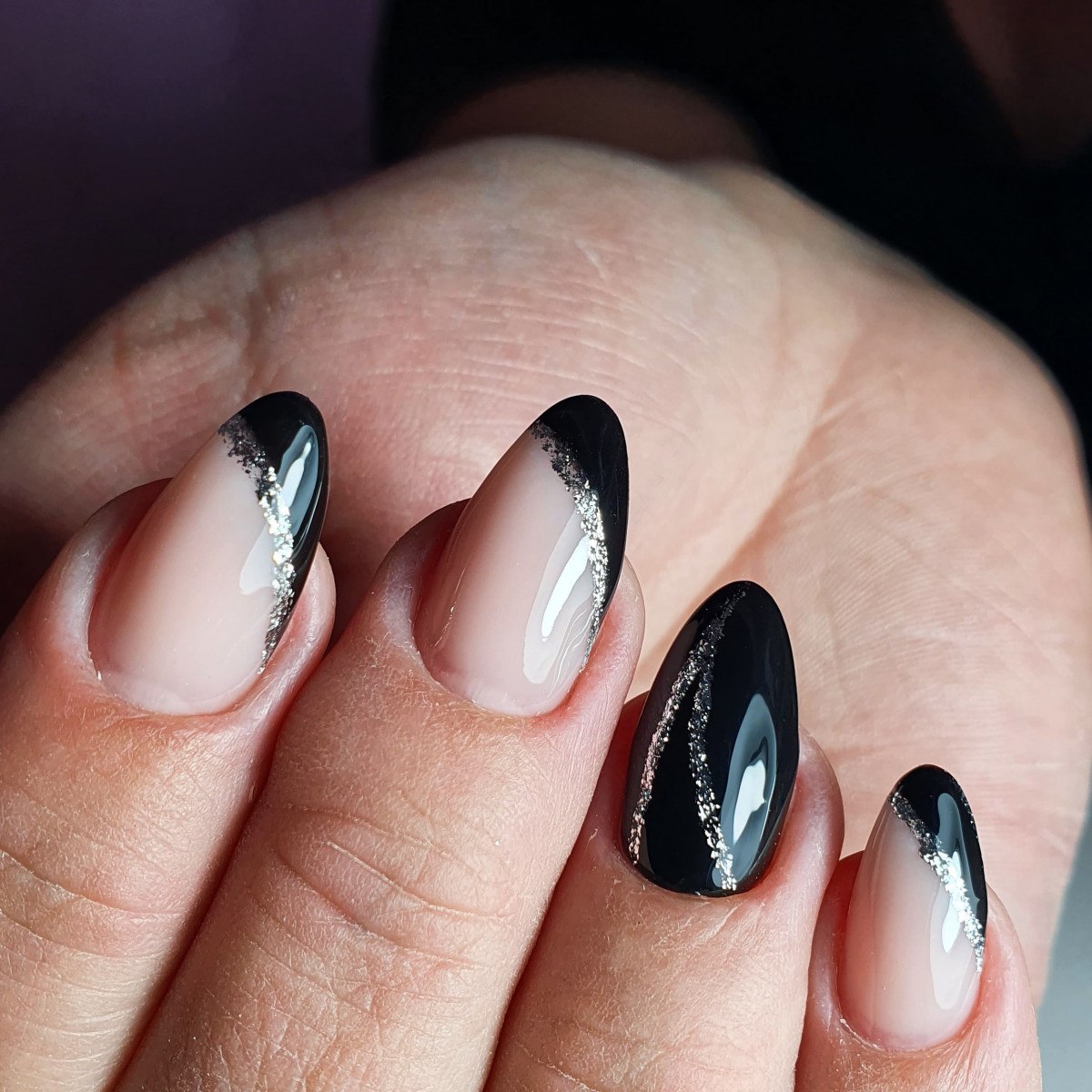 Черные ногти с серебряными блестками