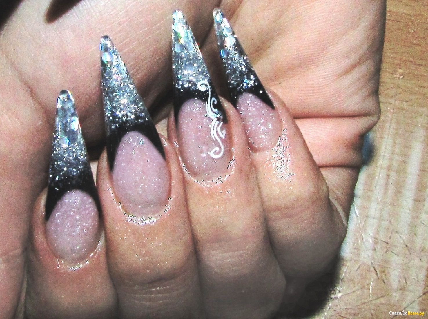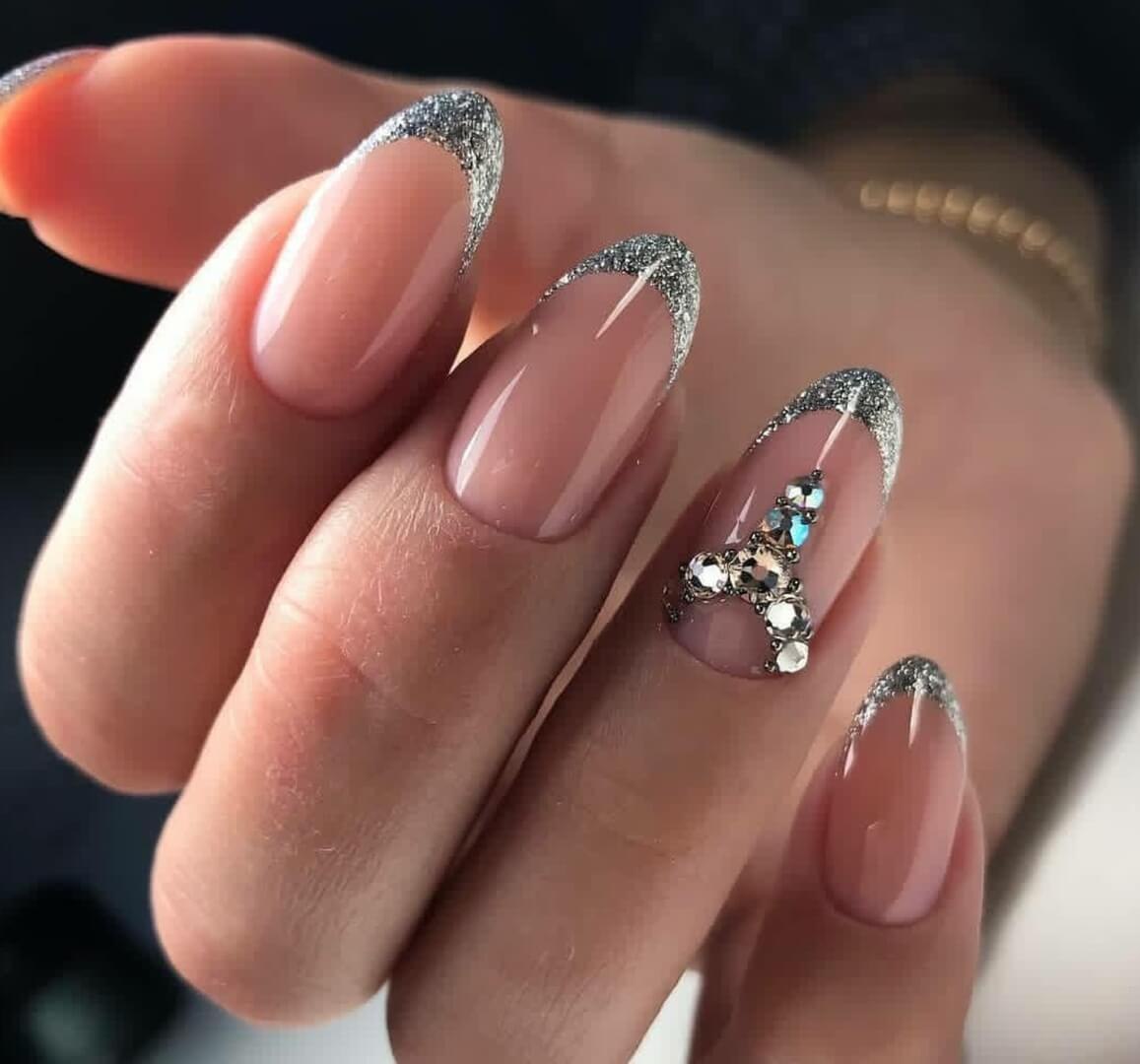 Френч на острые ногти с блестками