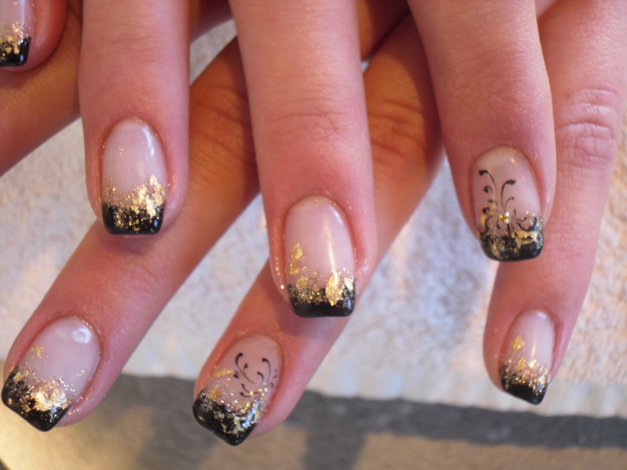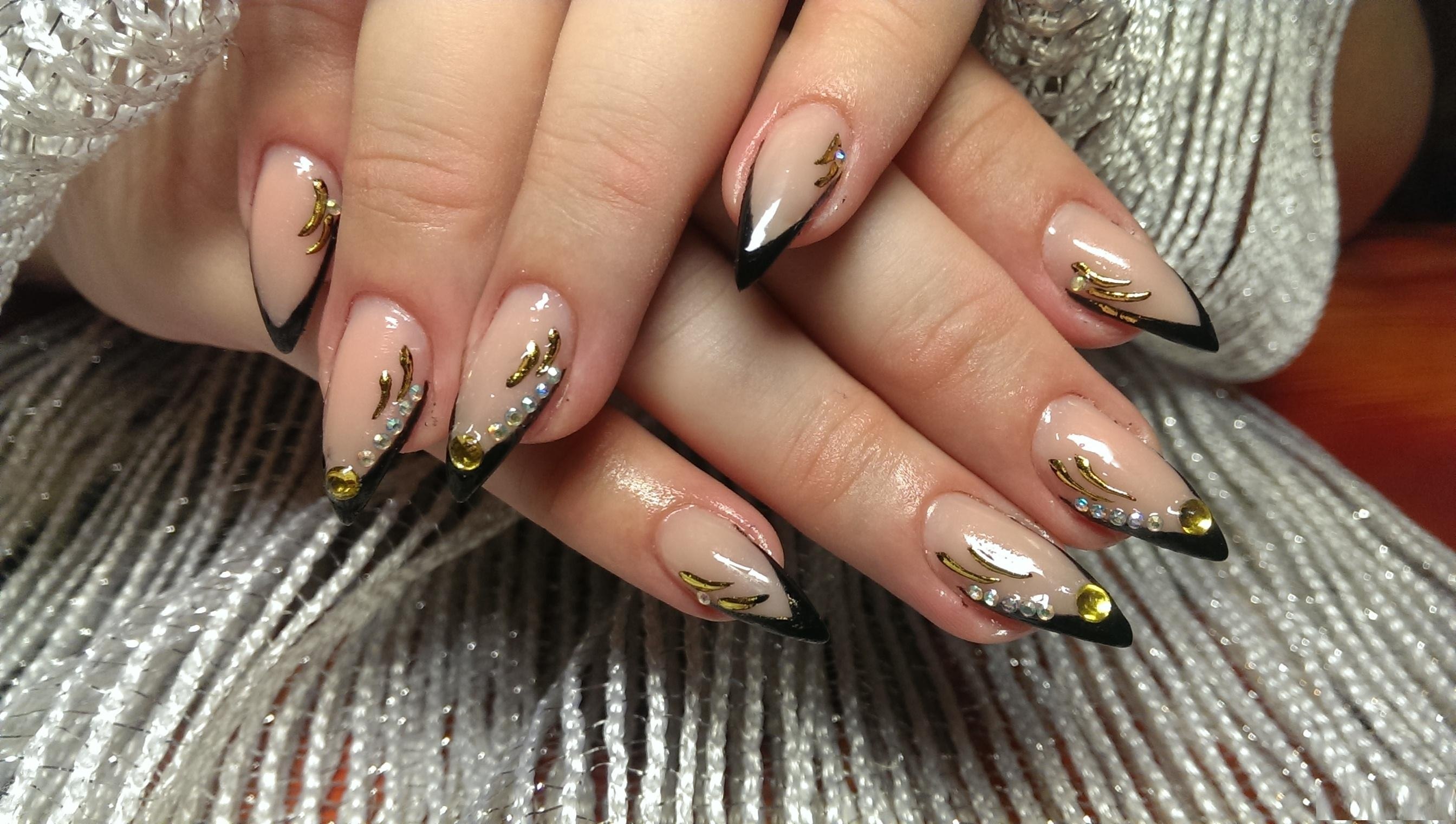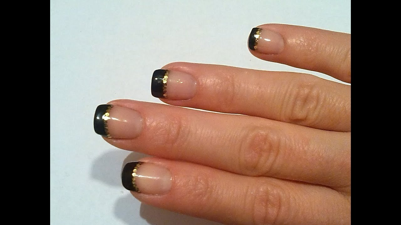 Ногти френчем черныц с золотлм