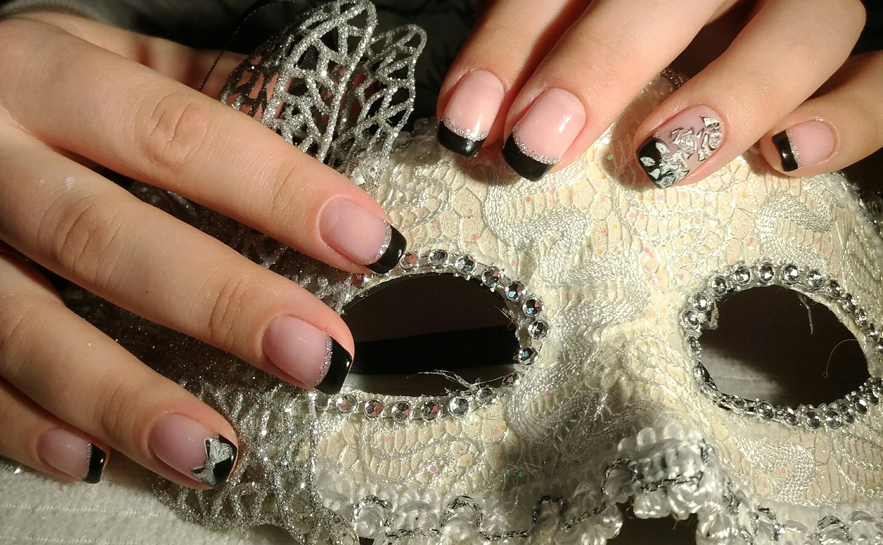 Маникюр френч черный с серебром