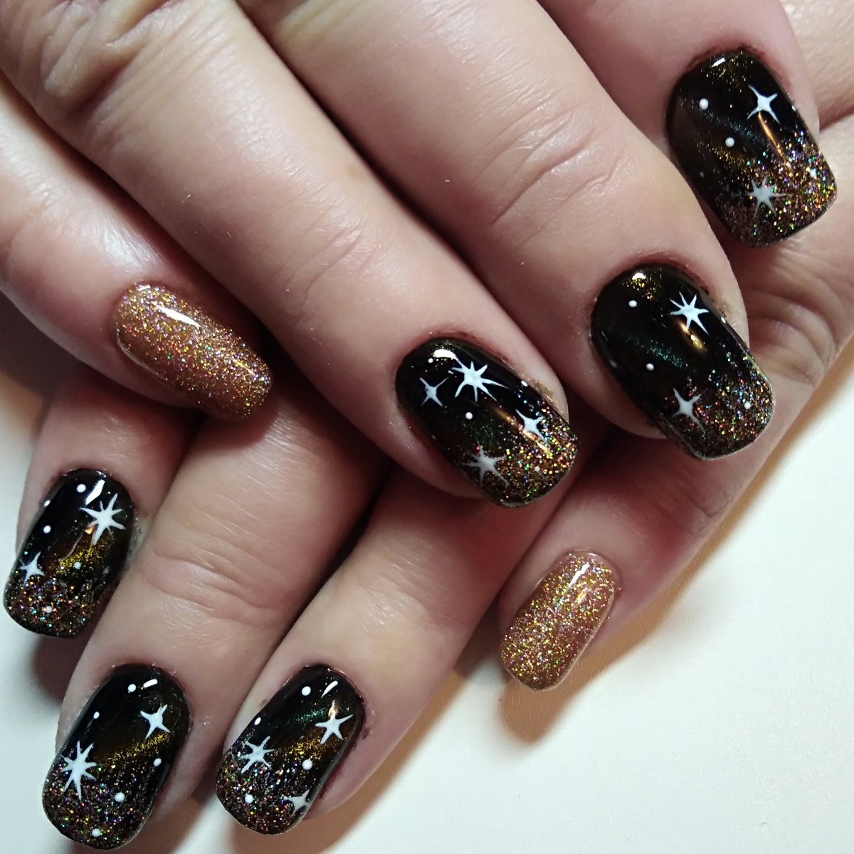 Новогодний маникюр с черным лаком