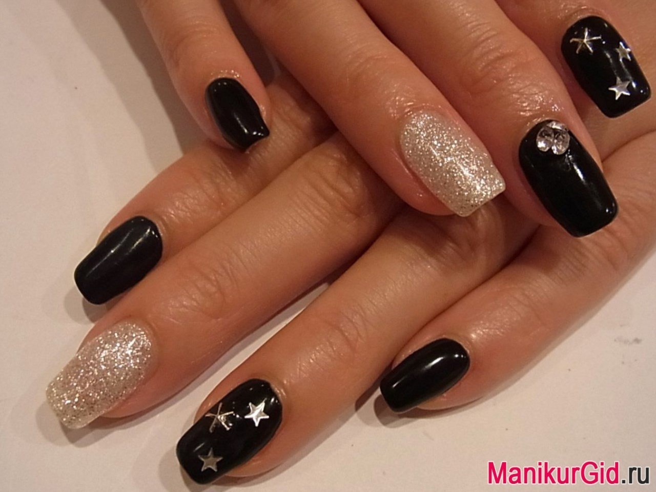 Маникюр черный с блестками