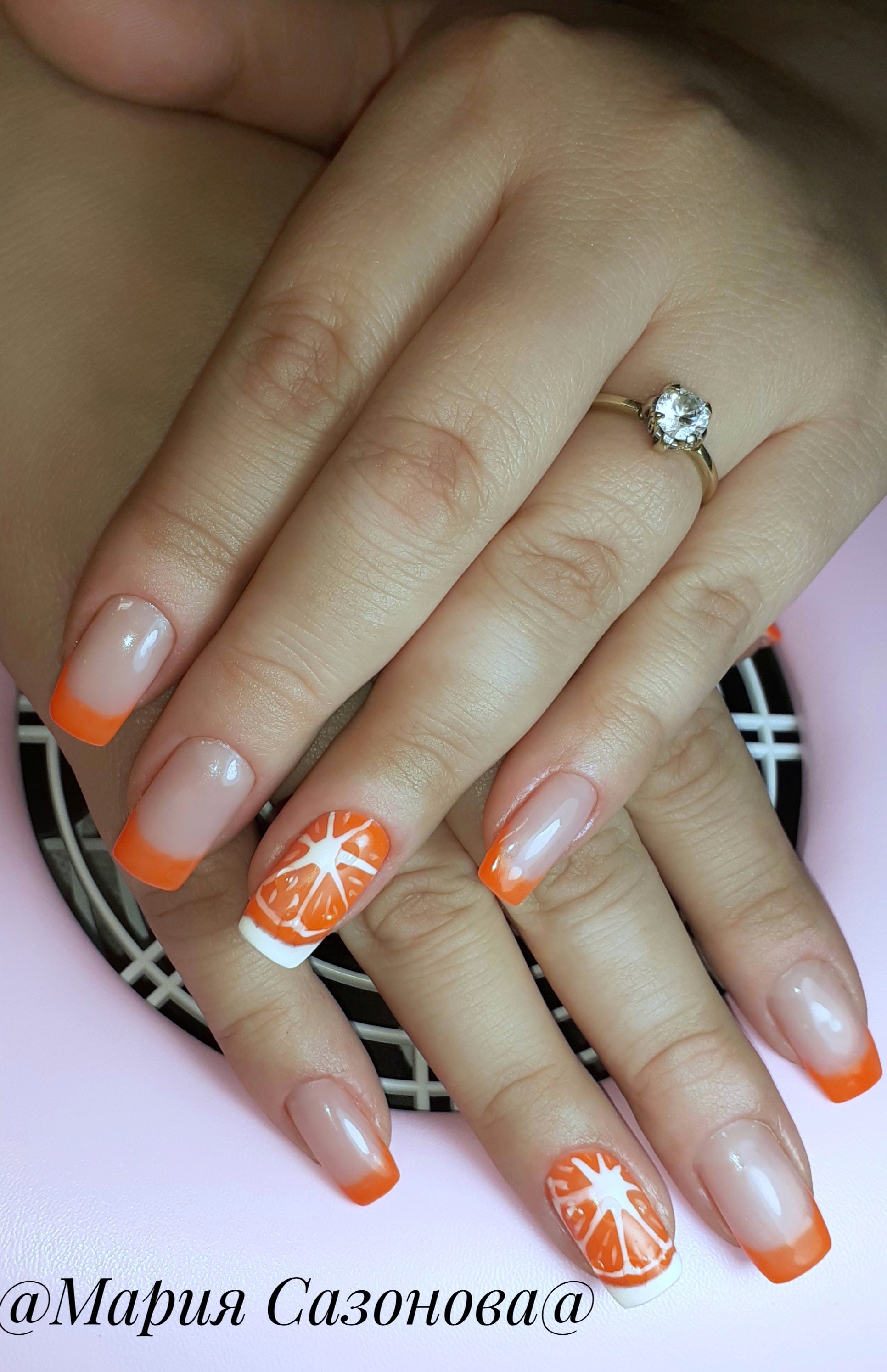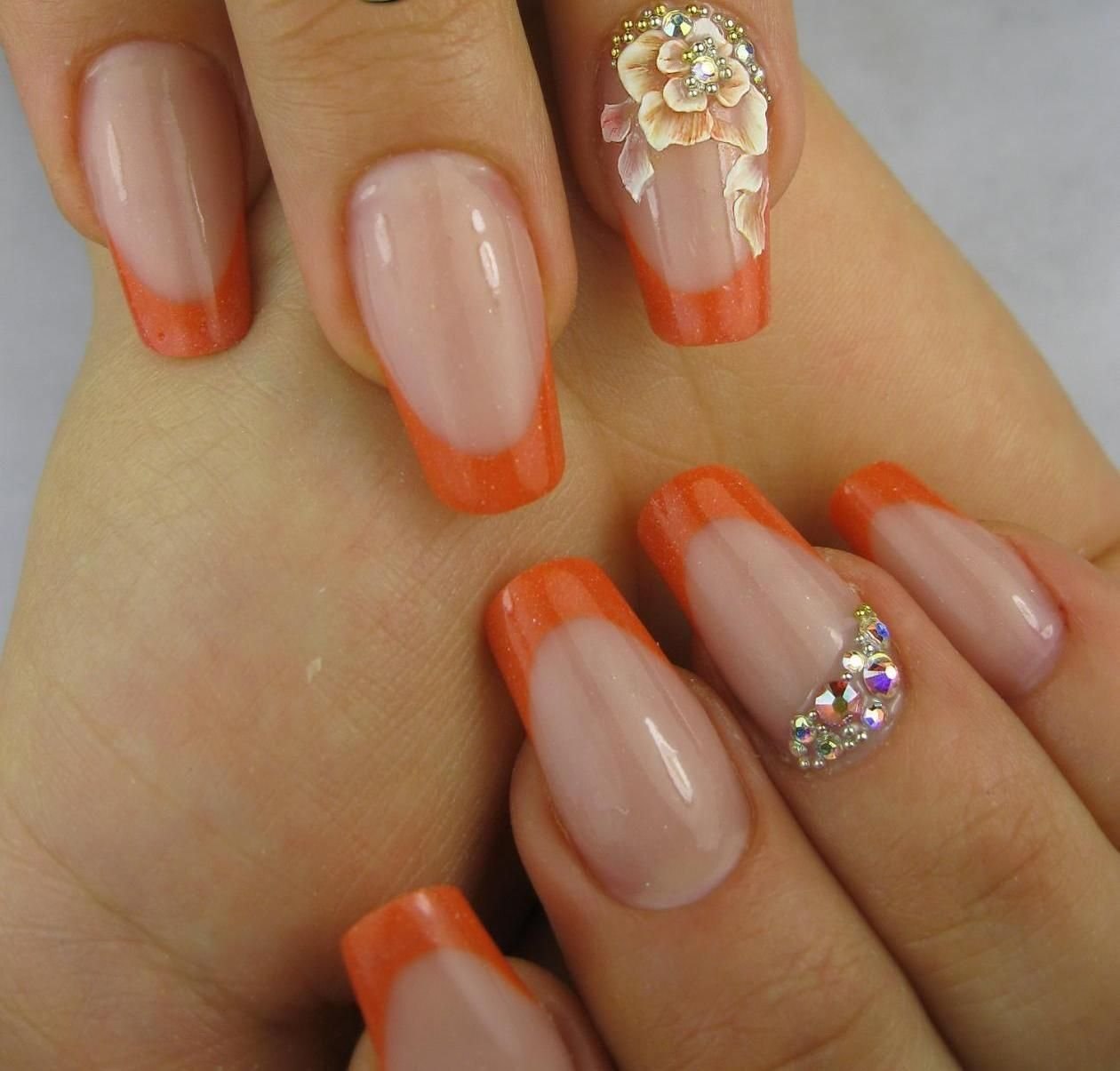 Французский маникюр оранжевый