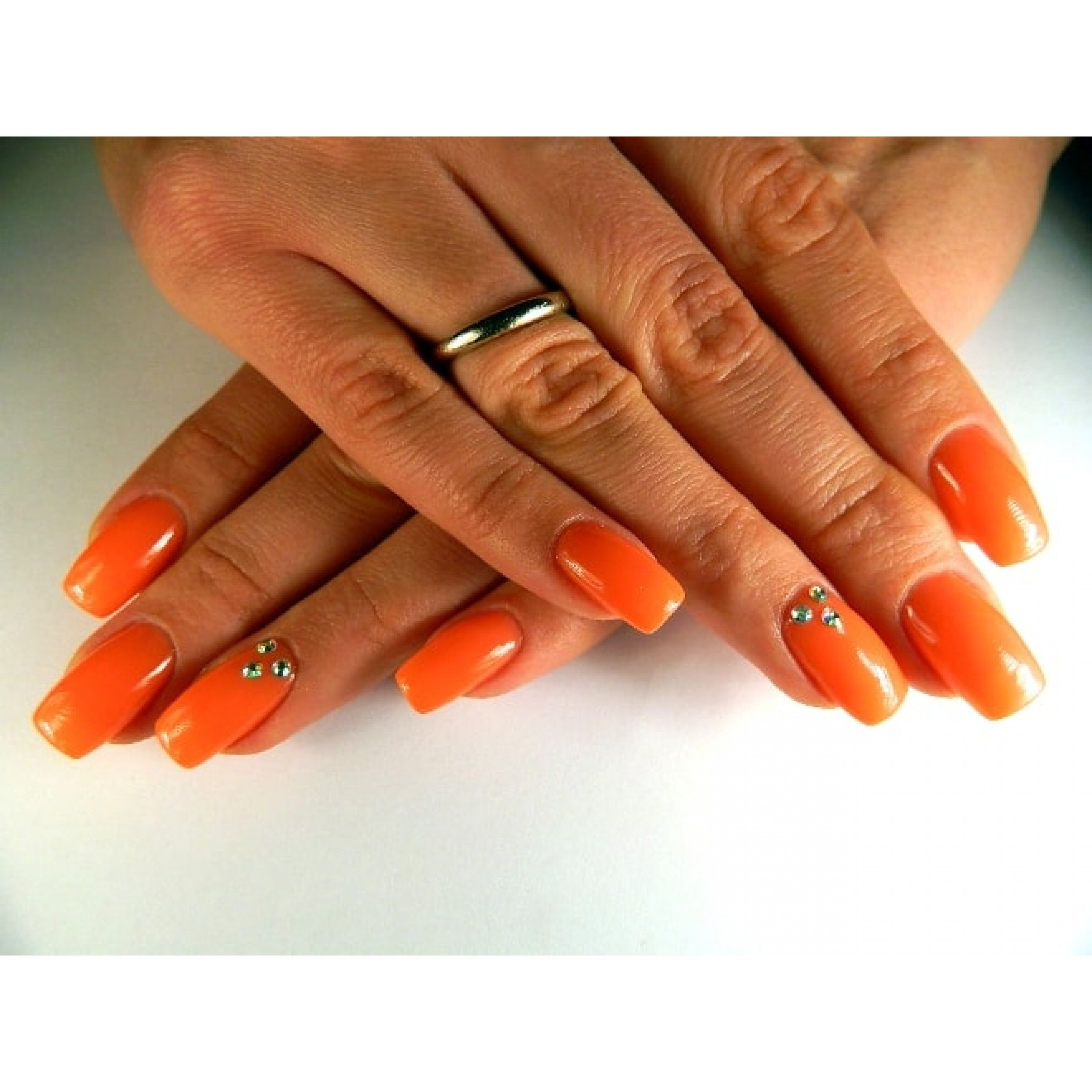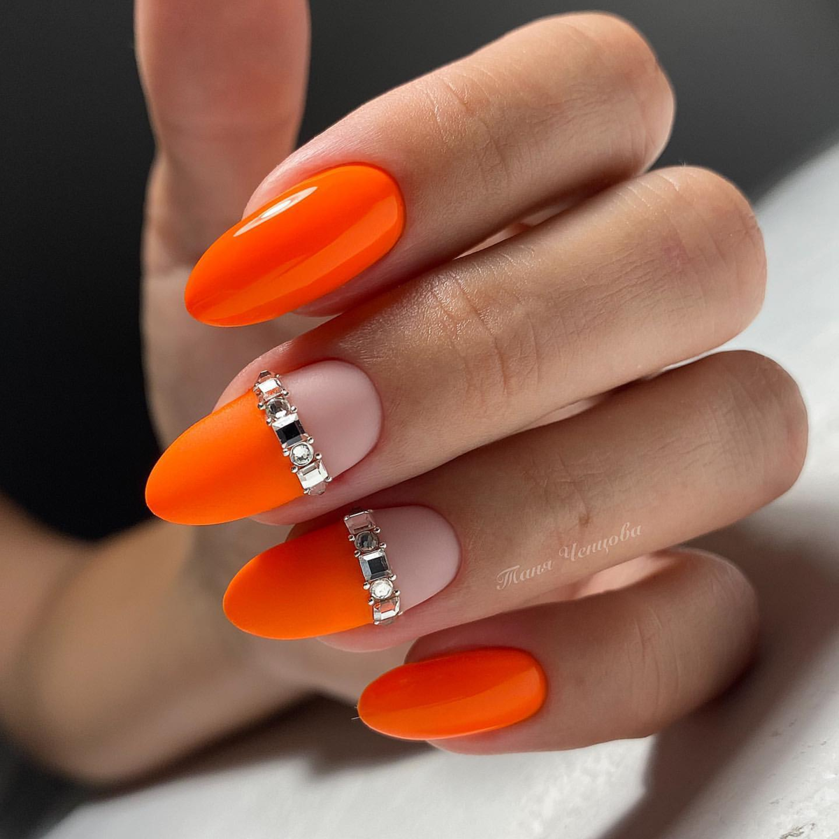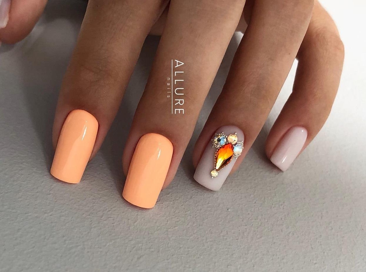 Оранжевый маникюр со стразами