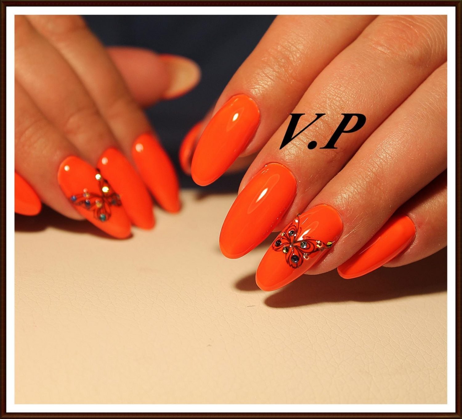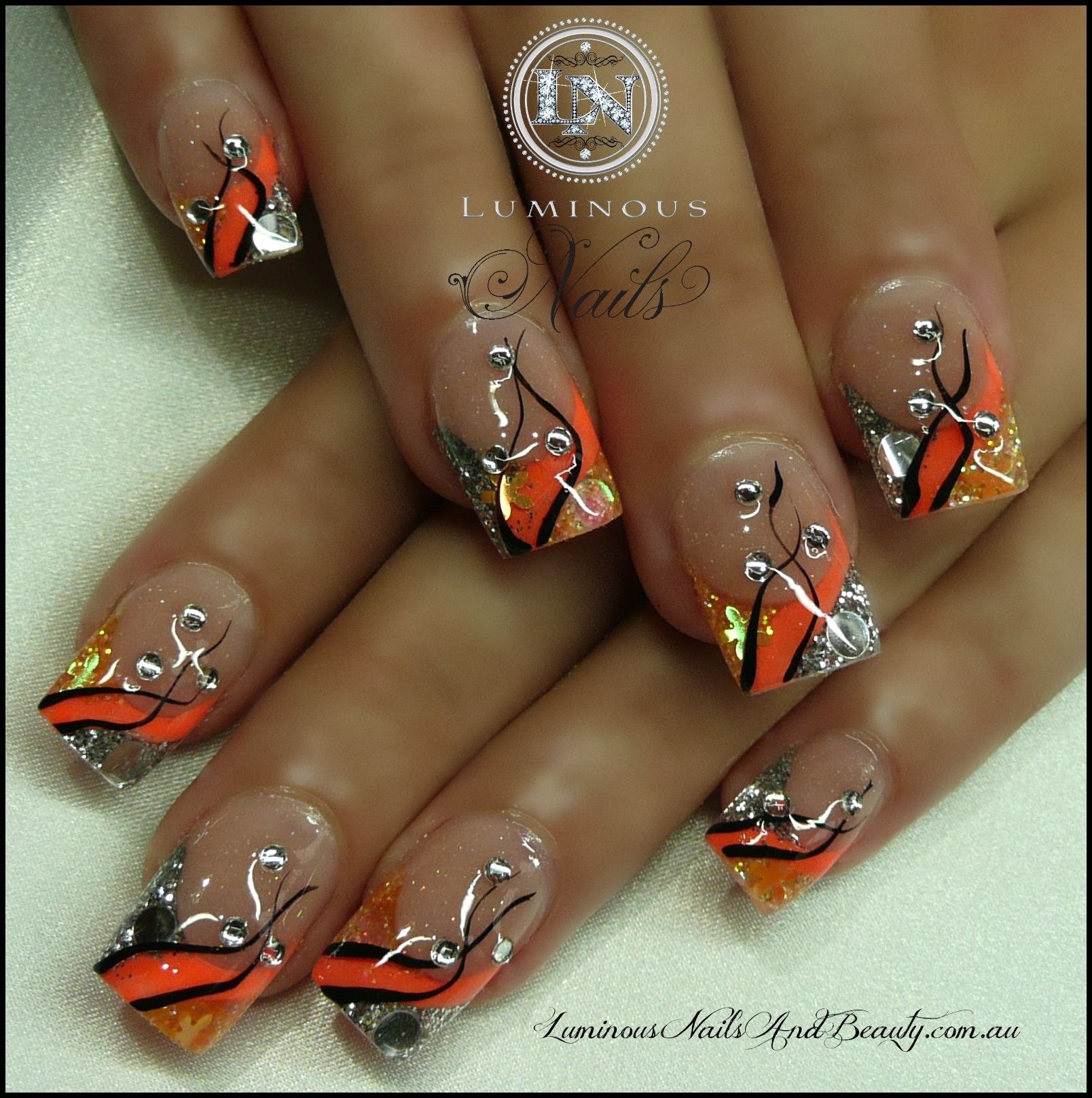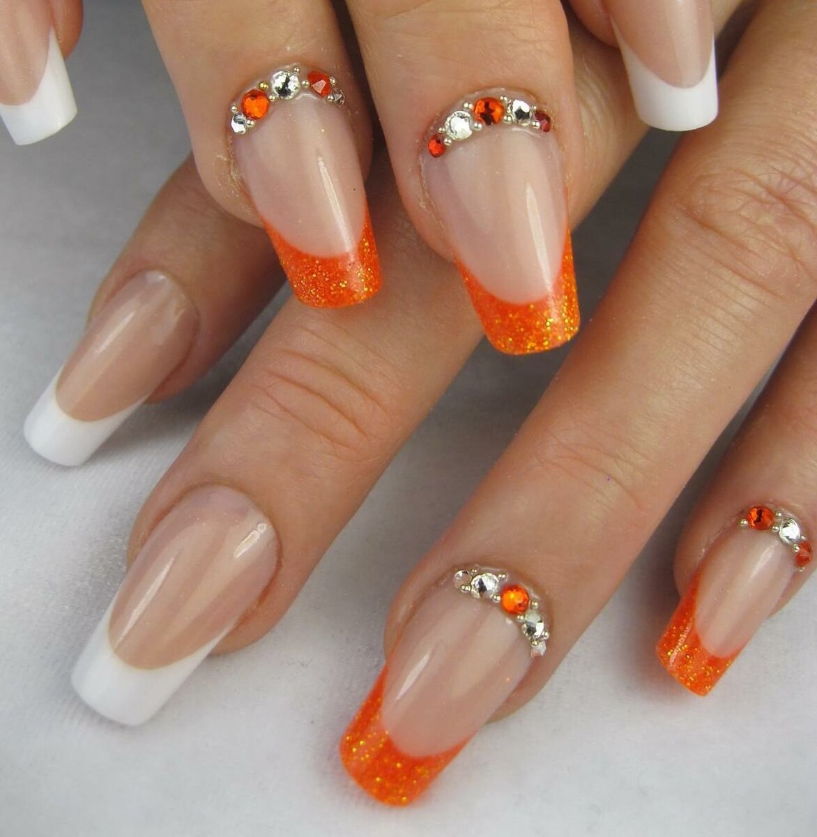 Оранжевый маникюр со стразами