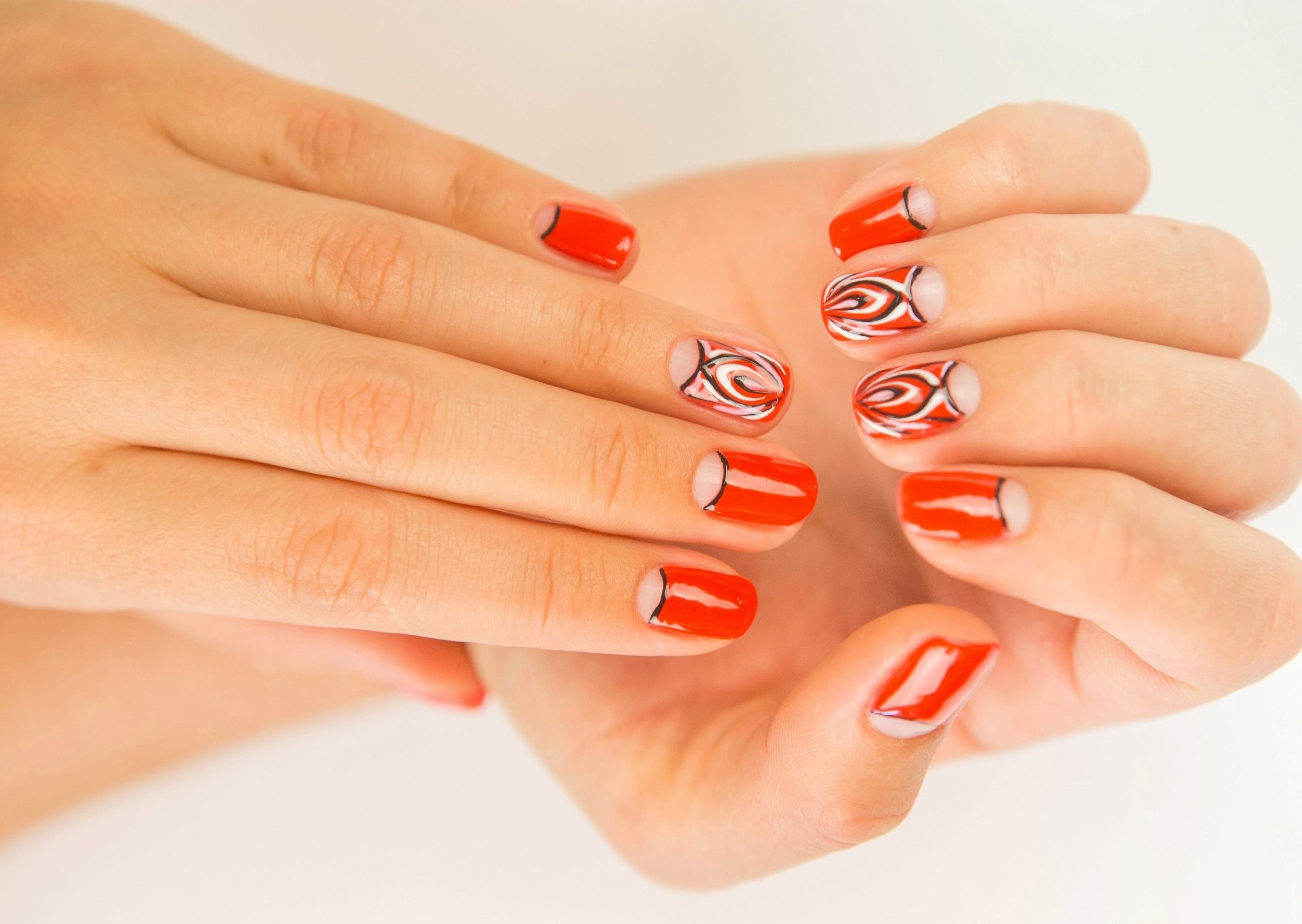 Маникюр красный с желтым
