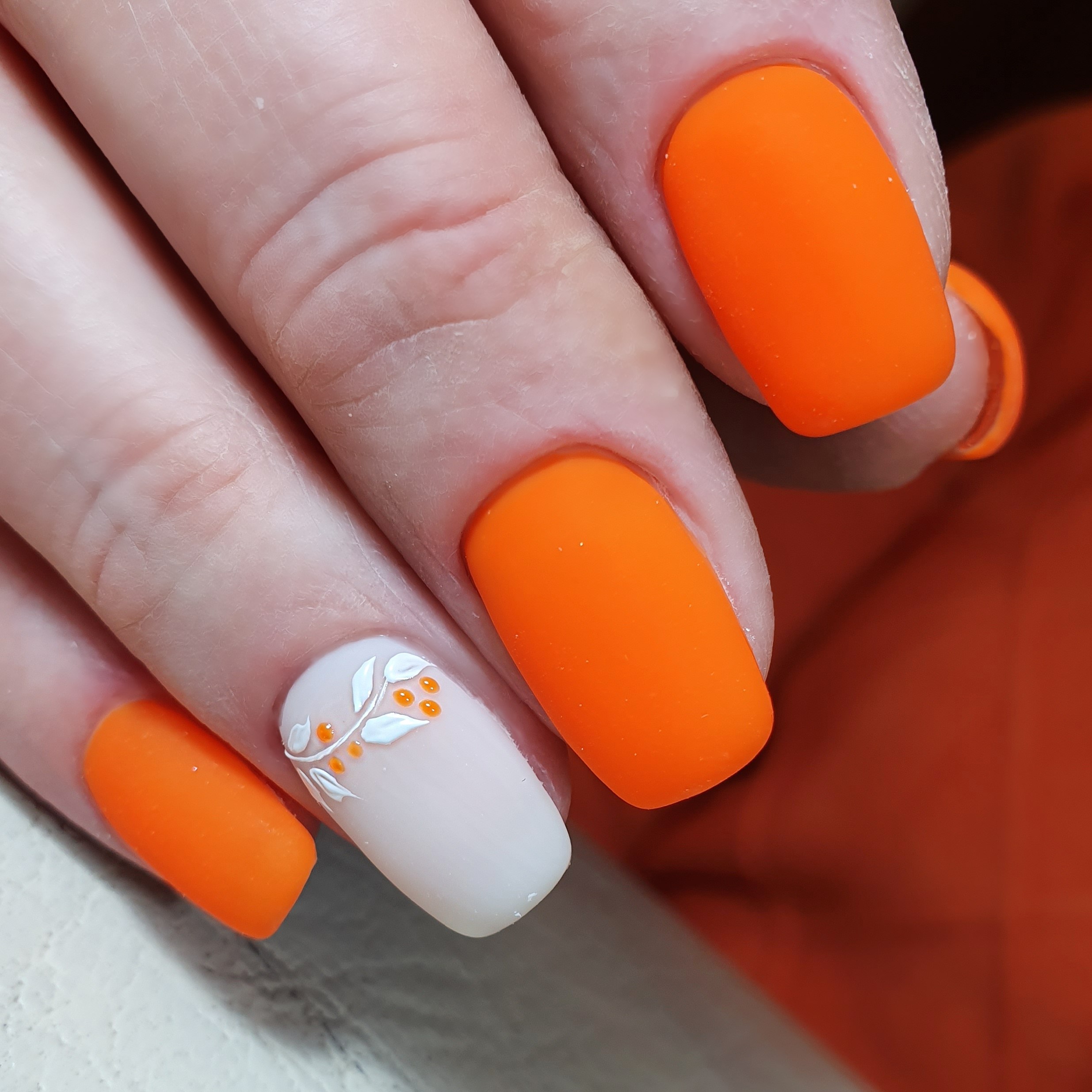 Маникюр оранжевый с молочным