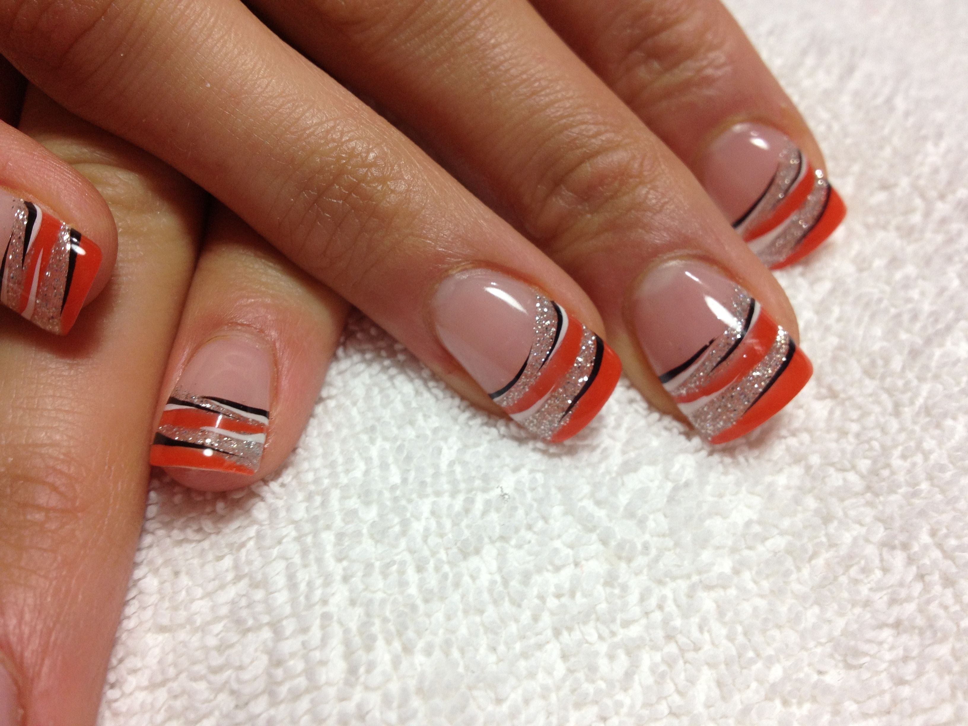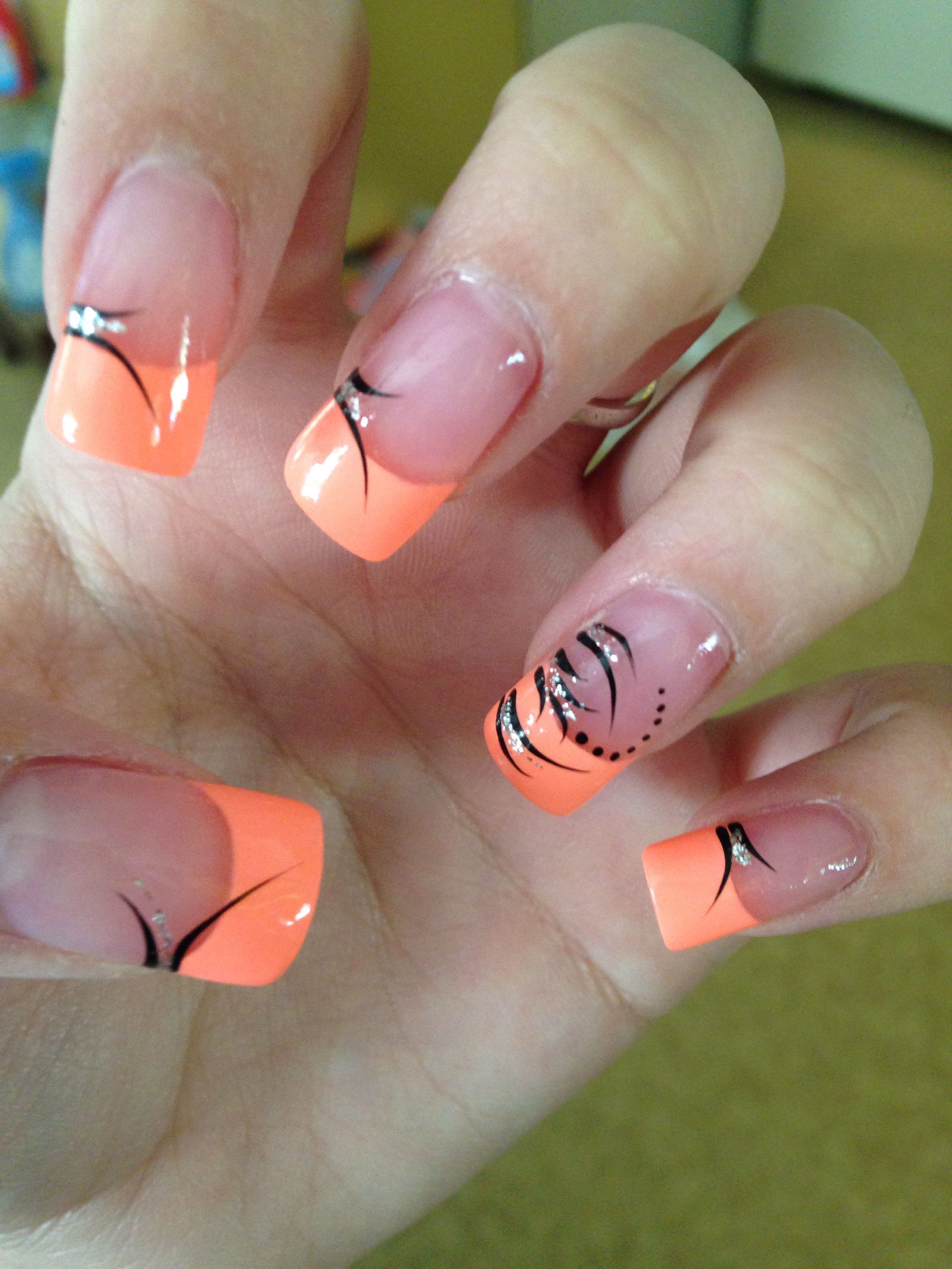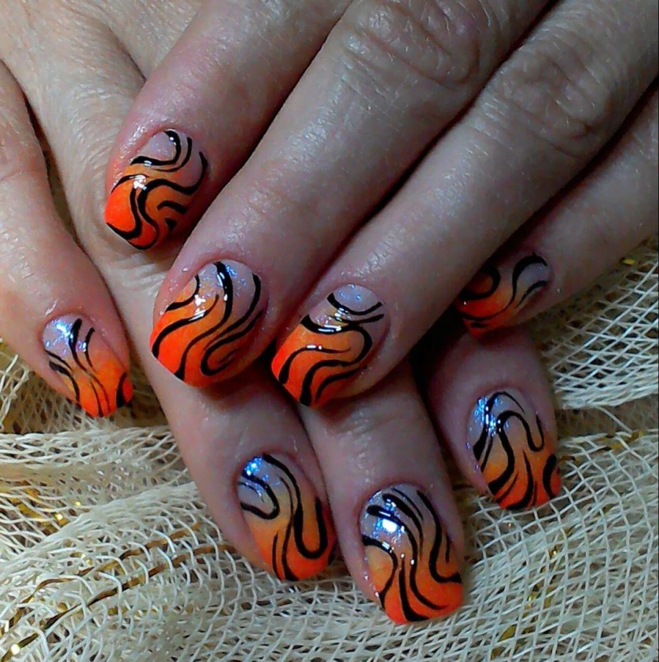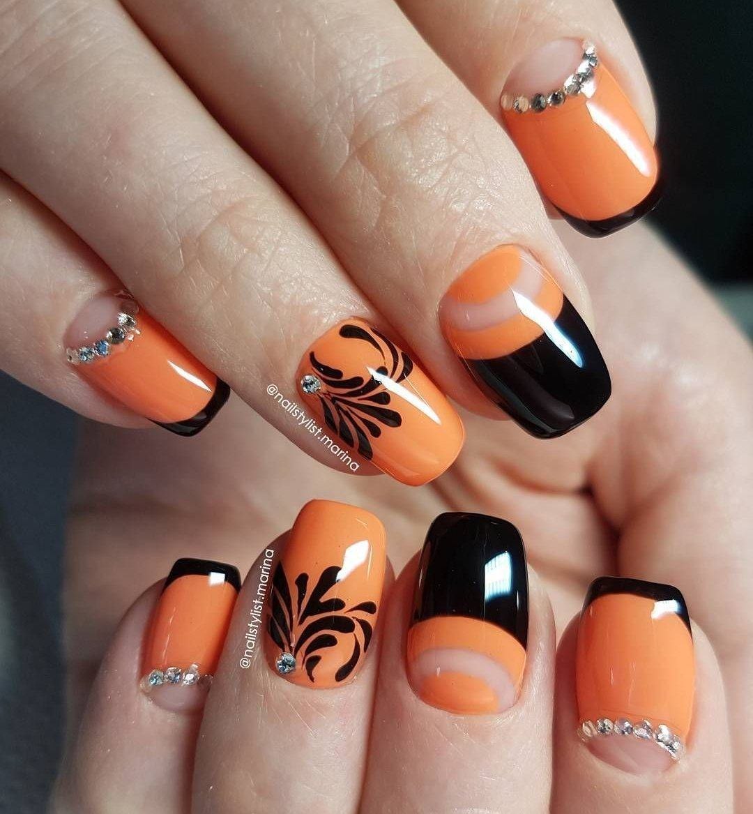 Маникюр оранжевый с черным френч