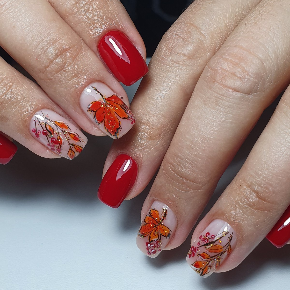 Красный осенний маникюр