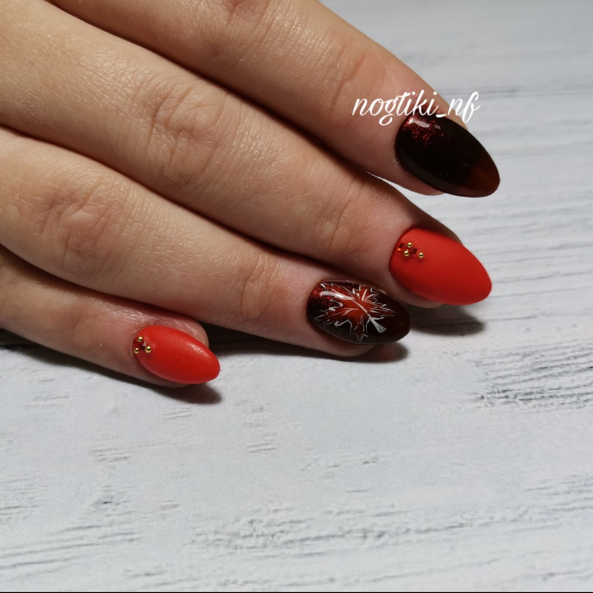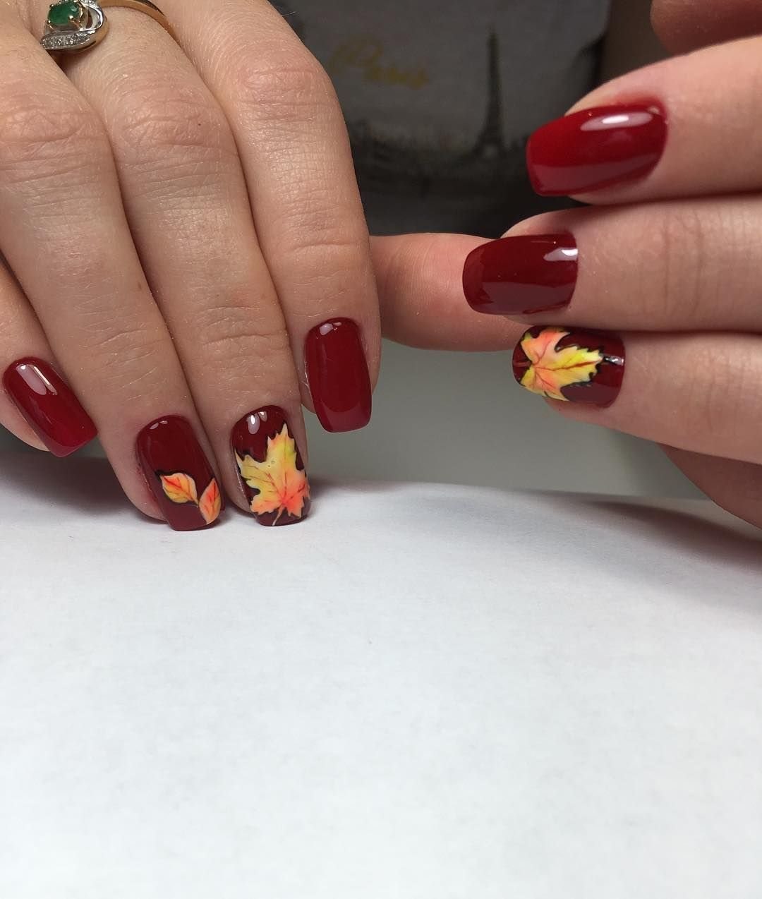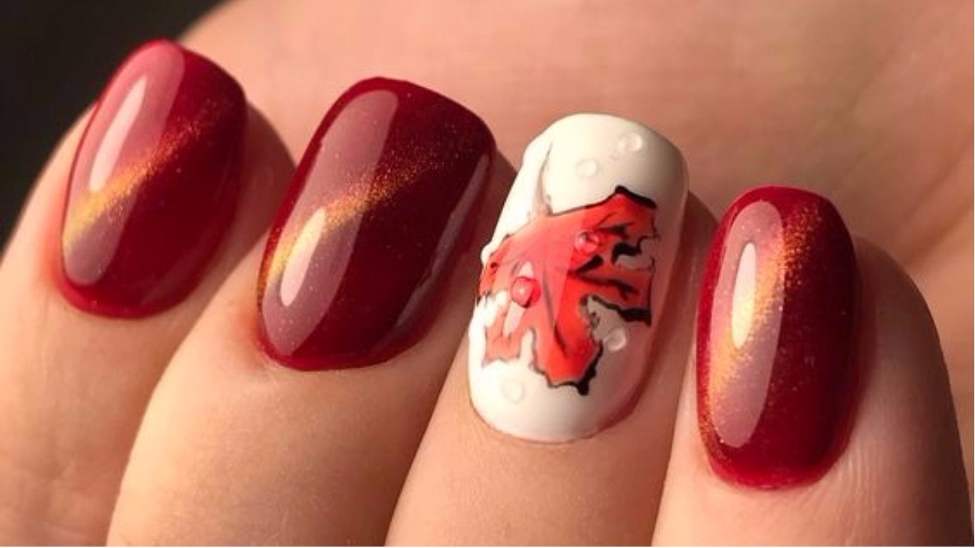 Осенний маникюр красный кленовые листья