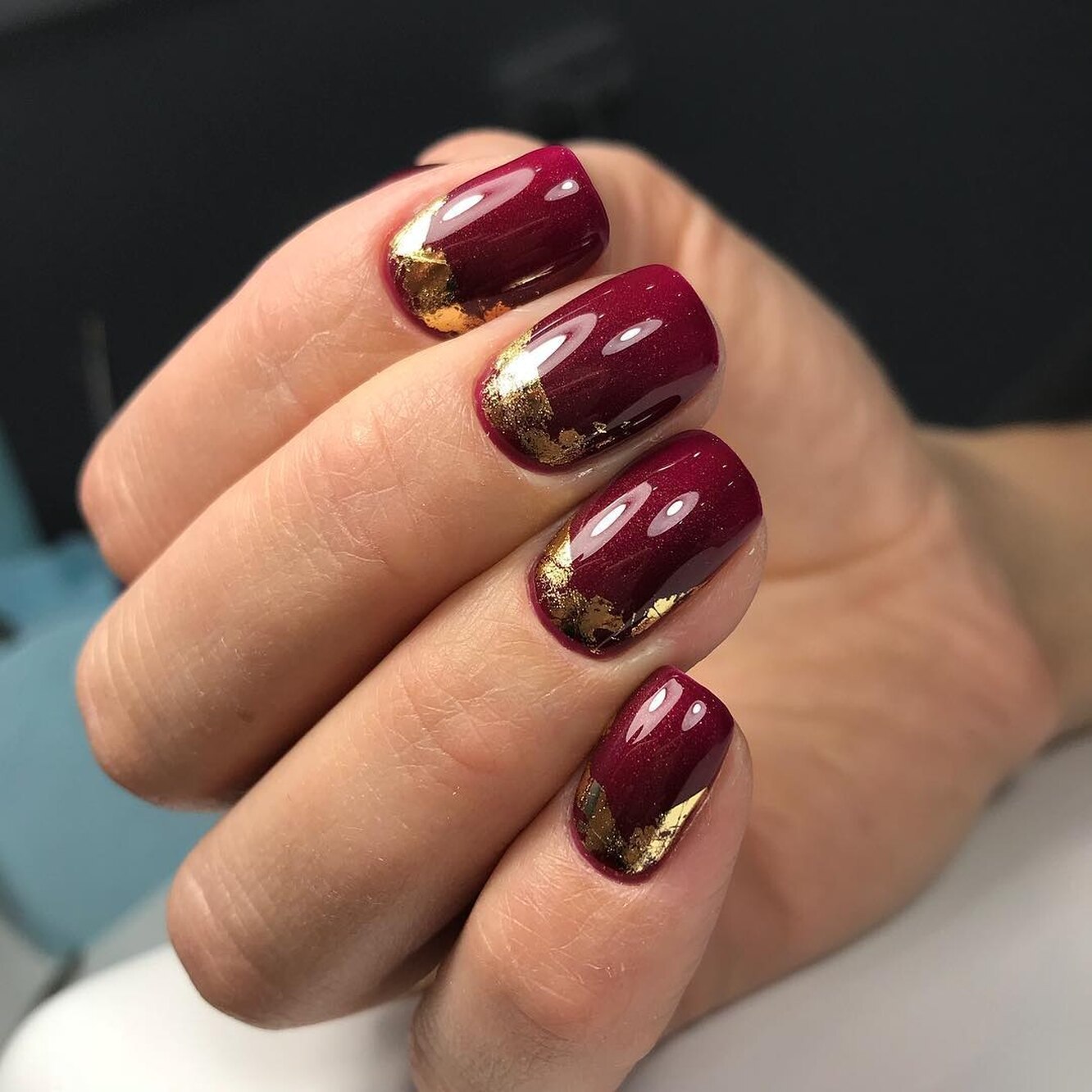 Бордовый маникюр с фольгой