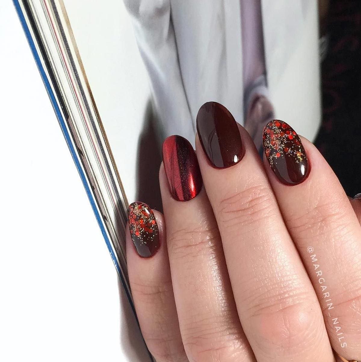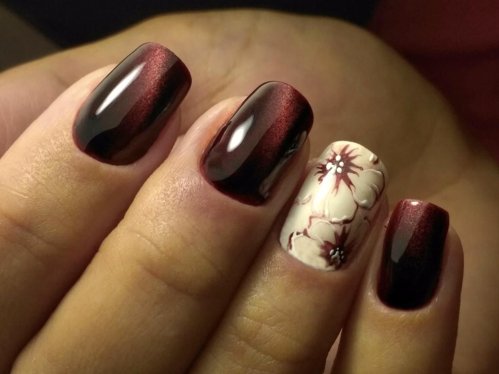 Осенний маникюр бордового цвета