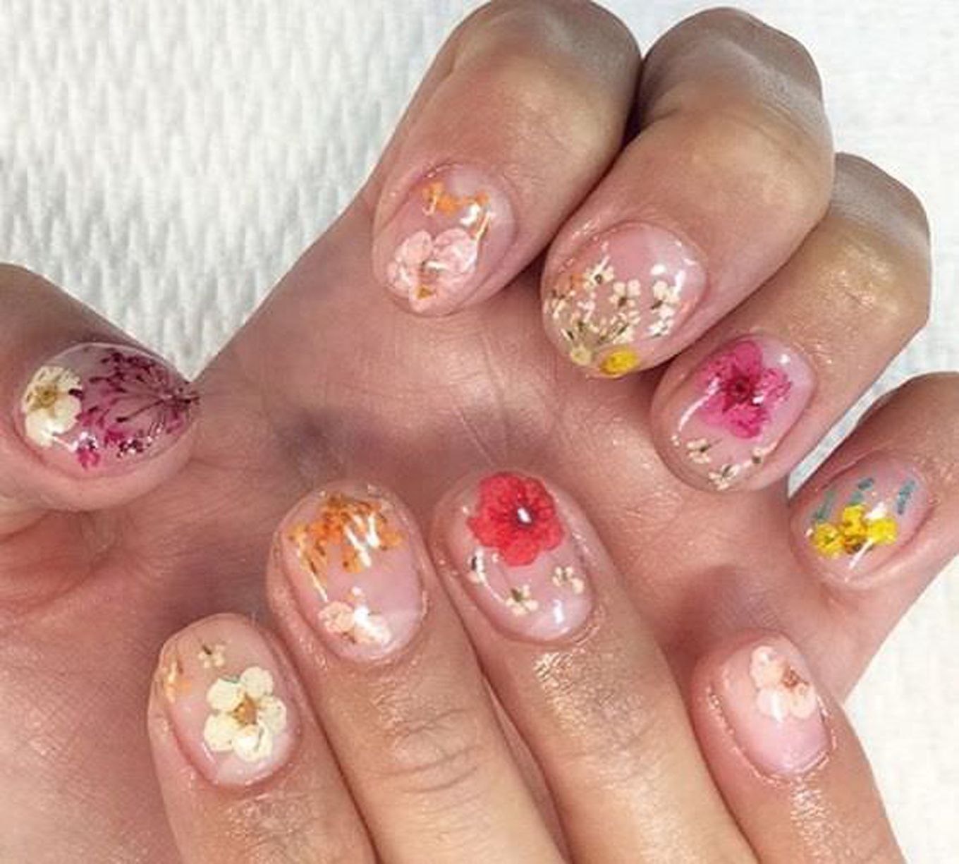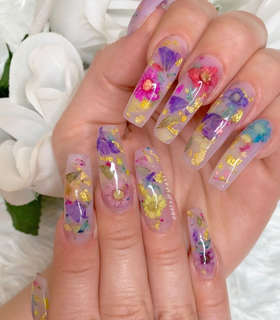 Прозрачные ногти с цветочками