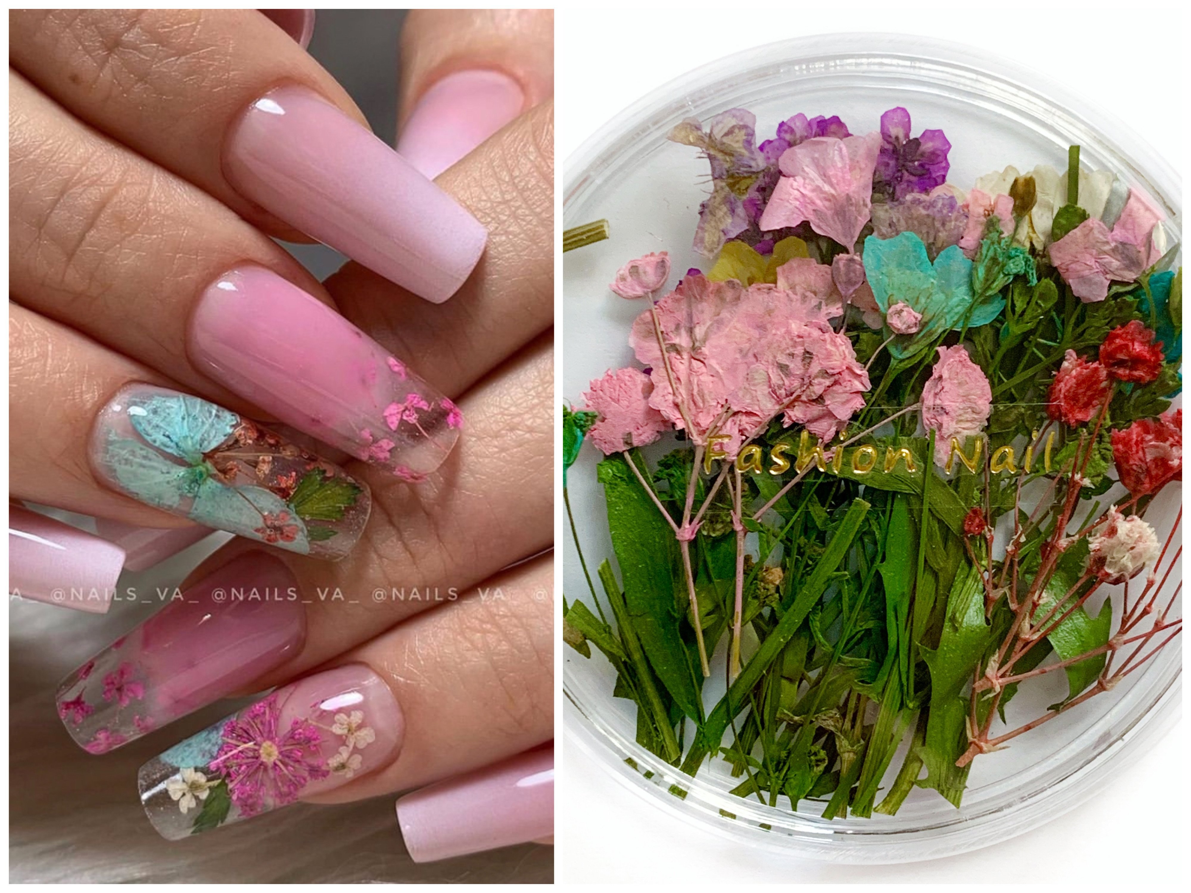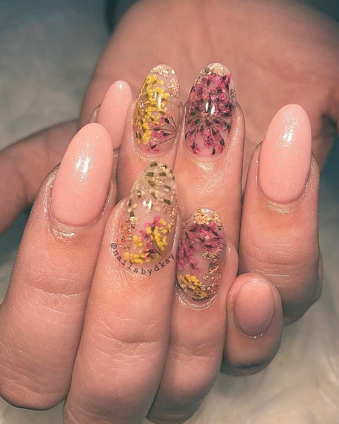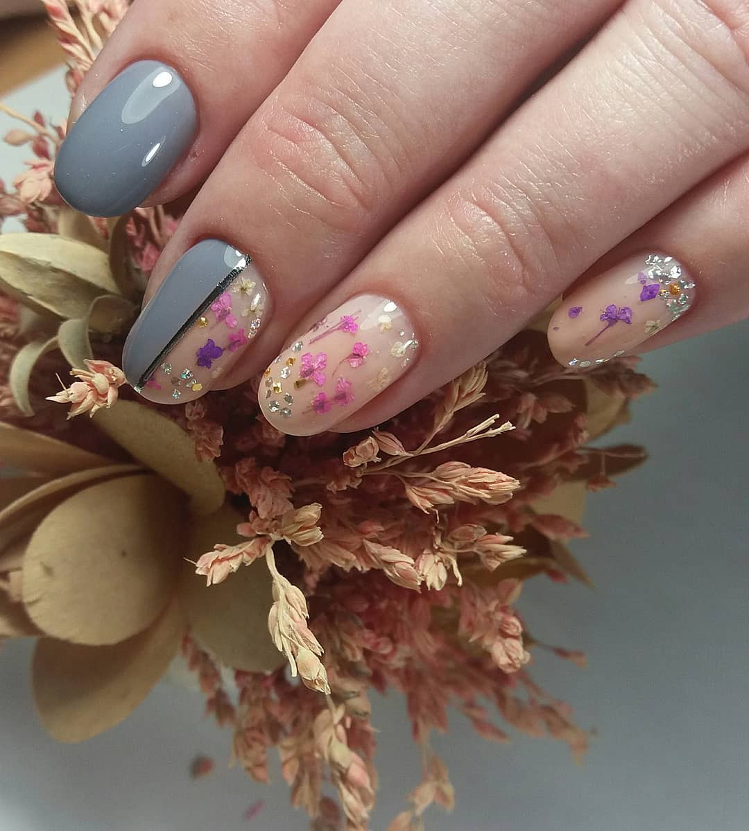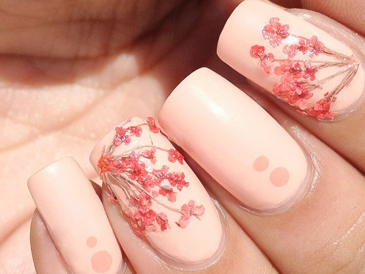 Маникюр с сухоцветами дизайн