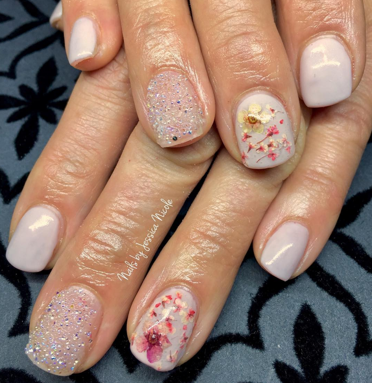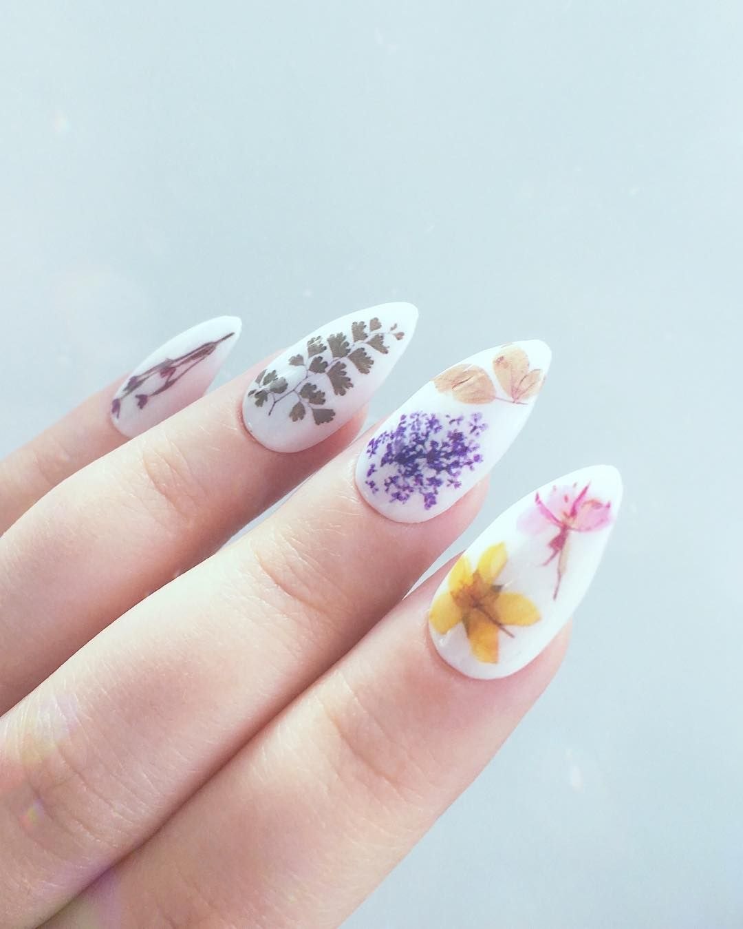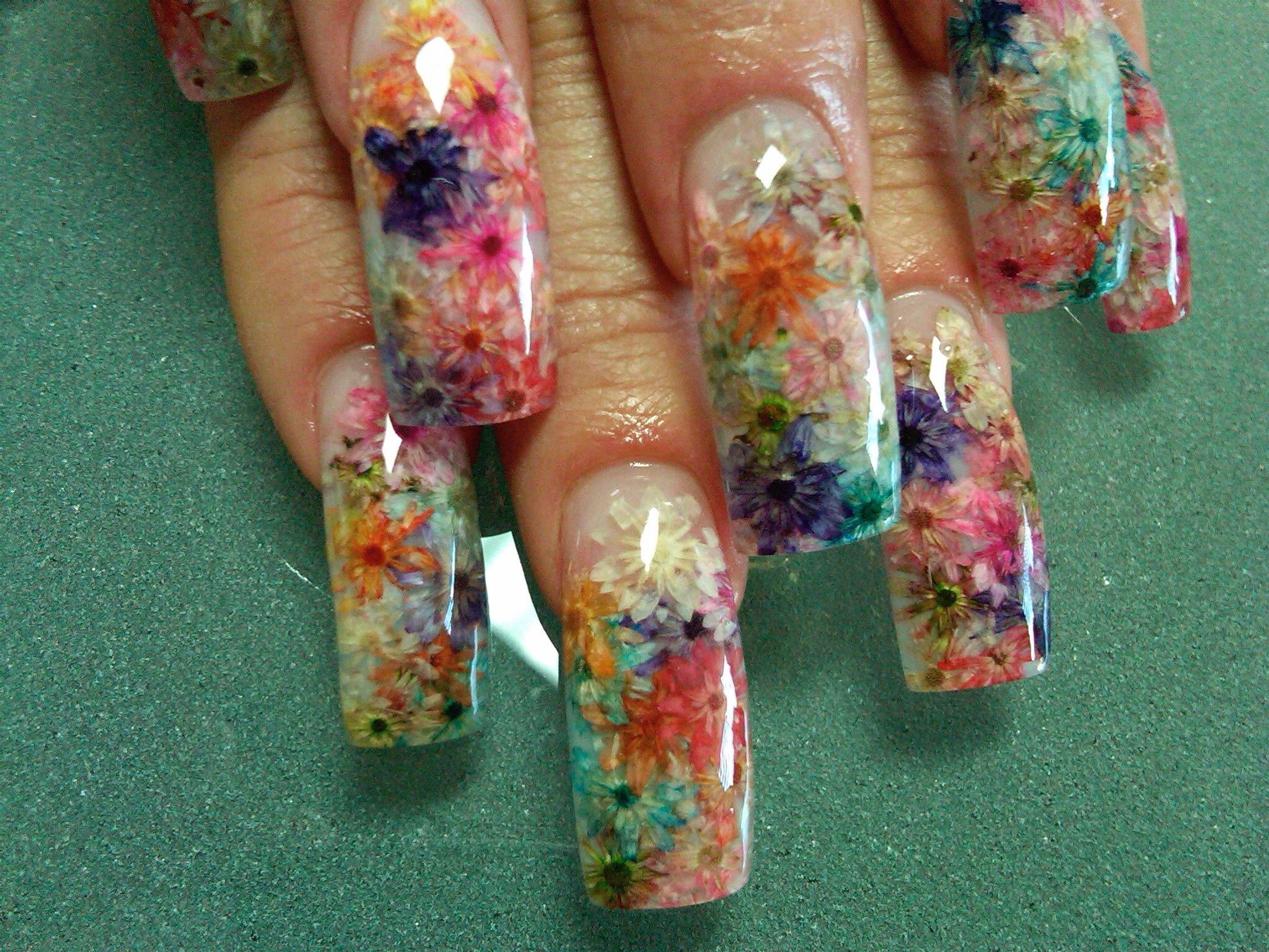 Маникюр с сухоцветами дизайн