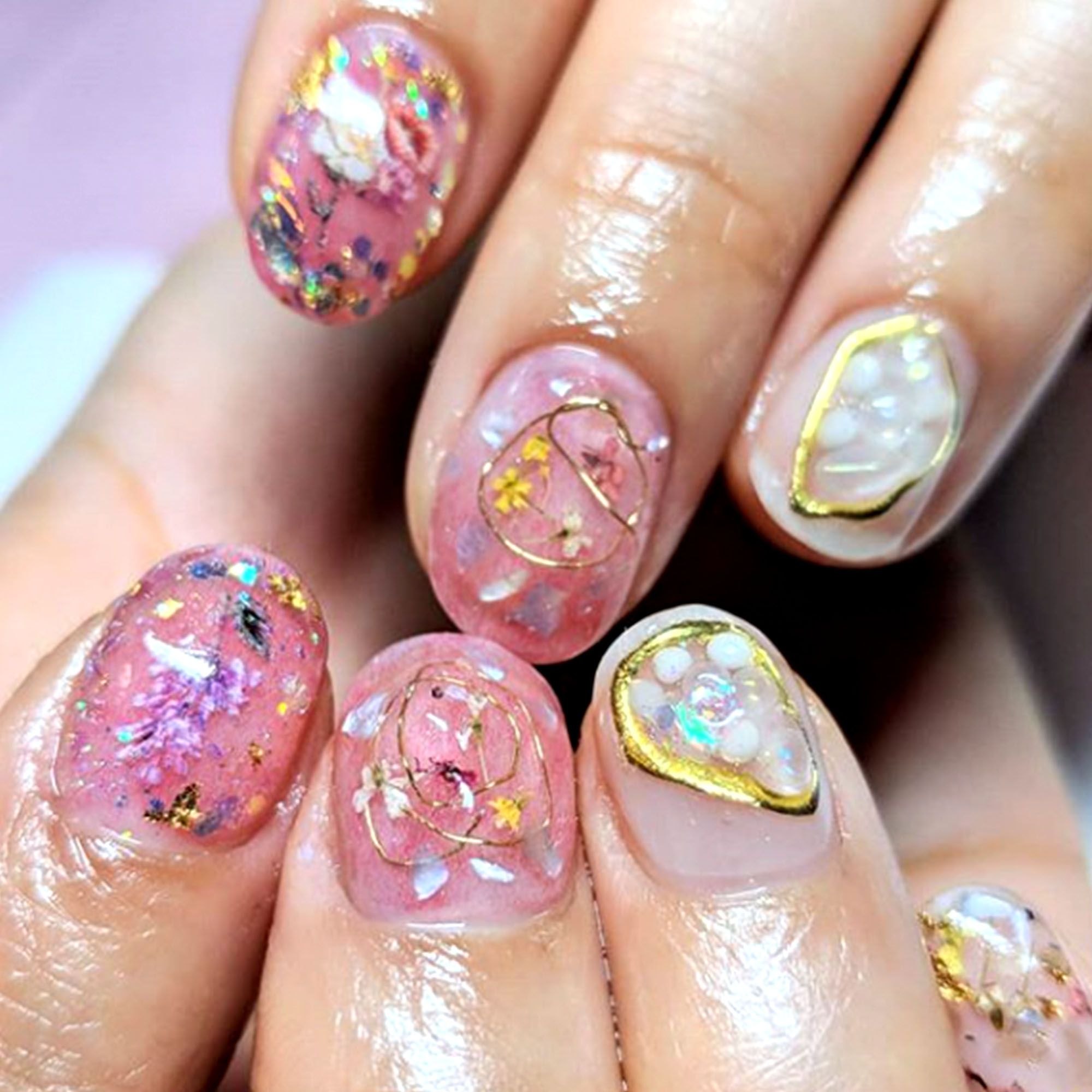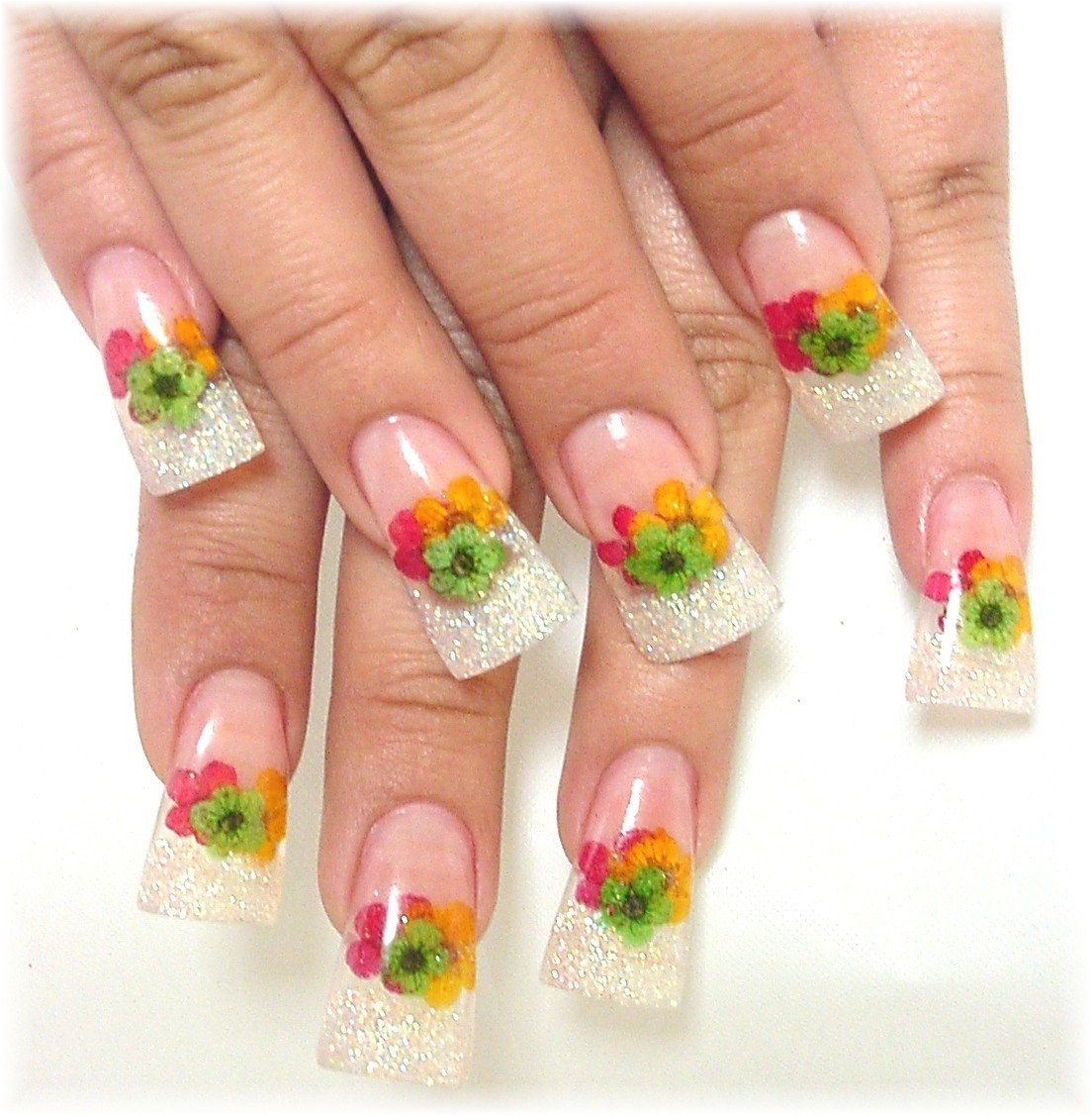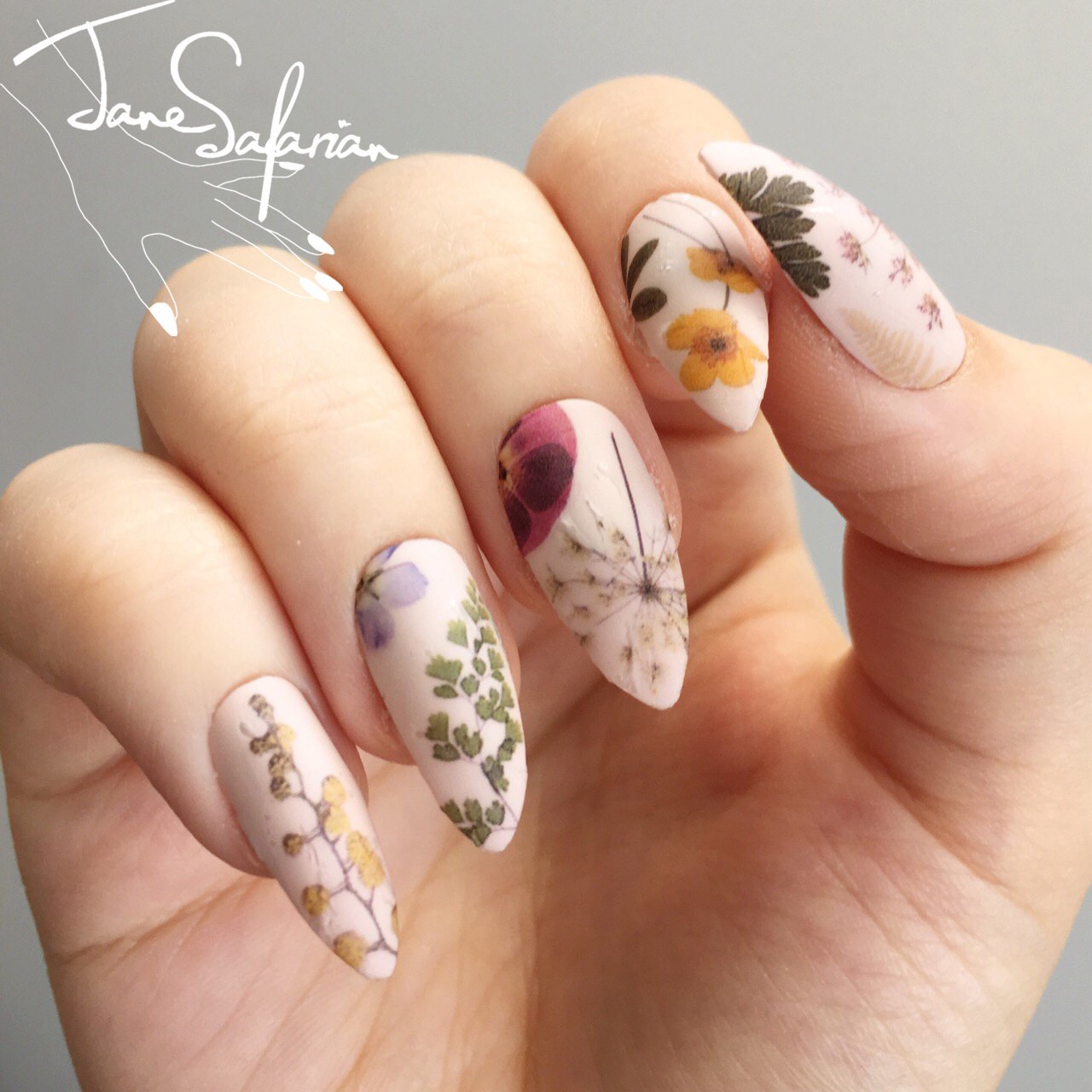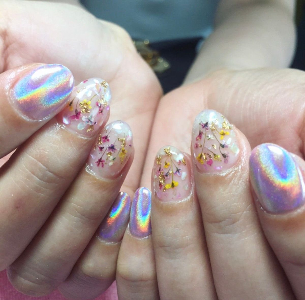 Маникюр с сухоцветами дизайн