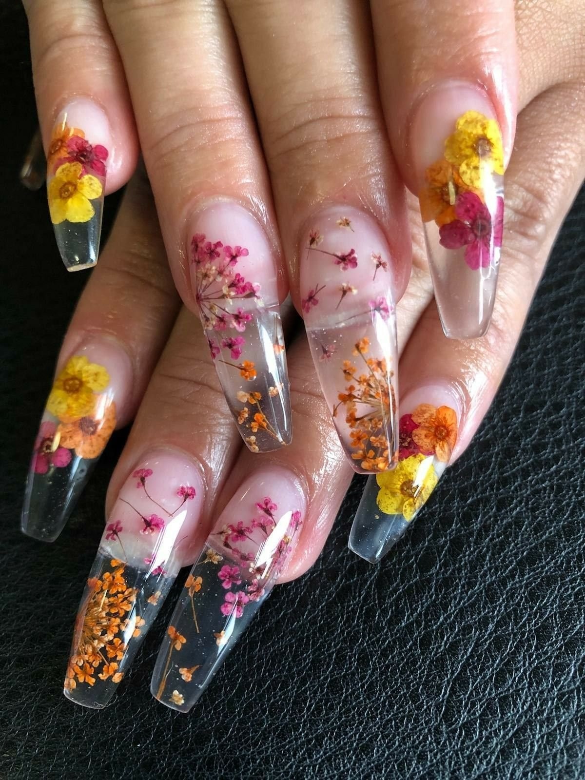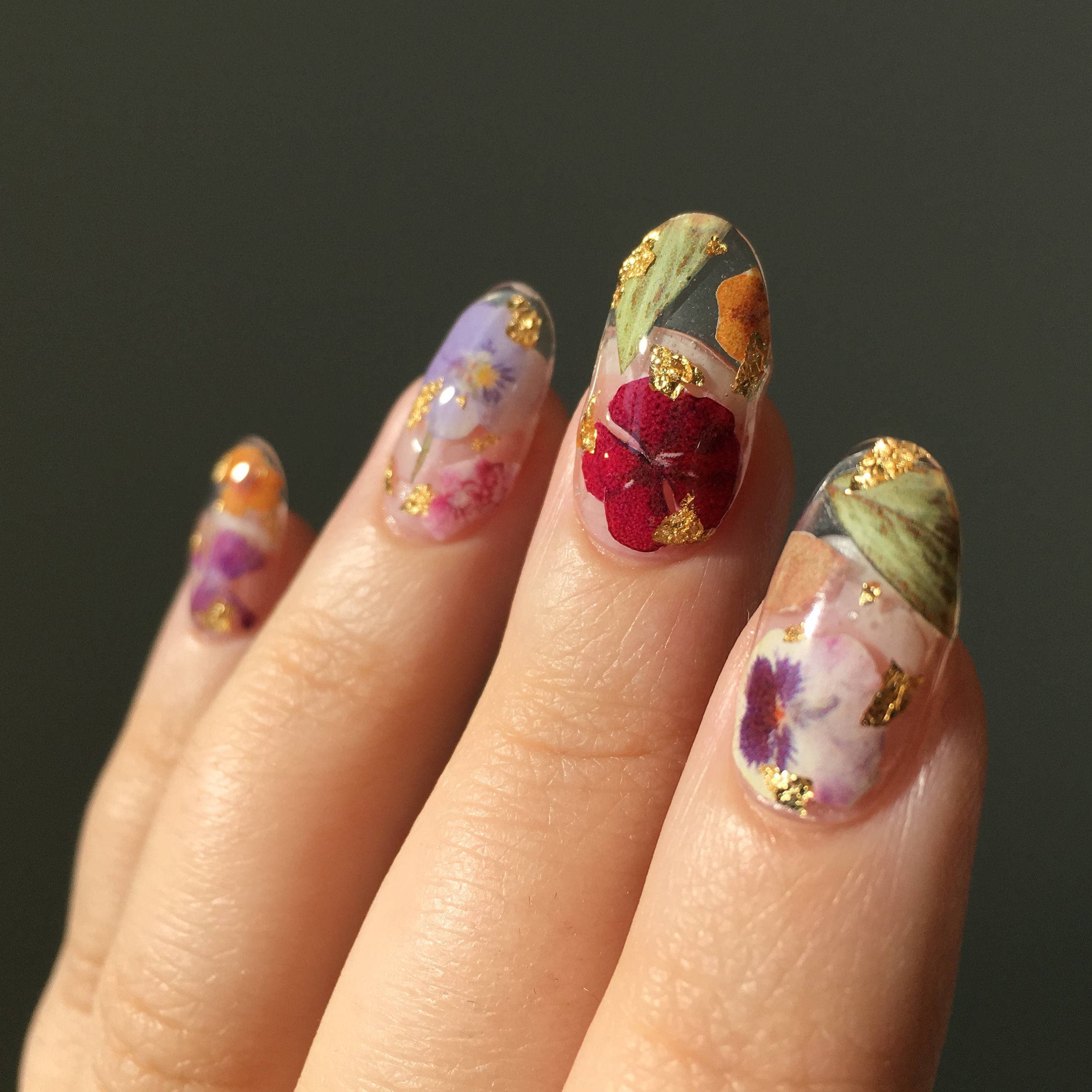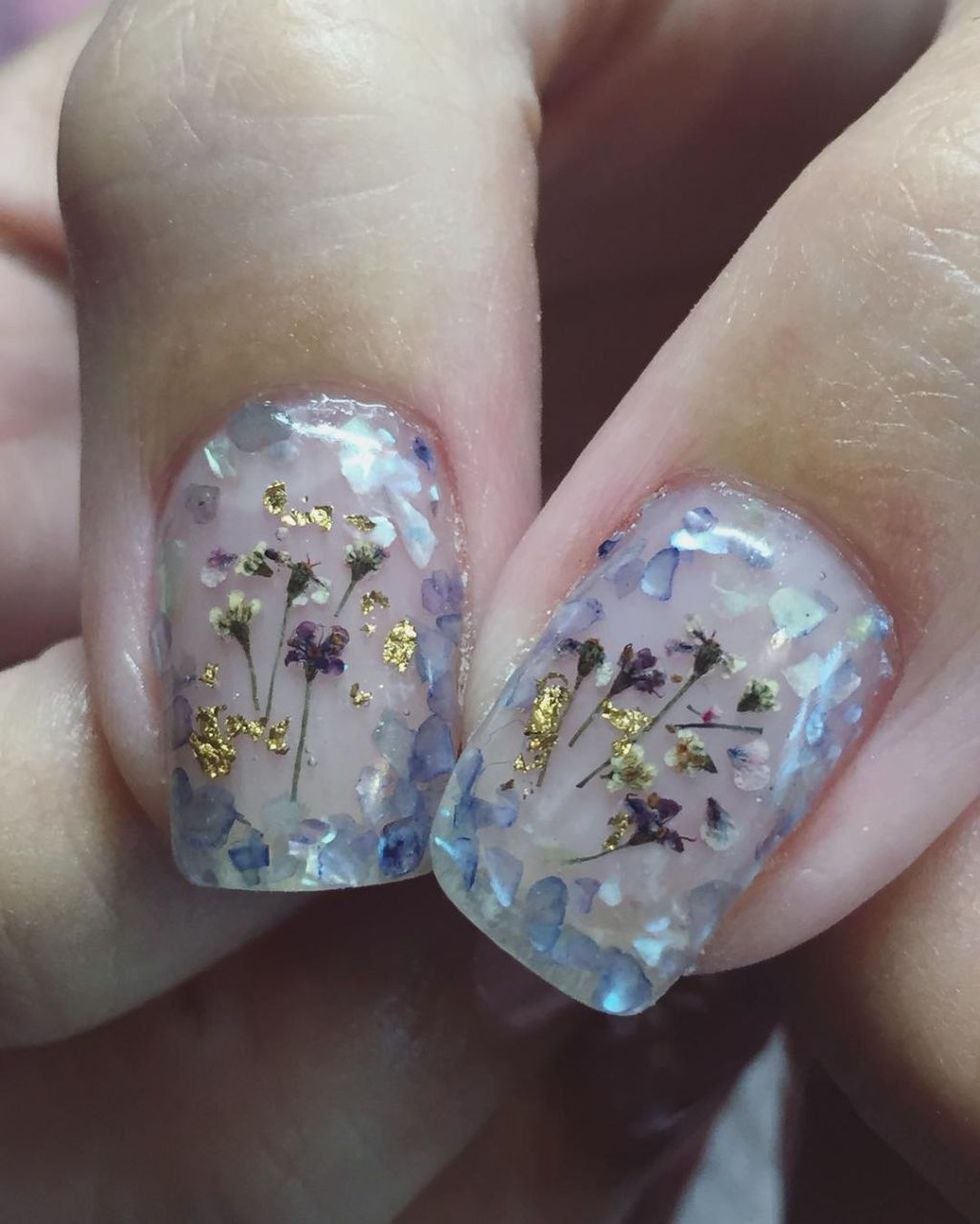 Прозрачные ногти с сухоцветами