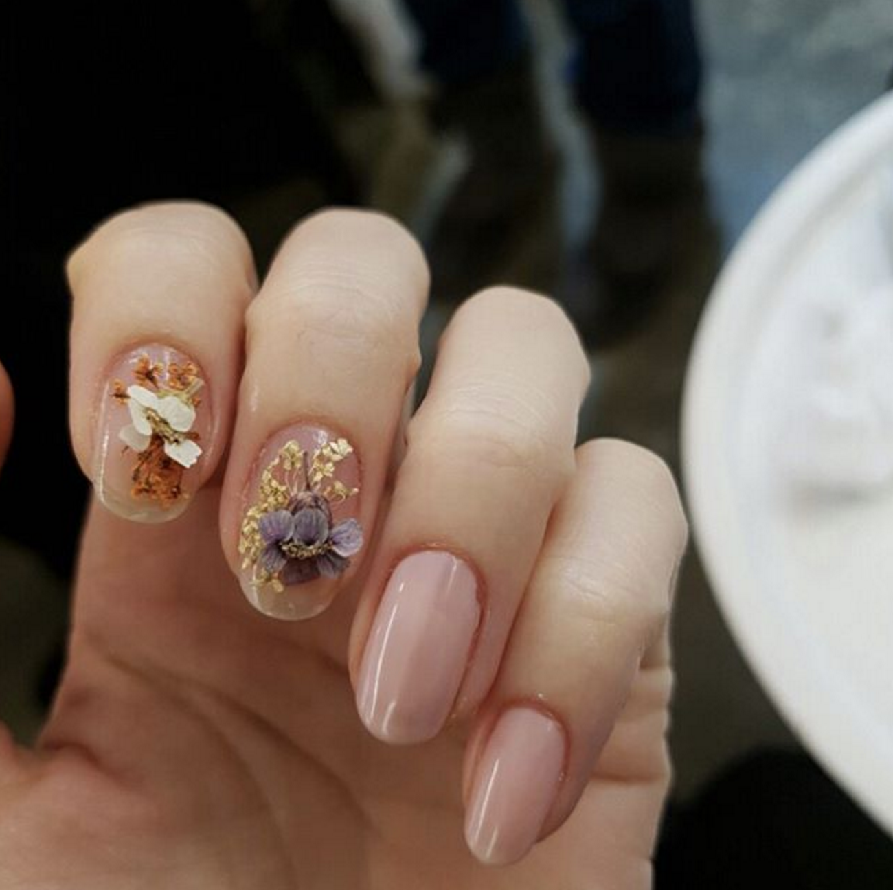 Маникюр с сухоцветами на короткие ногти (40 фото)